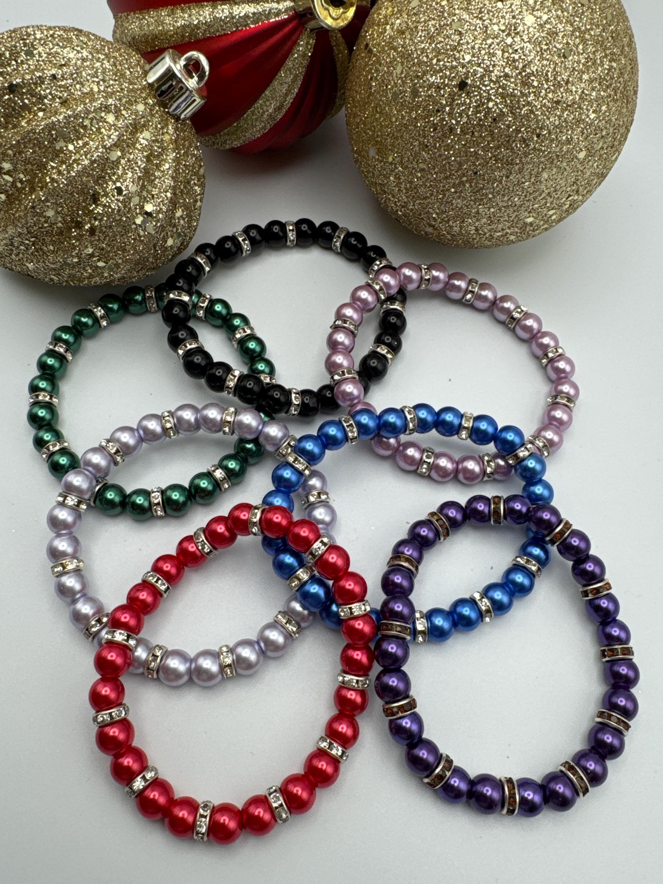 🩴These bracelets are all made with pearl beads and rhinestone spacers.
