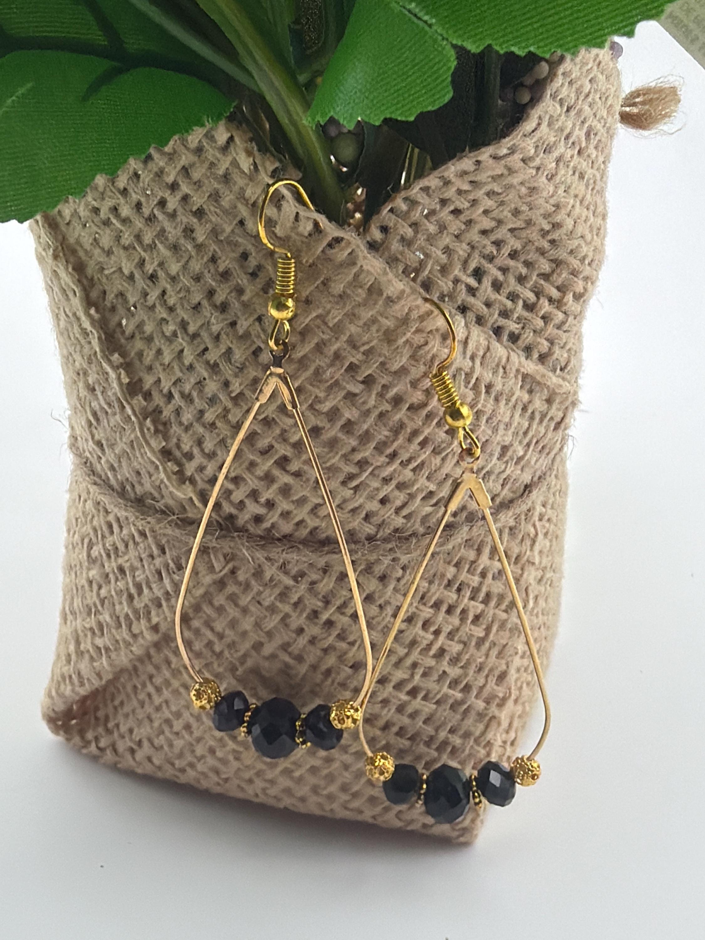 Black Faceted Bead Teardrop Hoop Earrings | Teardrop Earrings