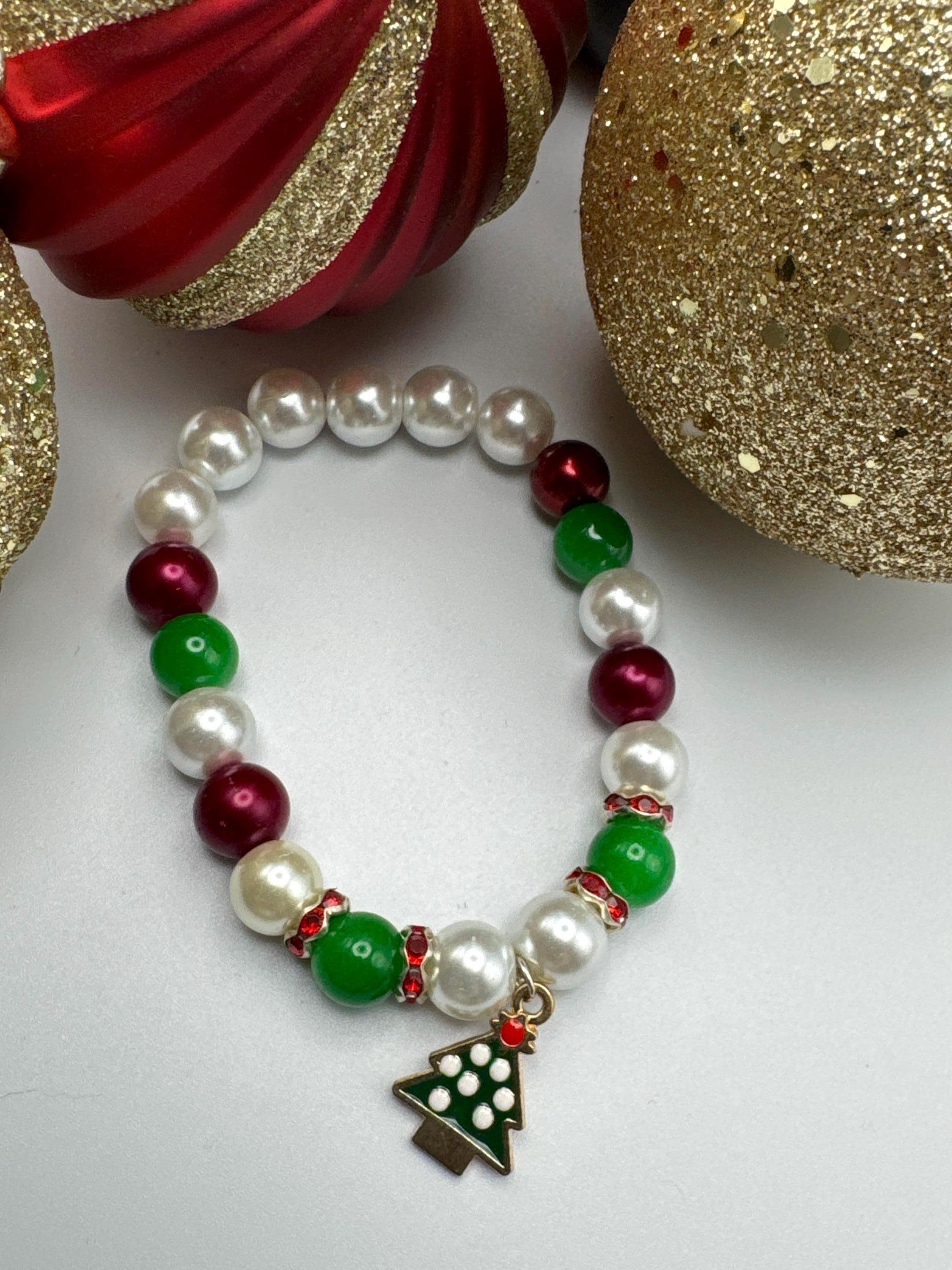 Christmas Tree Charm Bracelet | Christmas Bracelet | Stretch Bracelet