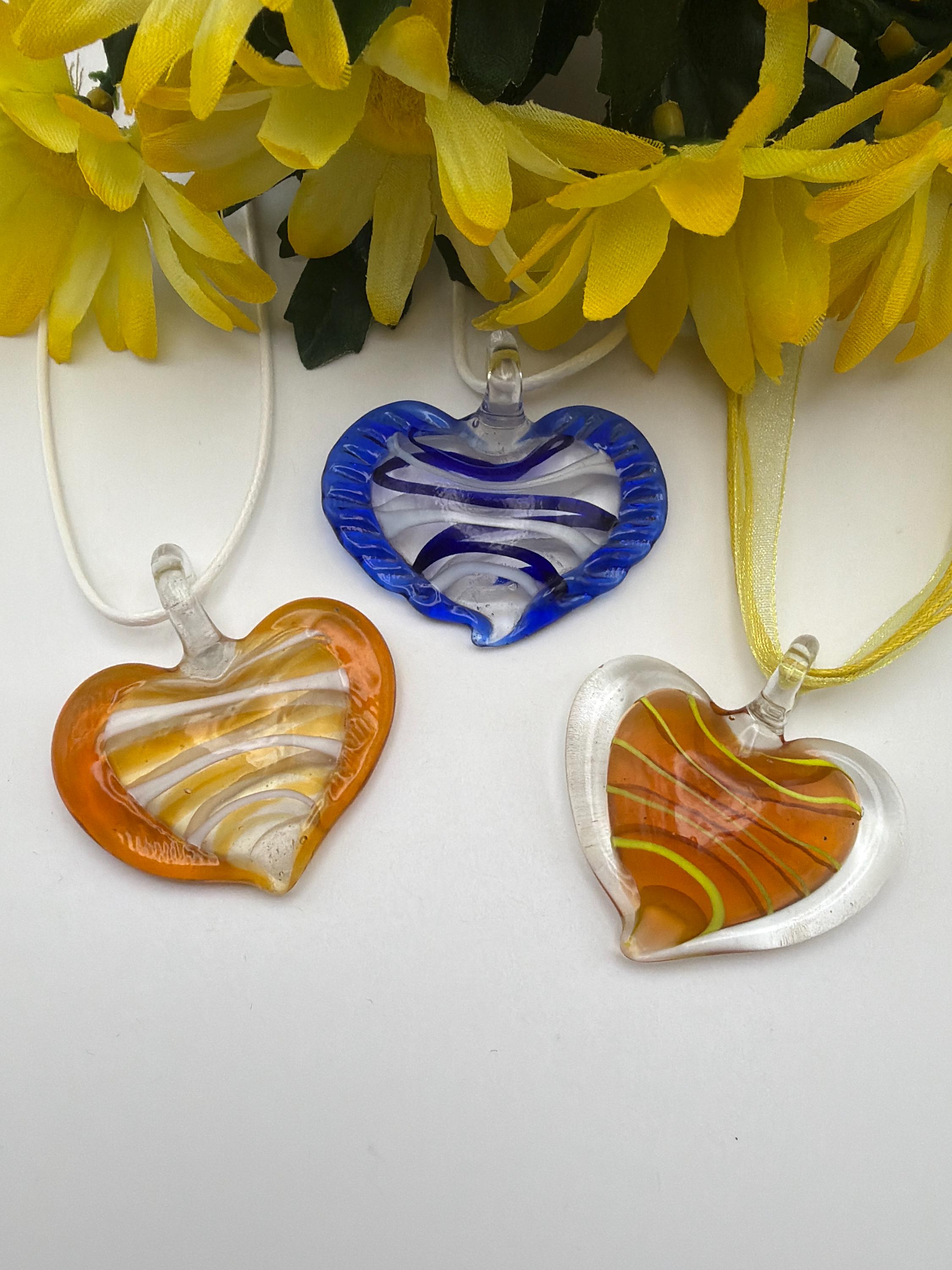 Heart Pendant Necklace | Striped Heart Pendant | Murano Inspired Glass Heart | Lampwork Heart Pendant Necklace