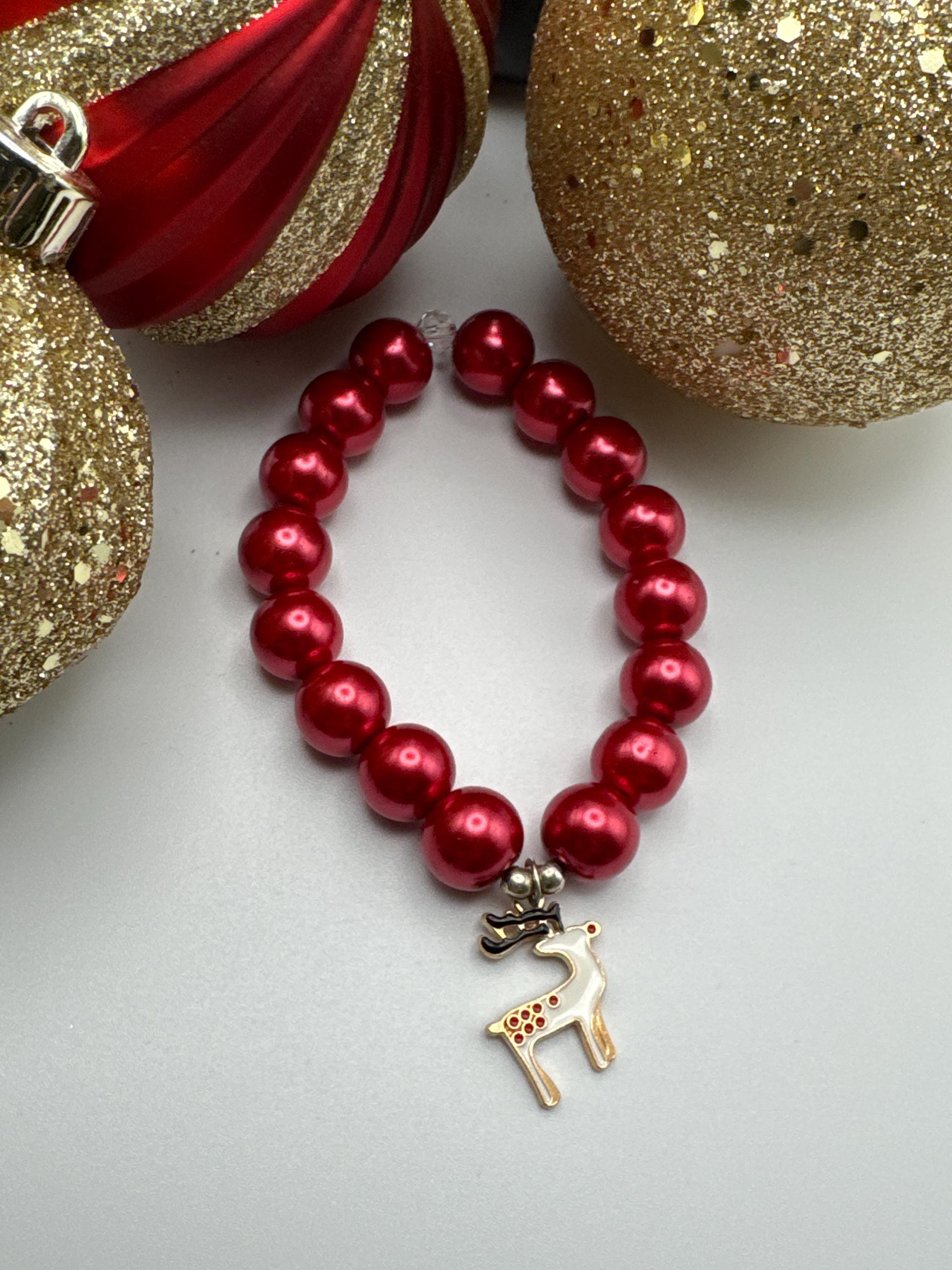 Reindeer Charm Bracelet | Red Pearl Bracelet | Christmas Bracelet