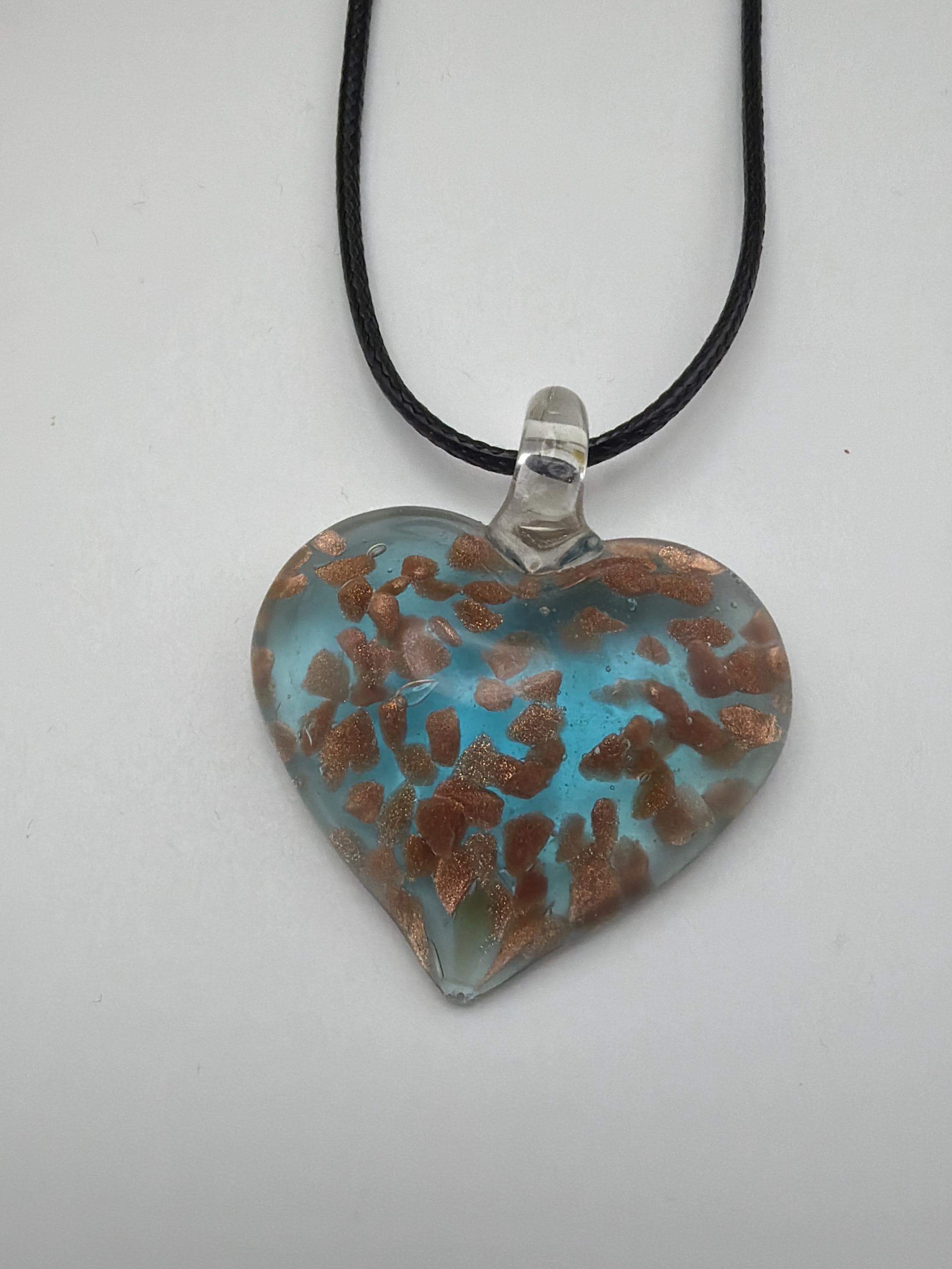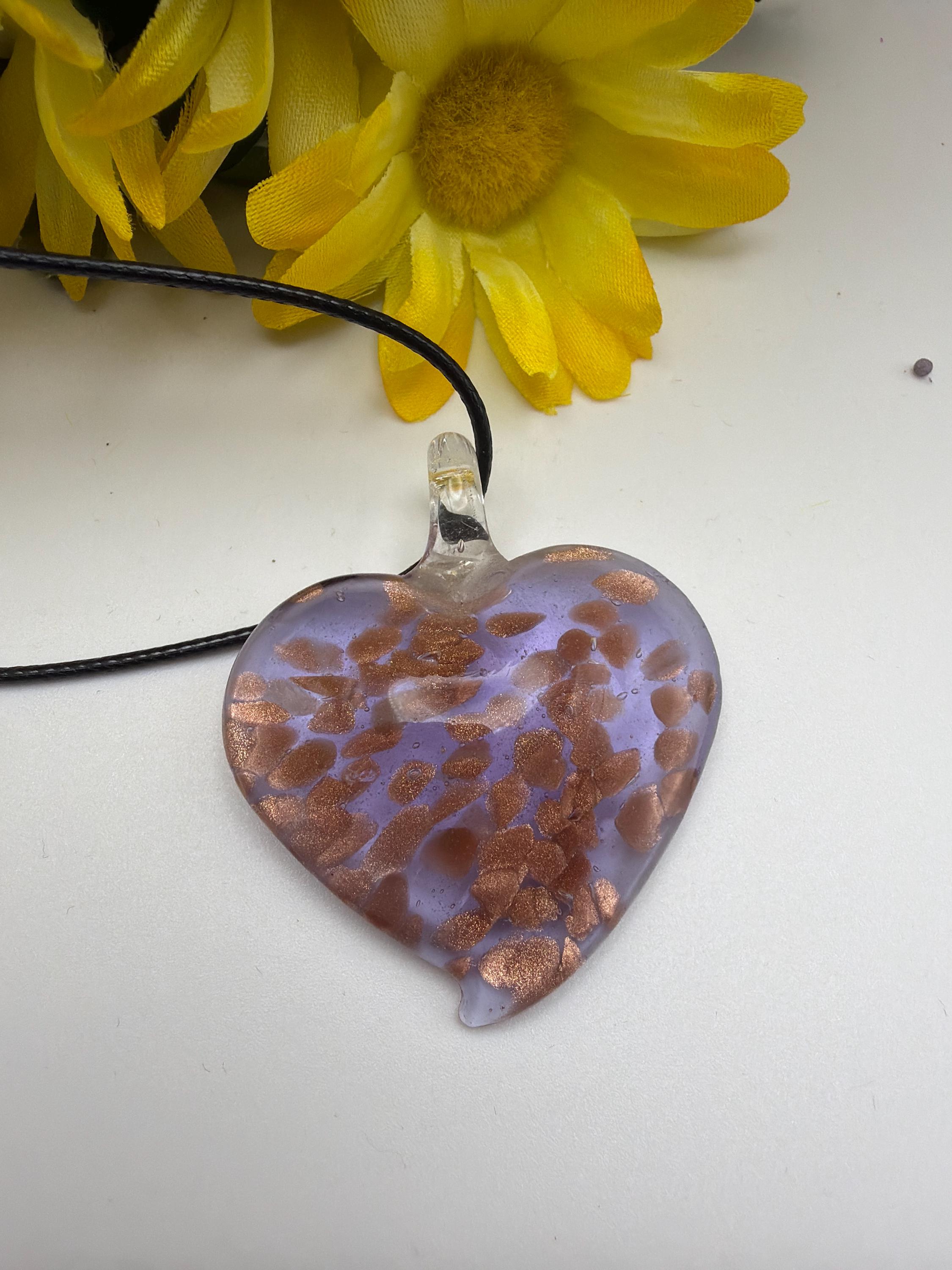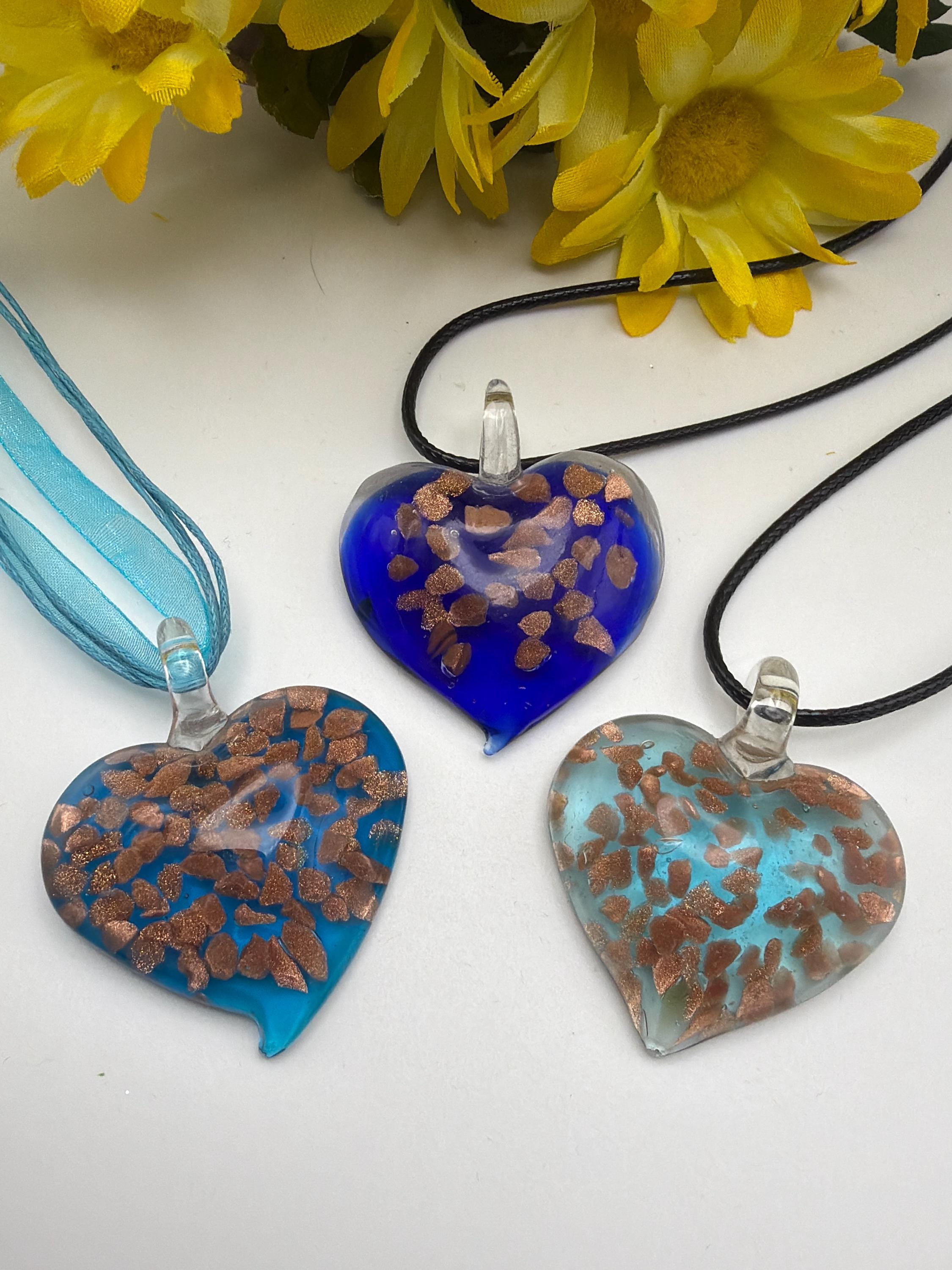 Heart Pendant Necklace| Lampwork Glass Heart | Gold Fleck Pendant Necklace