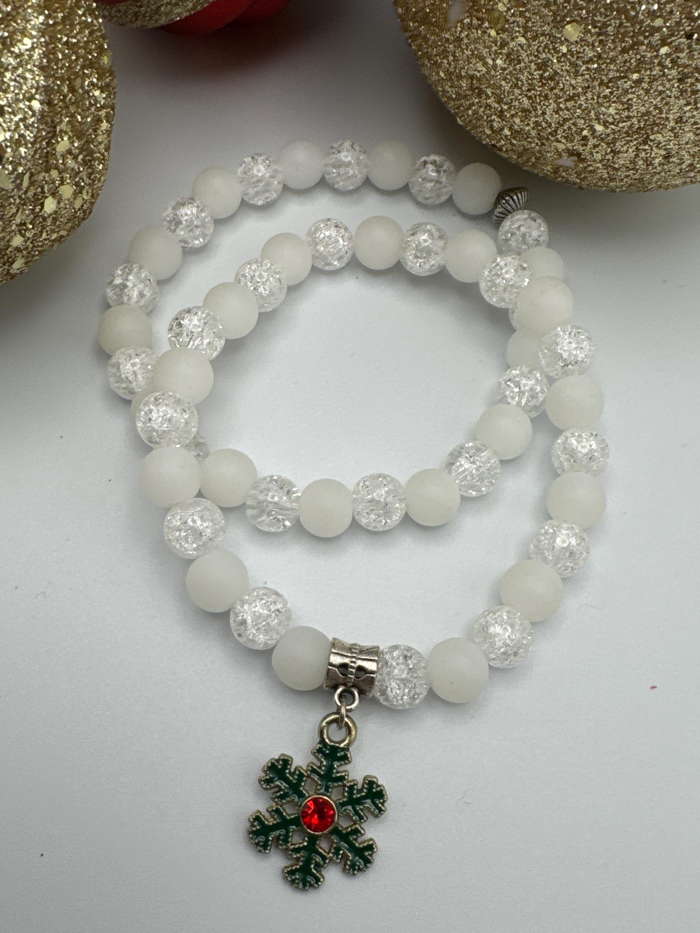 Snowflake Charm Bracelet | Double Strand Christmas Bracelet | Stretch Bracelets | Holiday Bracelet