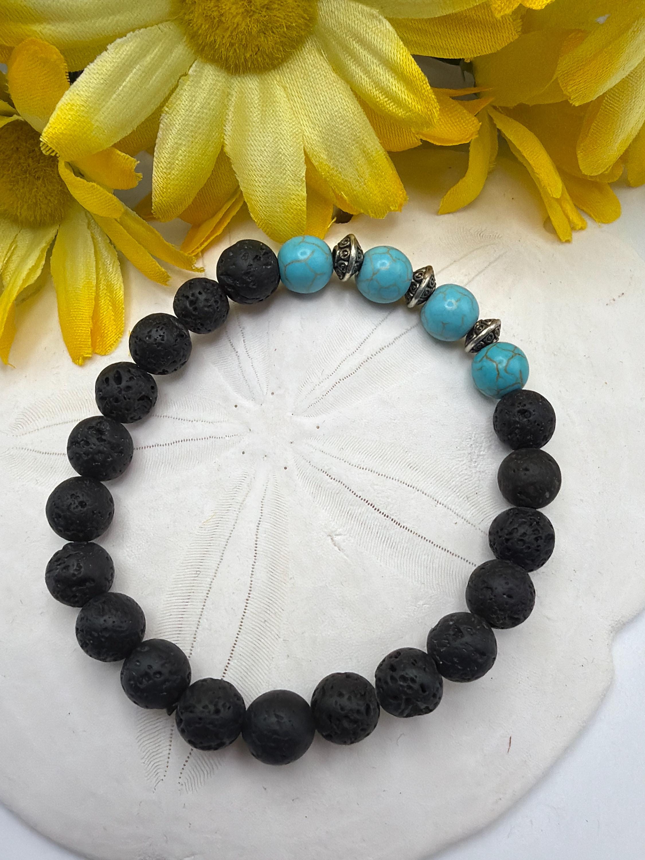 Blue Howlite Stretch Bracelet | Lava Bead Stretch Bracelet