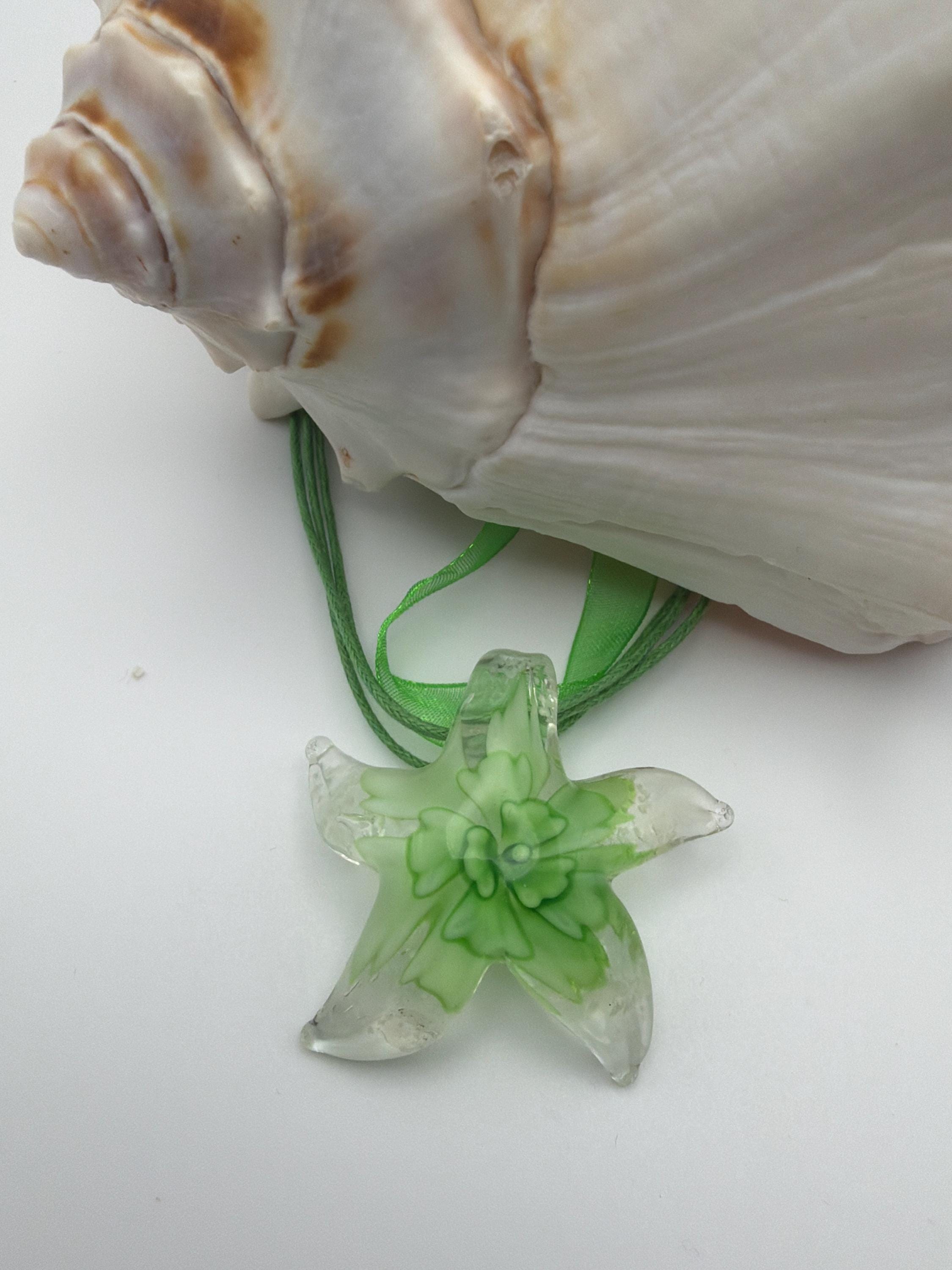 Green Flower Starfish | Luminous Glass Starfish | Starfish Pendant Necklace | Starfish Jewelry