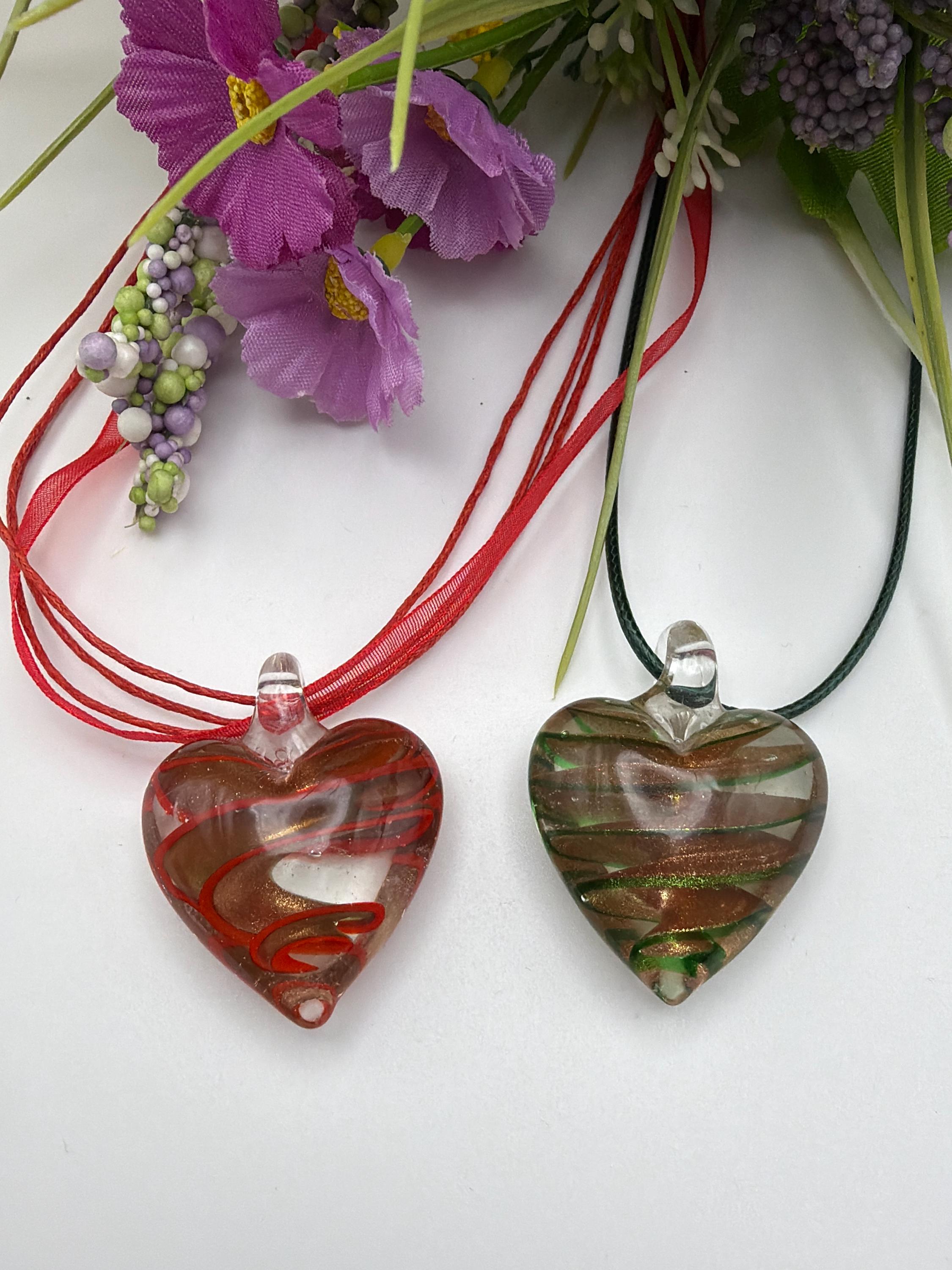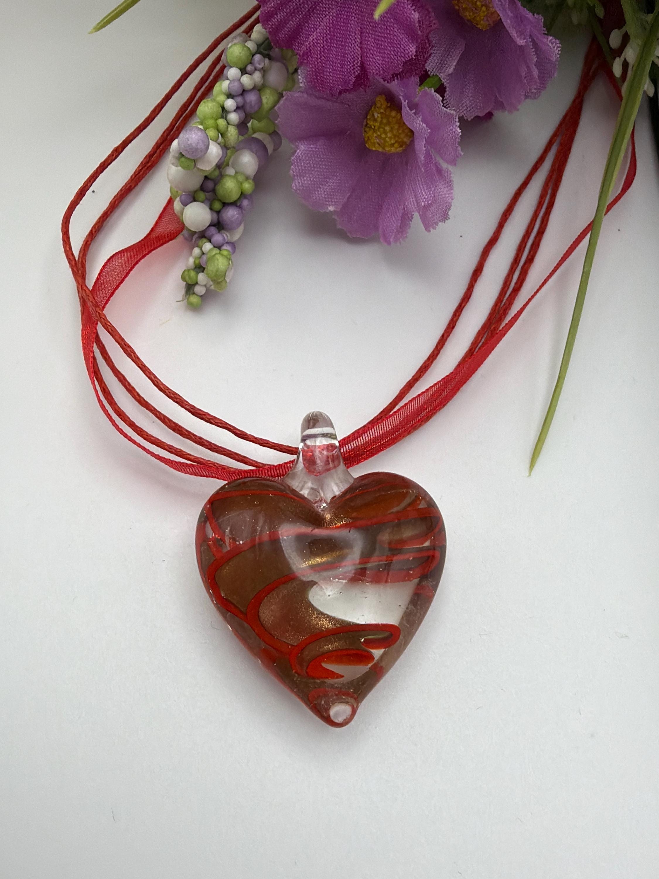 Swirl Heart Pendant Necklace | Lampwork Glass Swirl Heart Pendant Necklace