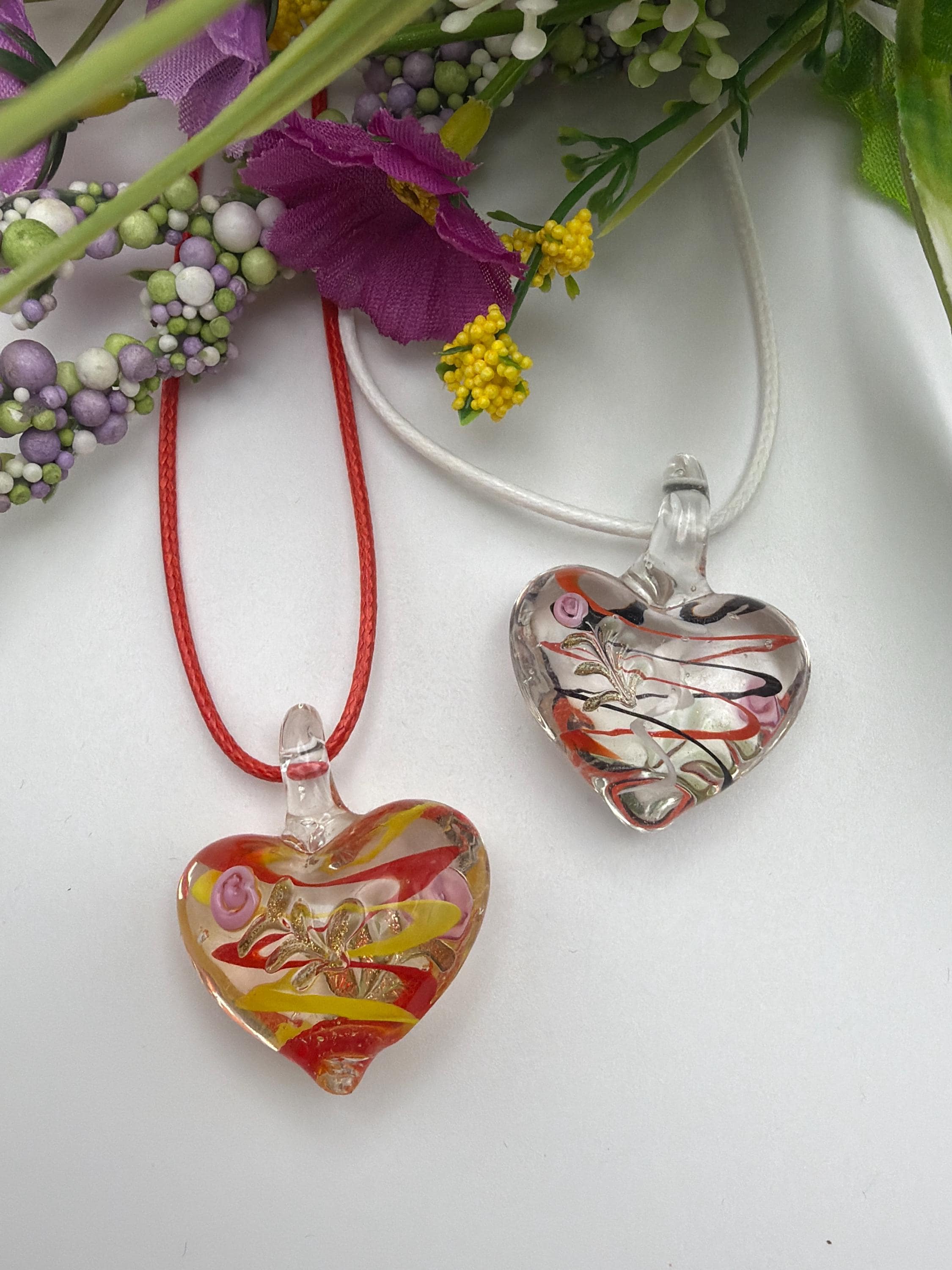 Swirl Heart Pendant | Murano Inspired Glass Heart | Glass Heart Pendant Necklace