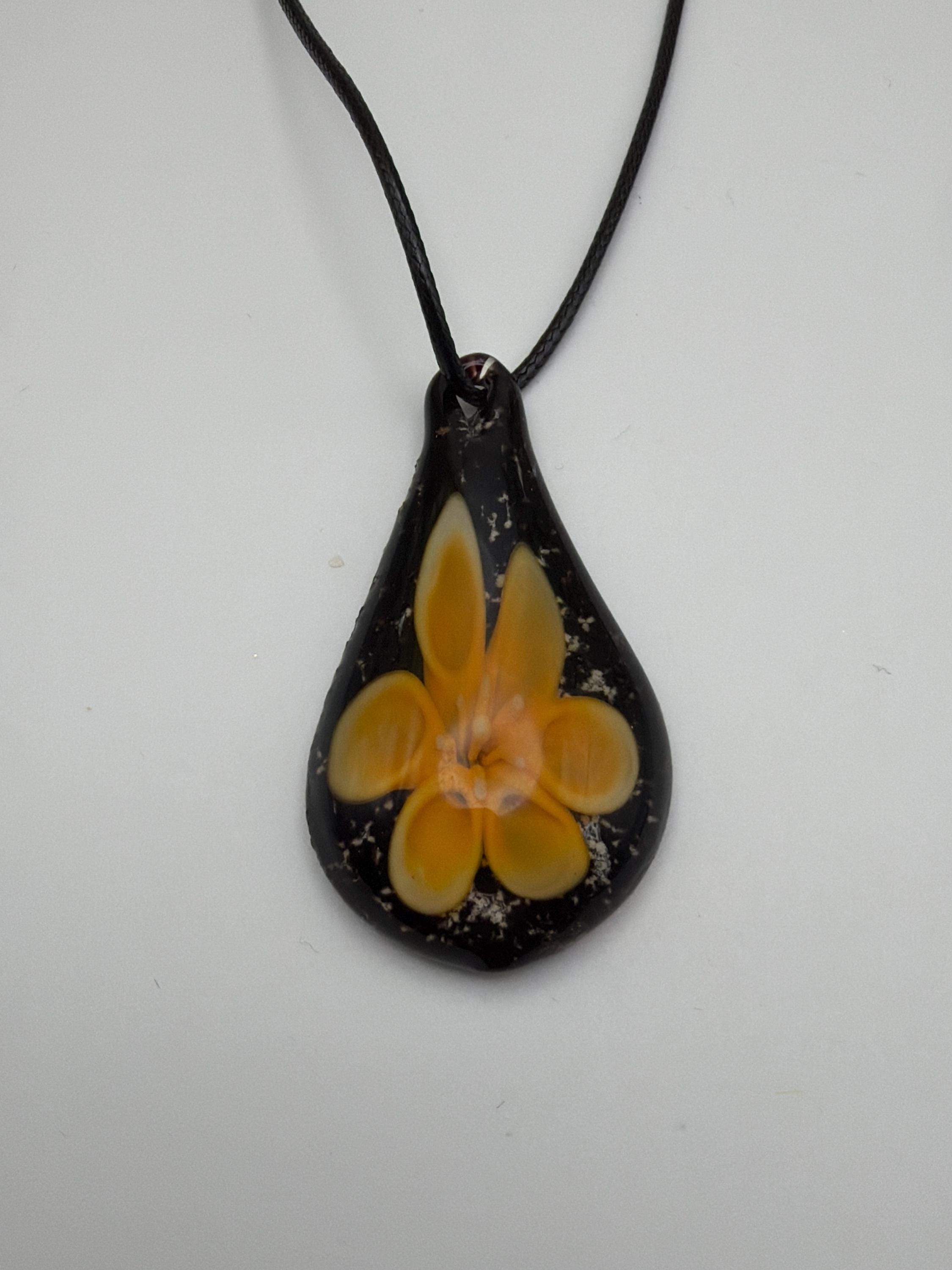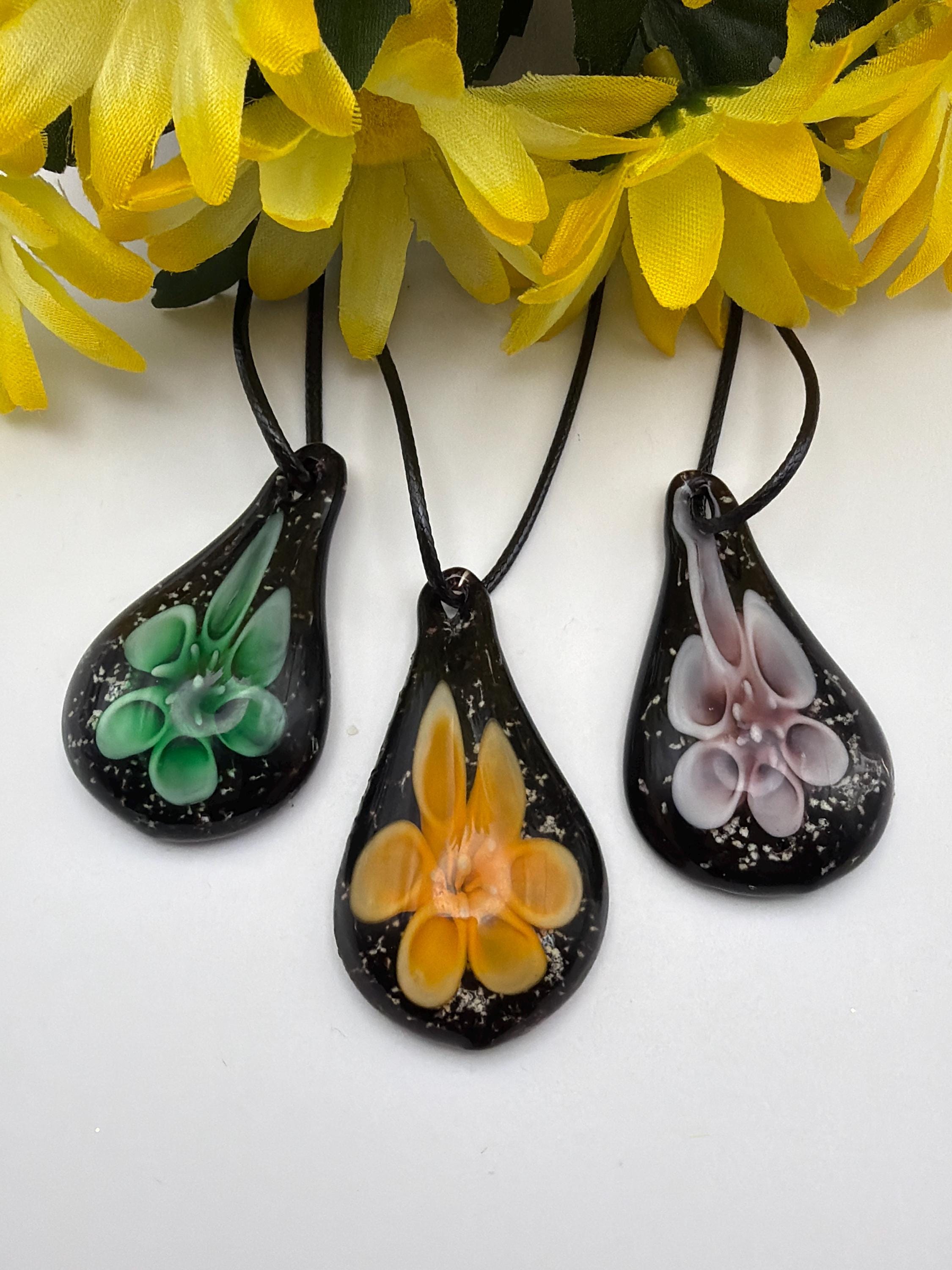 Luminous Flower Pendant Necklace | Flower Drop Pendant Necklace | Lampwork Glass Flower Pendant