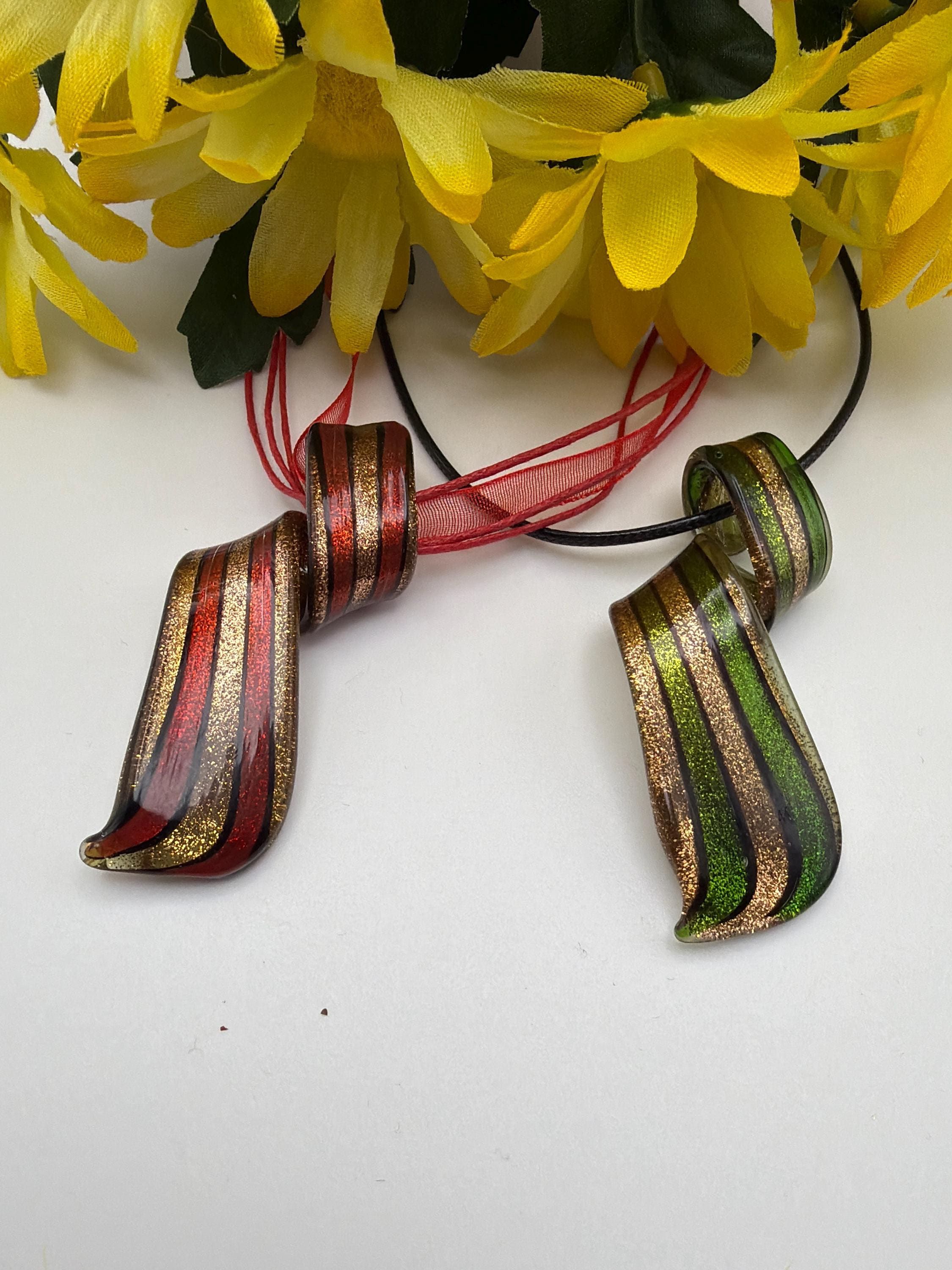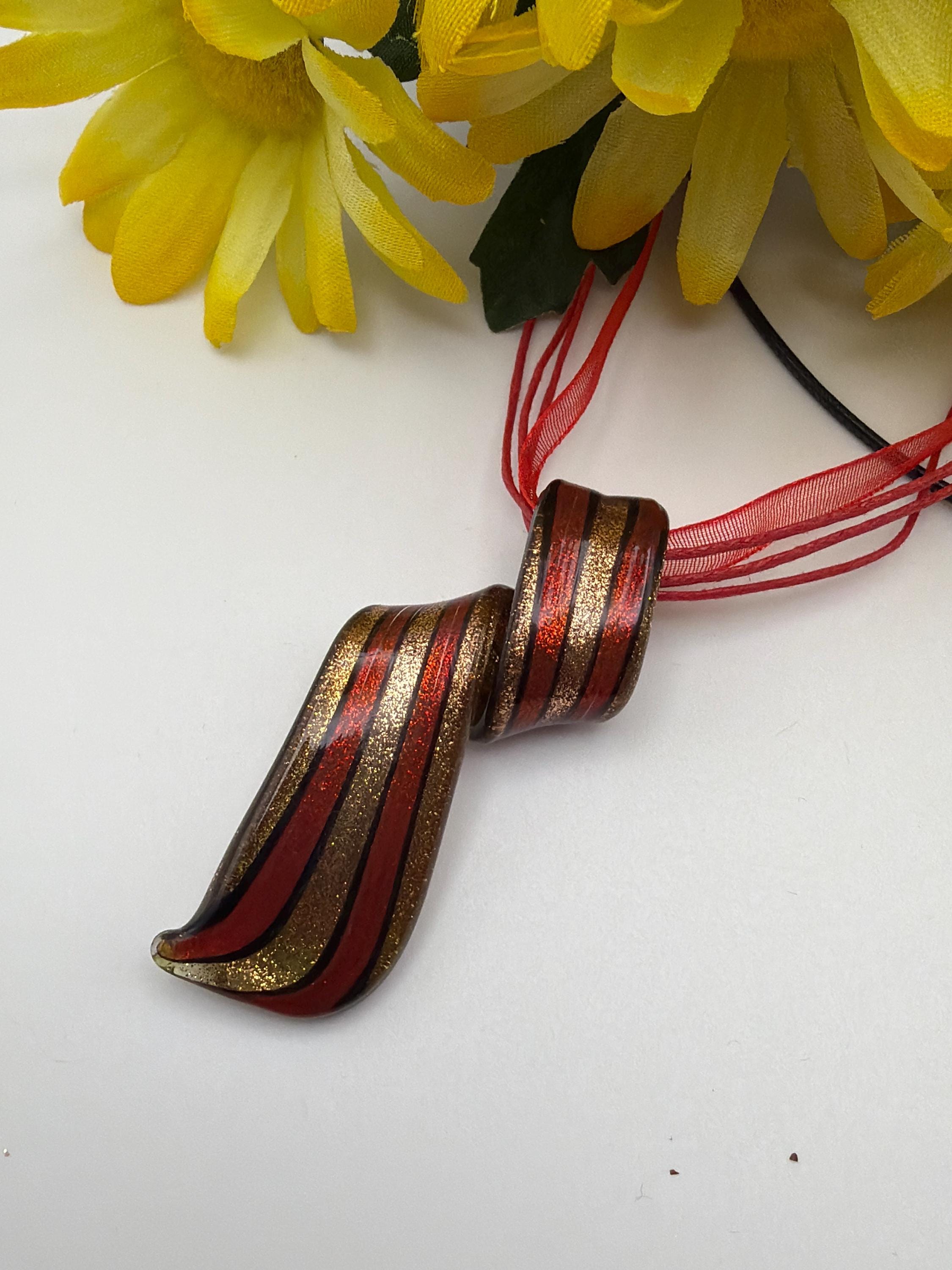 Striped Spiral Pendant Necklace | Murano Inspired Glass Spiral | Striped Pendant Necklace | Lampwork Glass Spiral Pendant