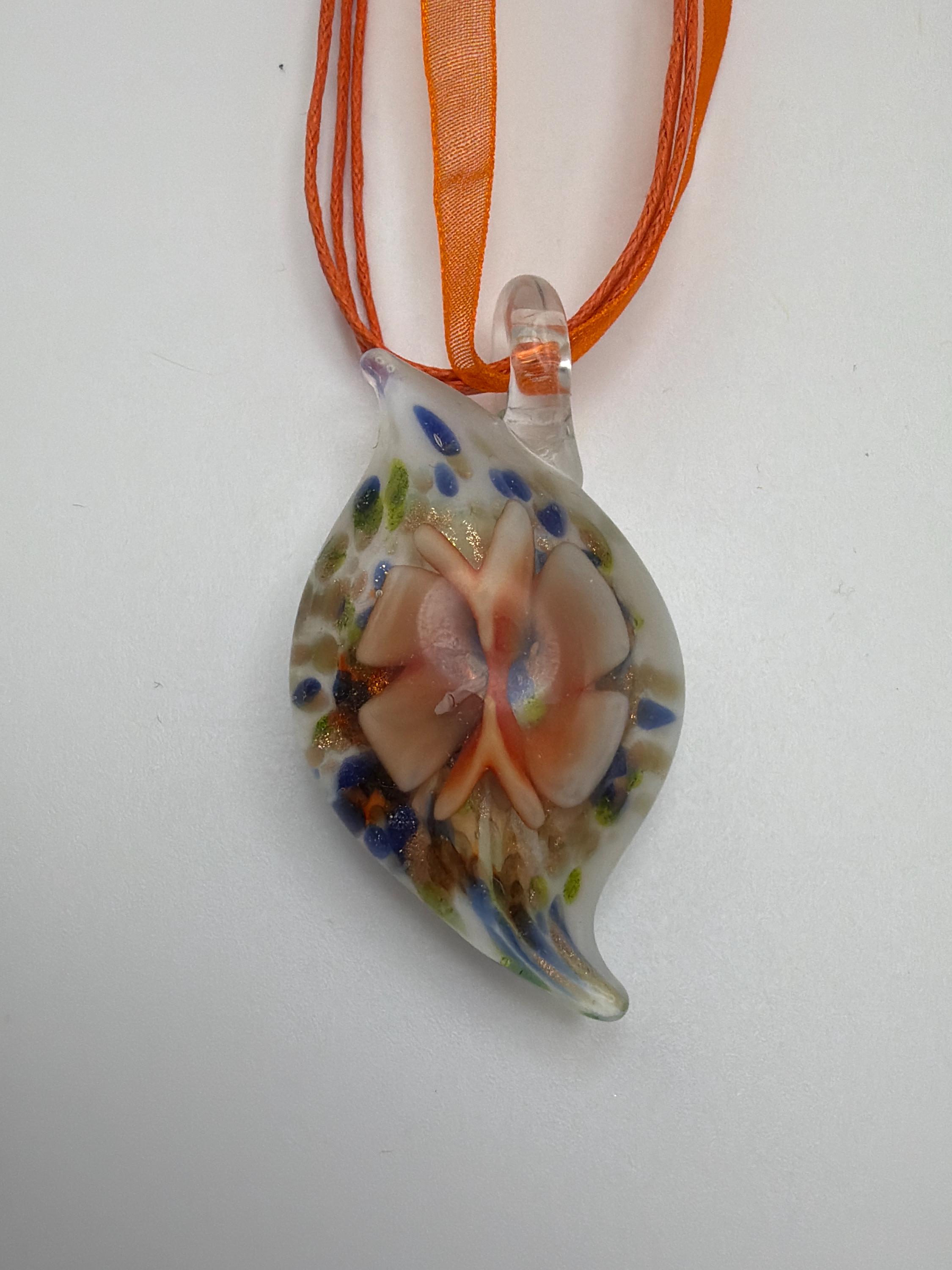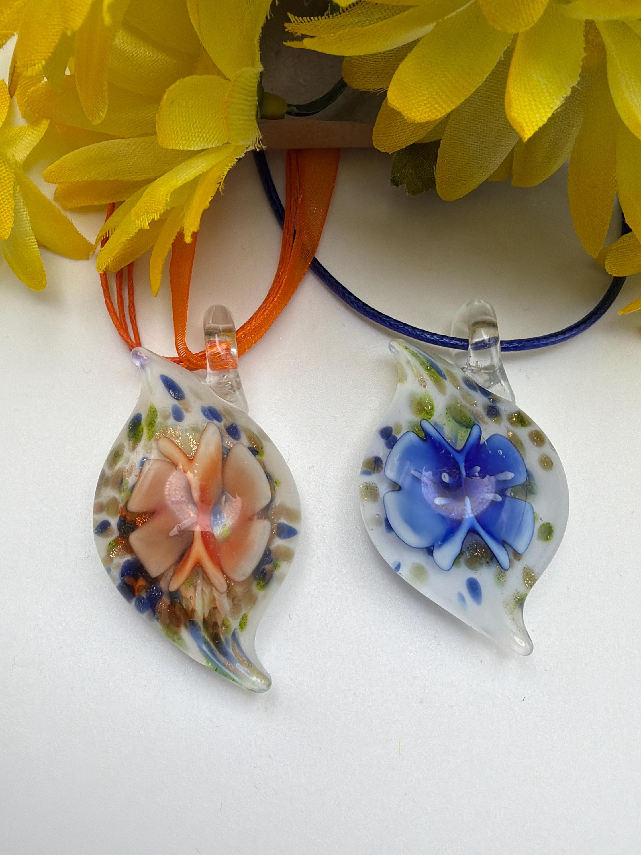 Murano Inspired Glass Flower Pendant Necklace | Flower Pendant Necklace | Lampwork Glass Flower Pendant