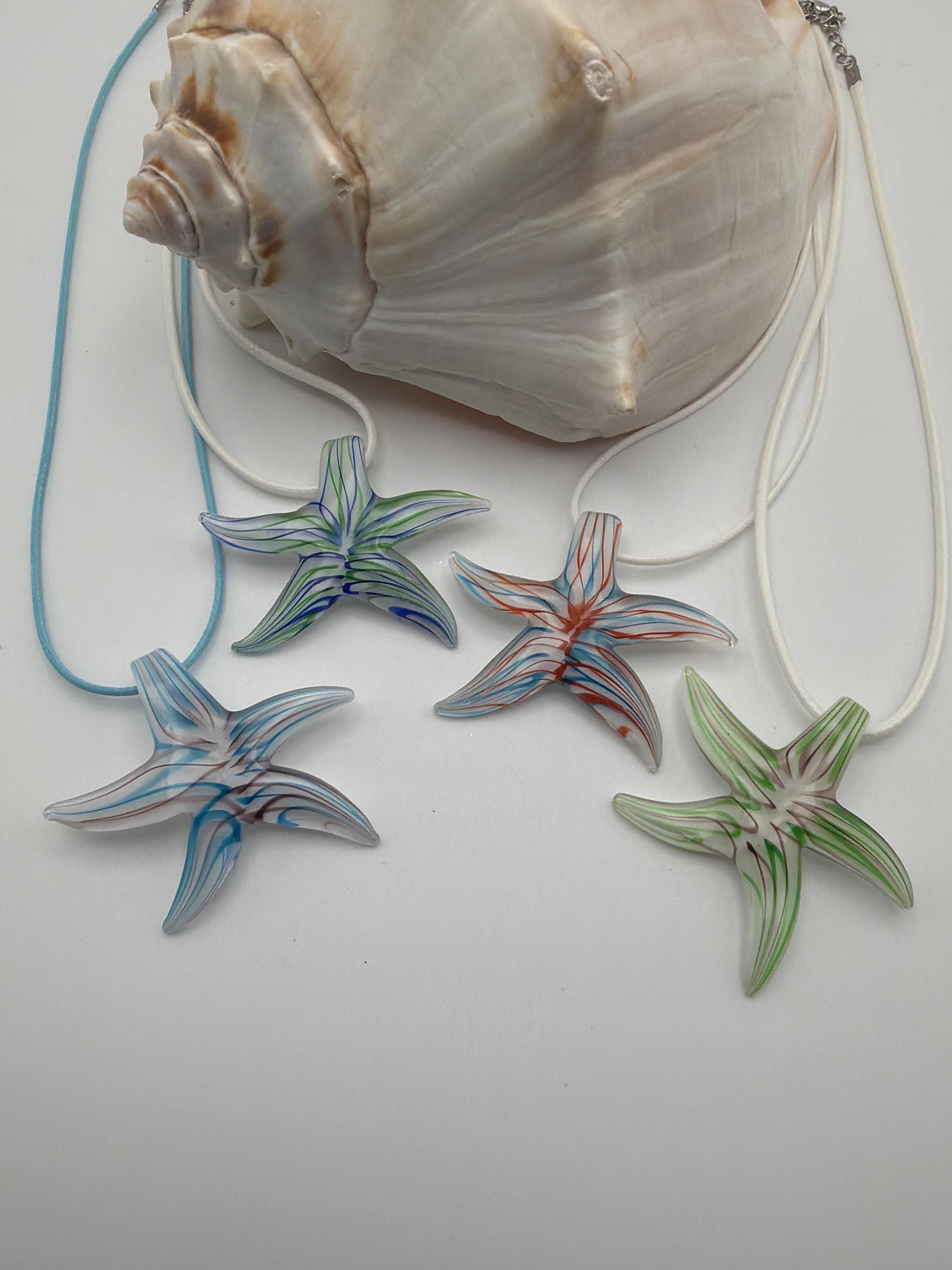 Starfish Pendant Necklace | Colorful Lampwork Glass Starfish | Starfish Necklace