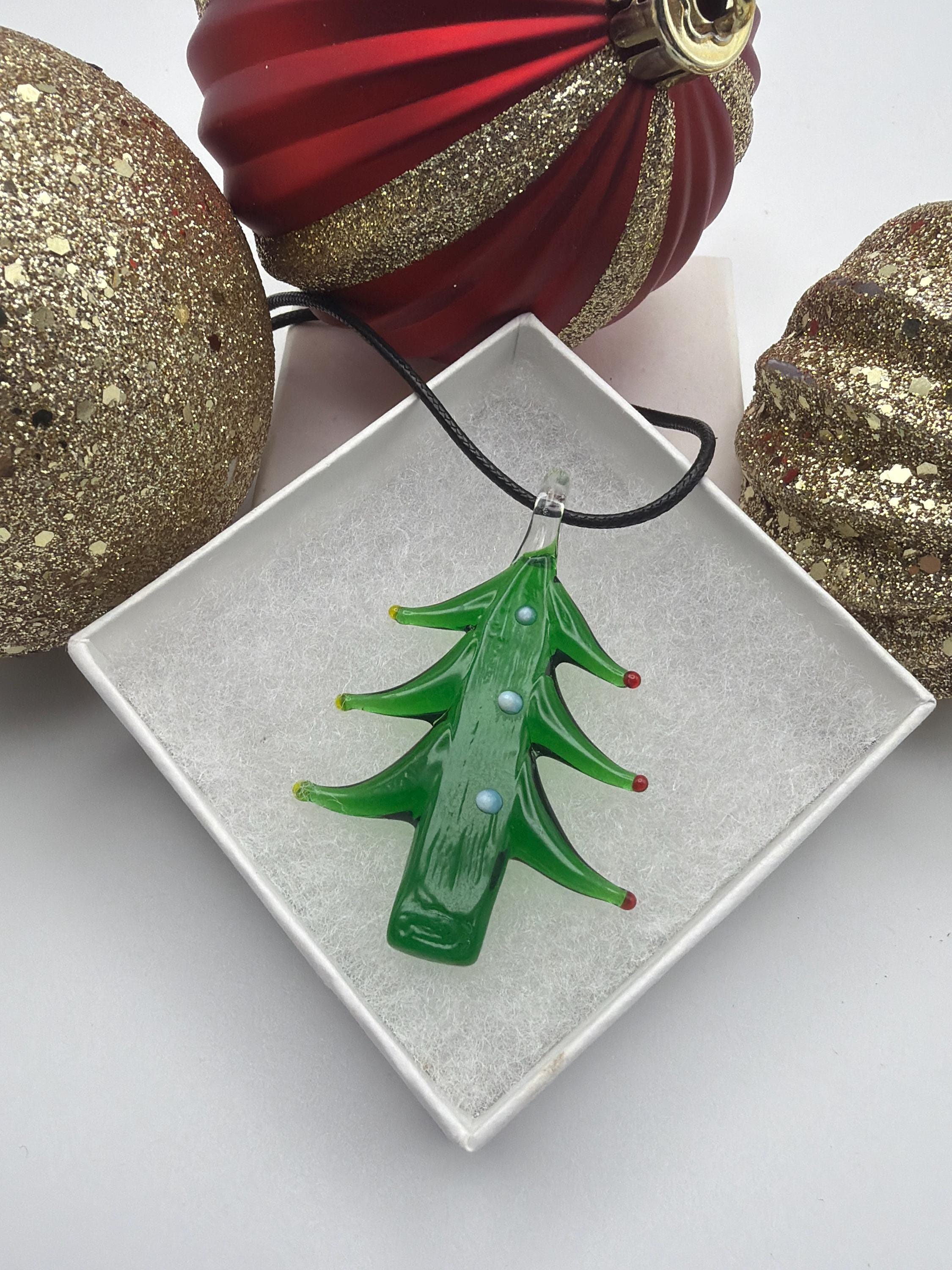 Green Christmas Tree Pendant | Lampwork Glass Christmas Tree Pendant