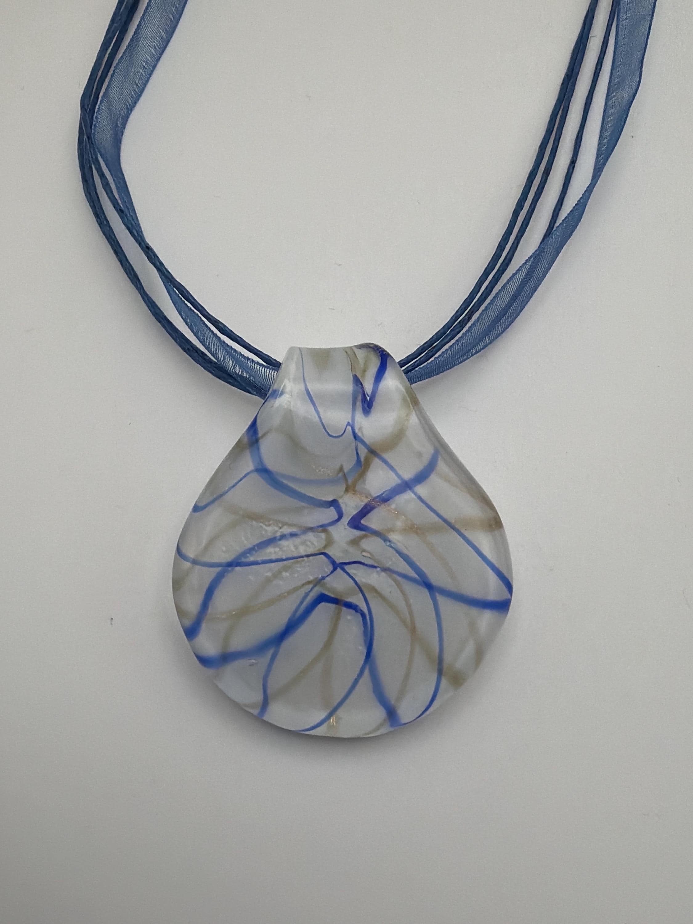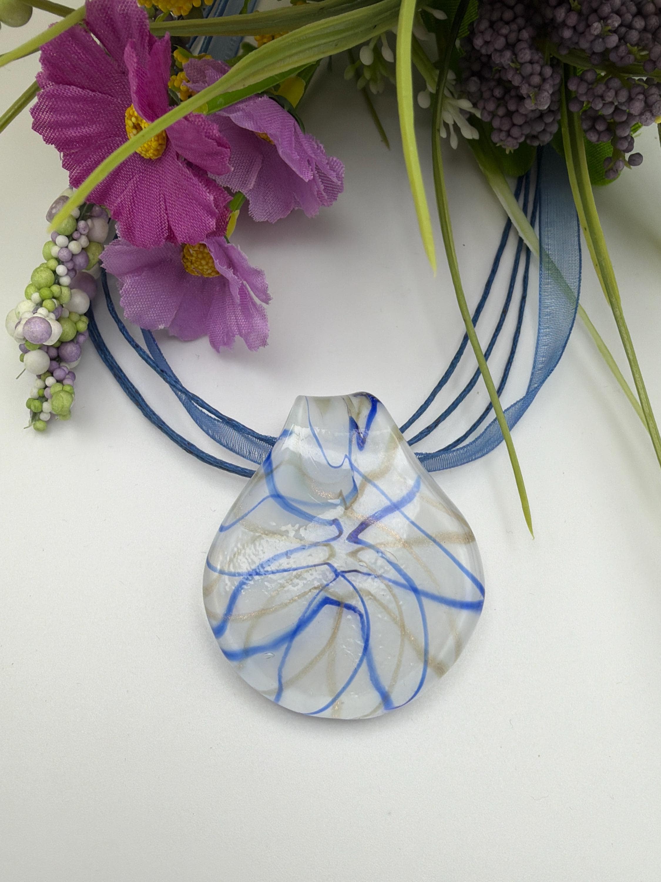White/Blue/Gold Clam Shell Pendant | Glass Clamshell Pendant Necklace