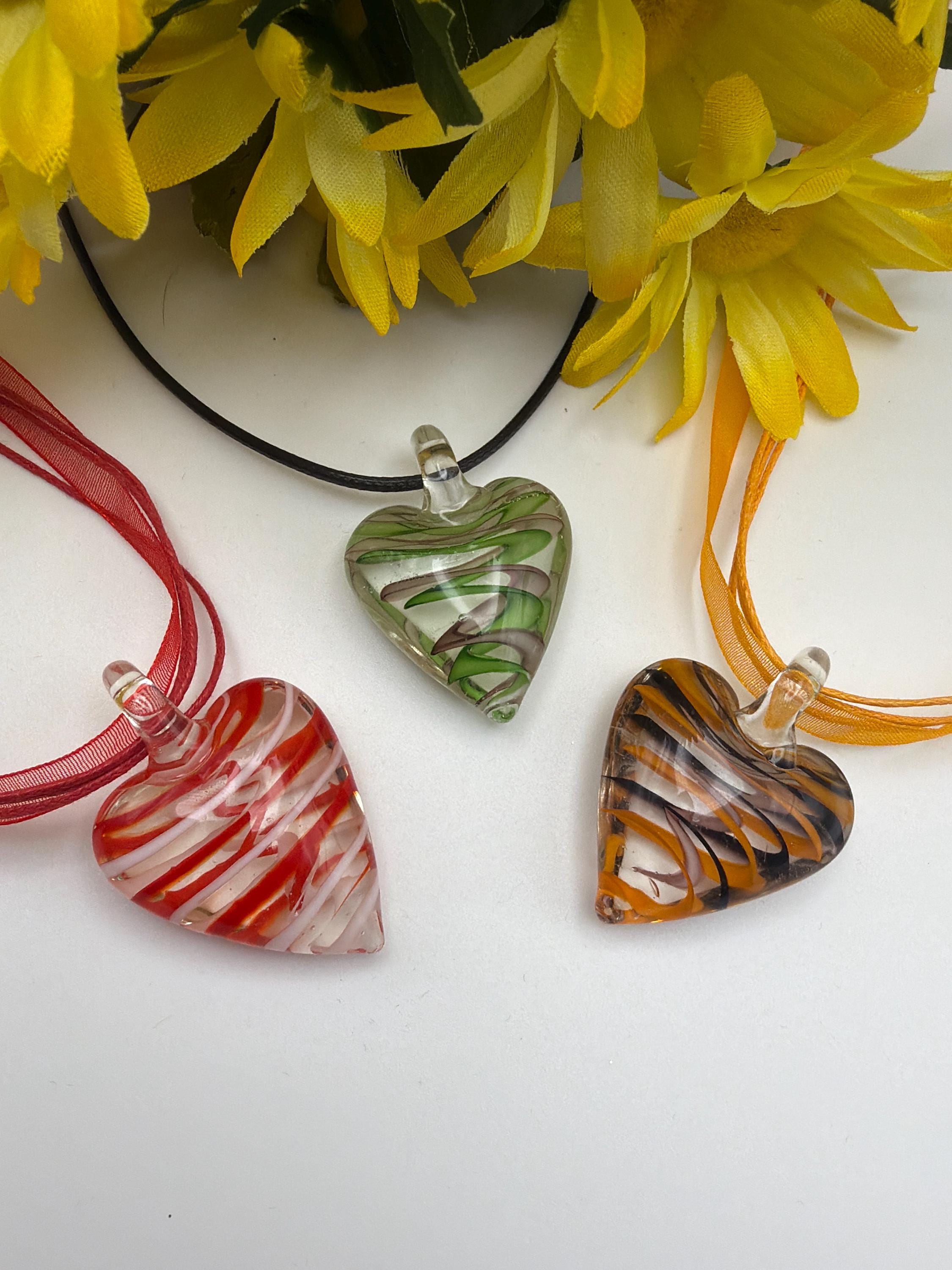 Swirl Heart Pendant Necklace | Glass Heart Pendant | Swirl Heart Necklace | Lampwork Glass Heart Pendant