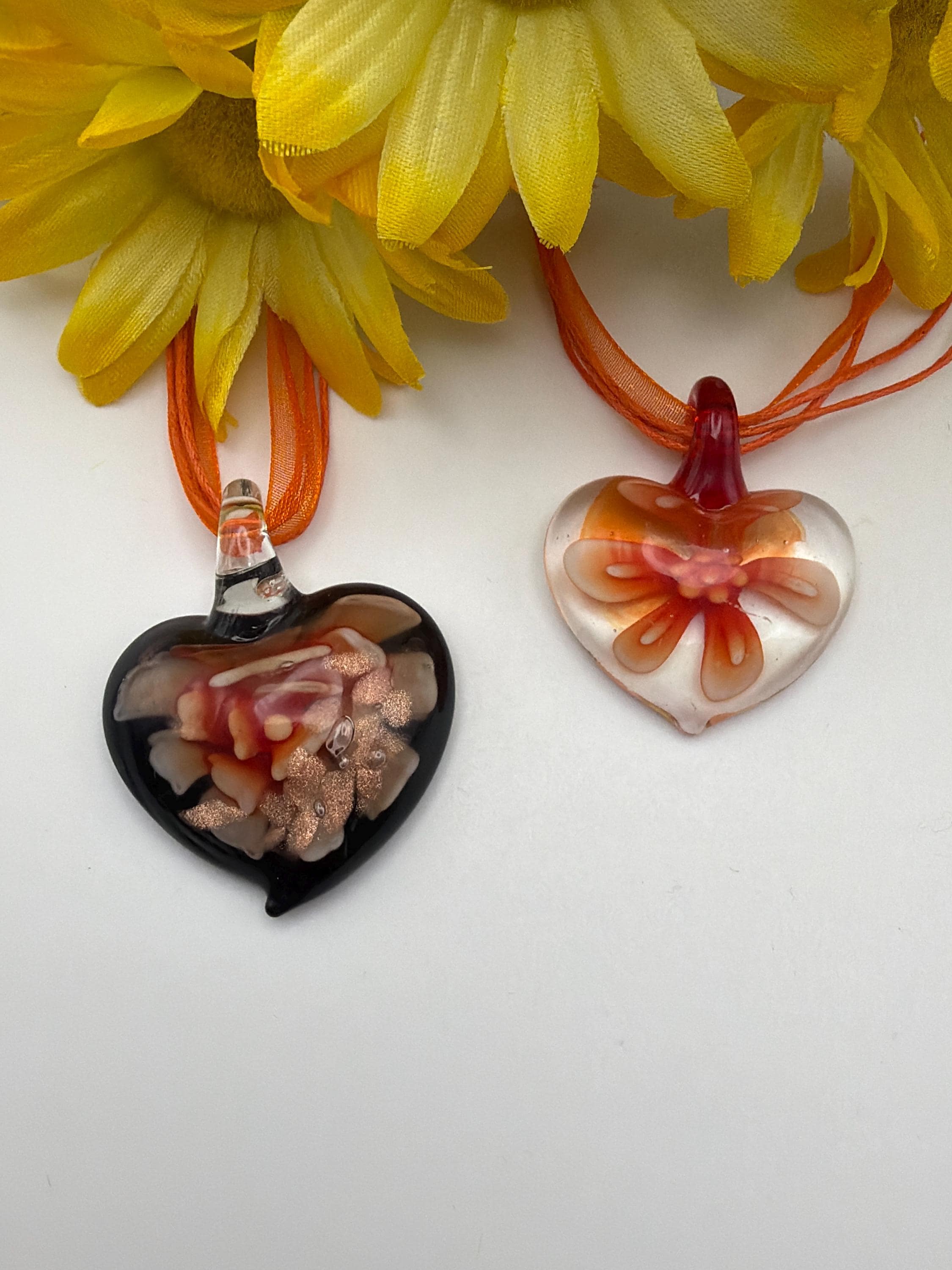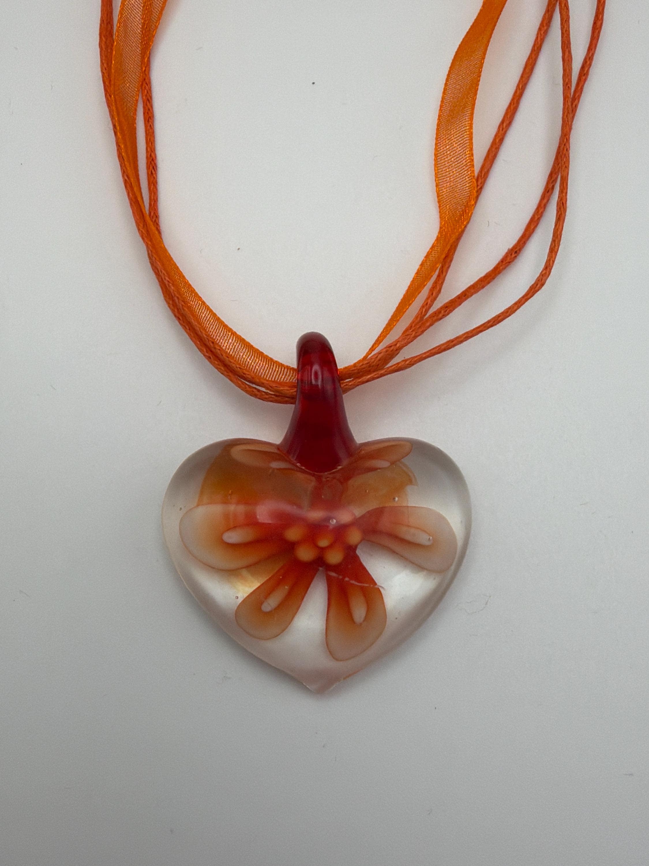 Orange Flower Pendant | Glass Heart Pendant Necklace | Lampwork Glass Orange Flower Pendant Necklace