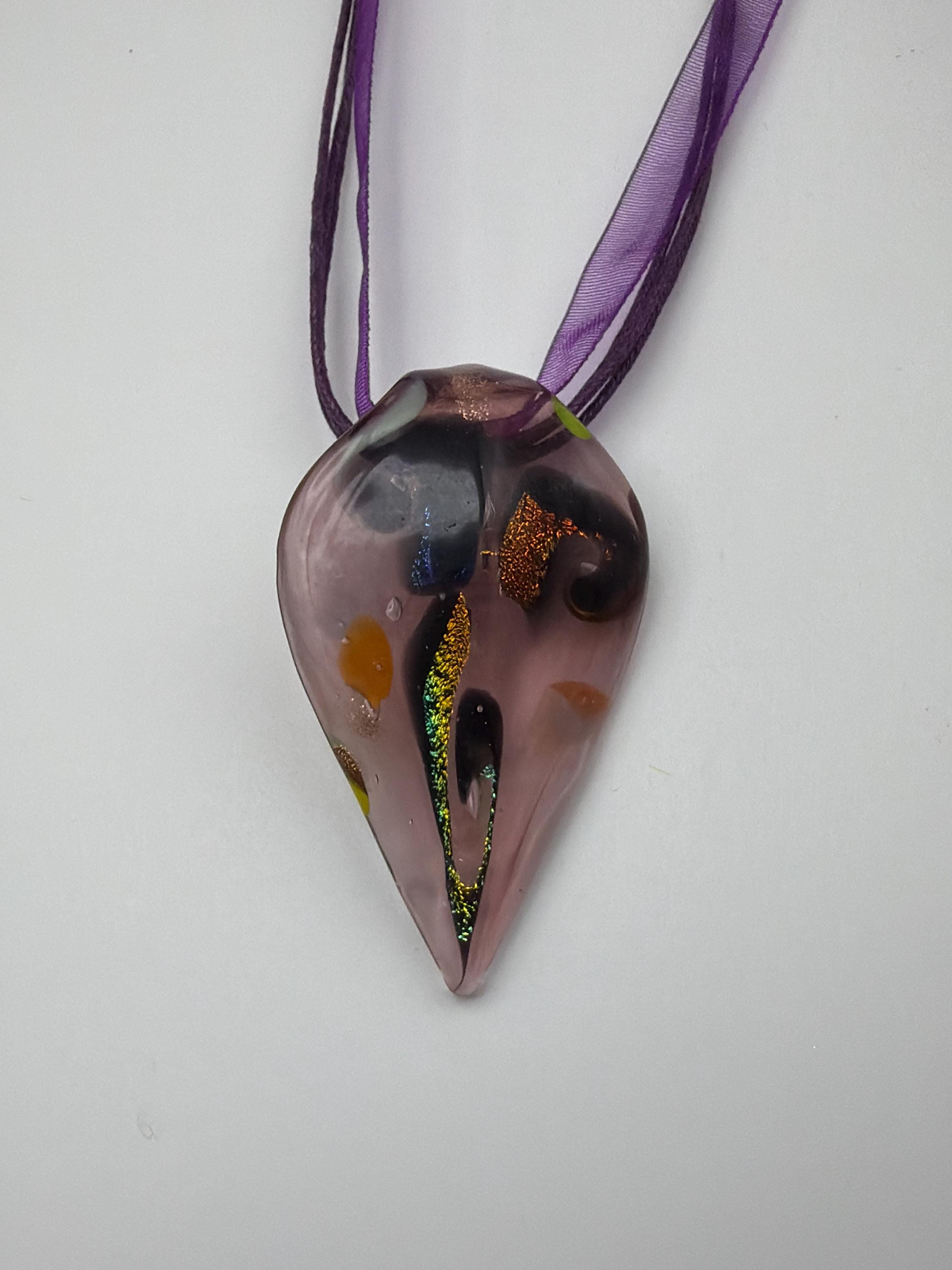 Purple Glass Leaf Pendant | Leaf Pendant Necklace | Lampwork Glass Leaf Pendant