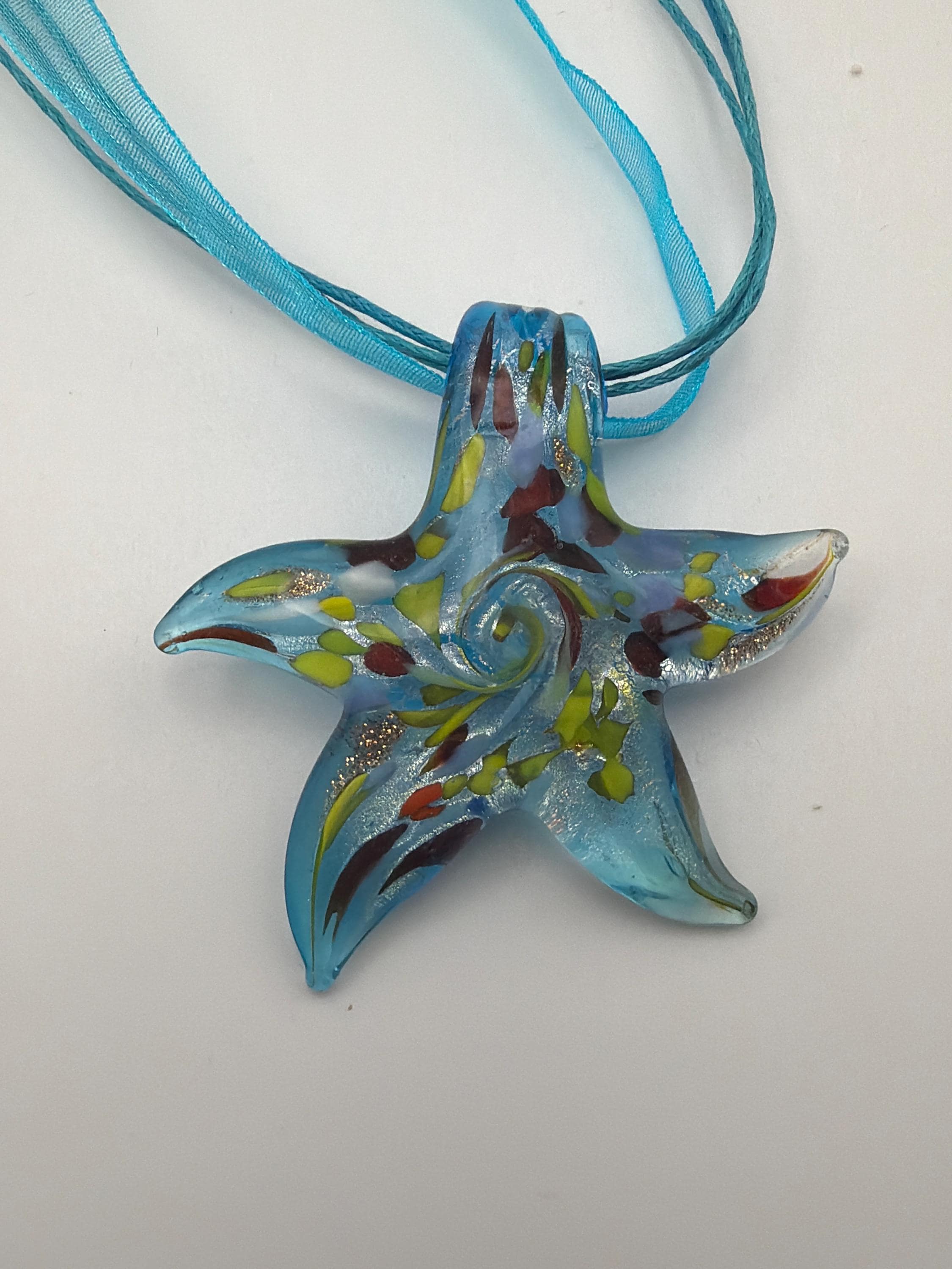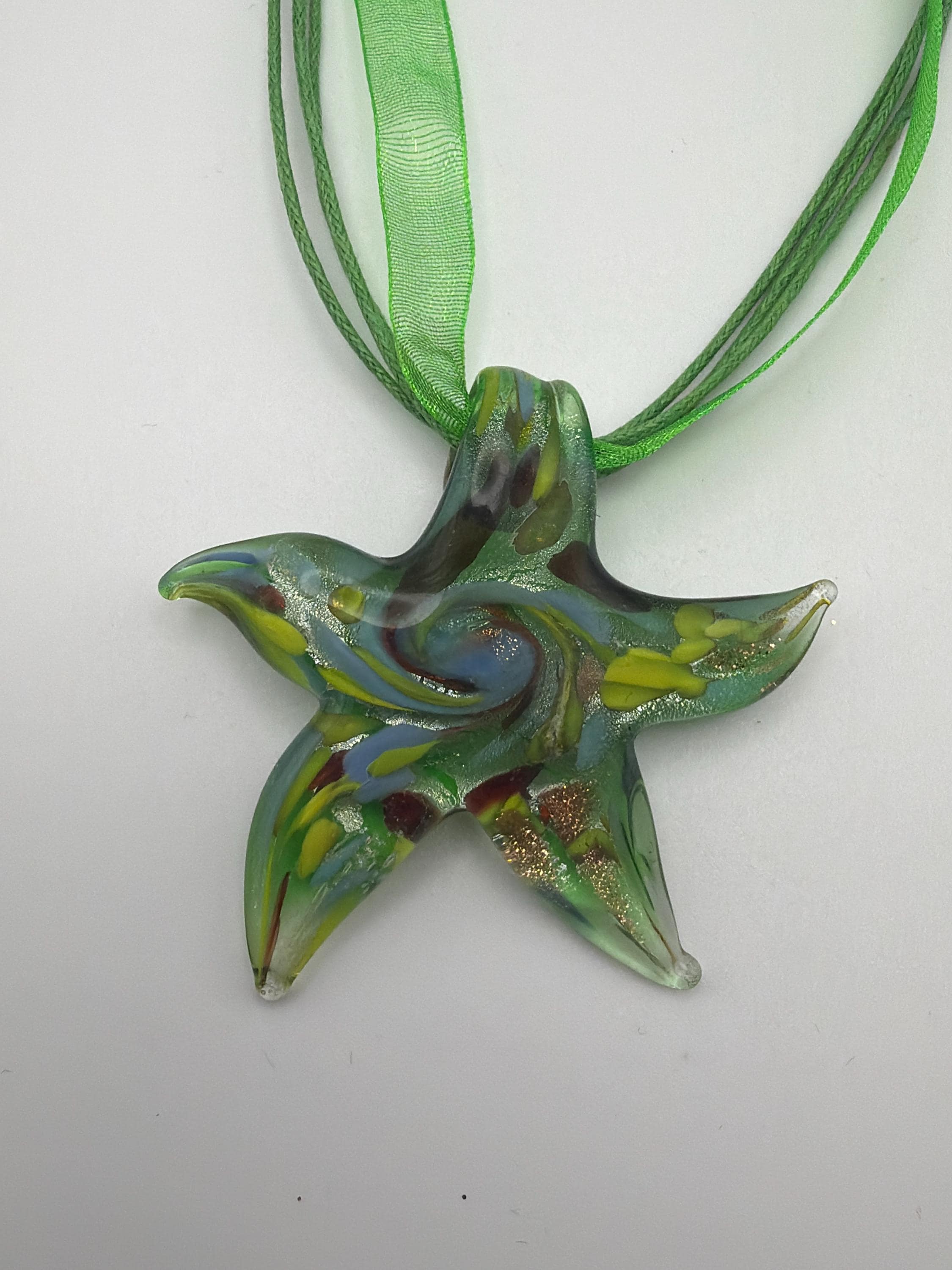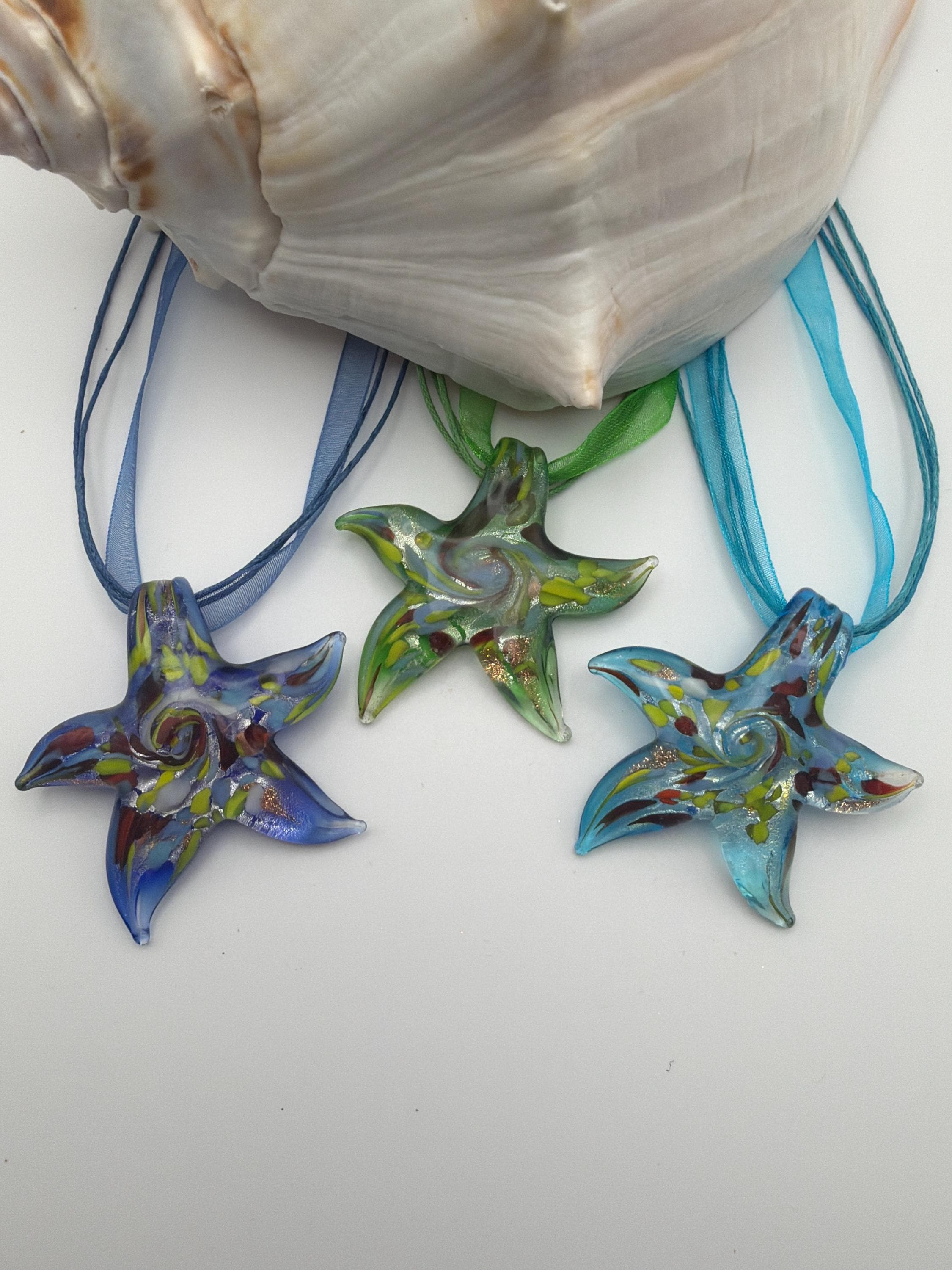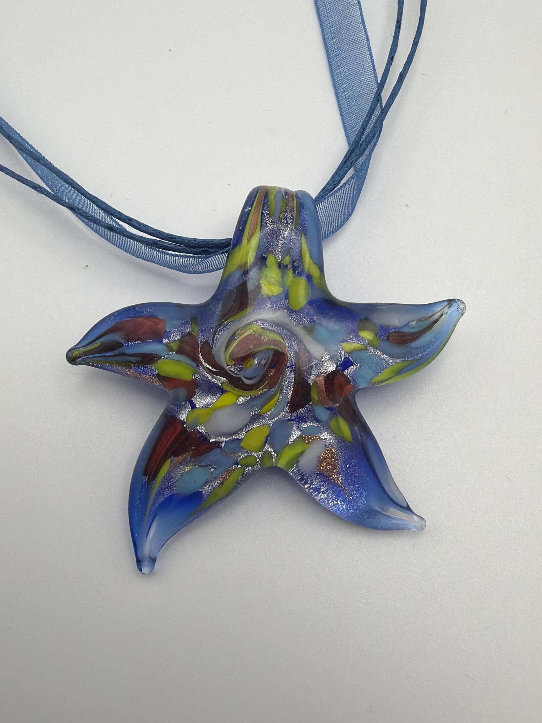 Multi-Color Starfish Pendant | LampWork Glass tarfish | Starfish Pendant Necklace