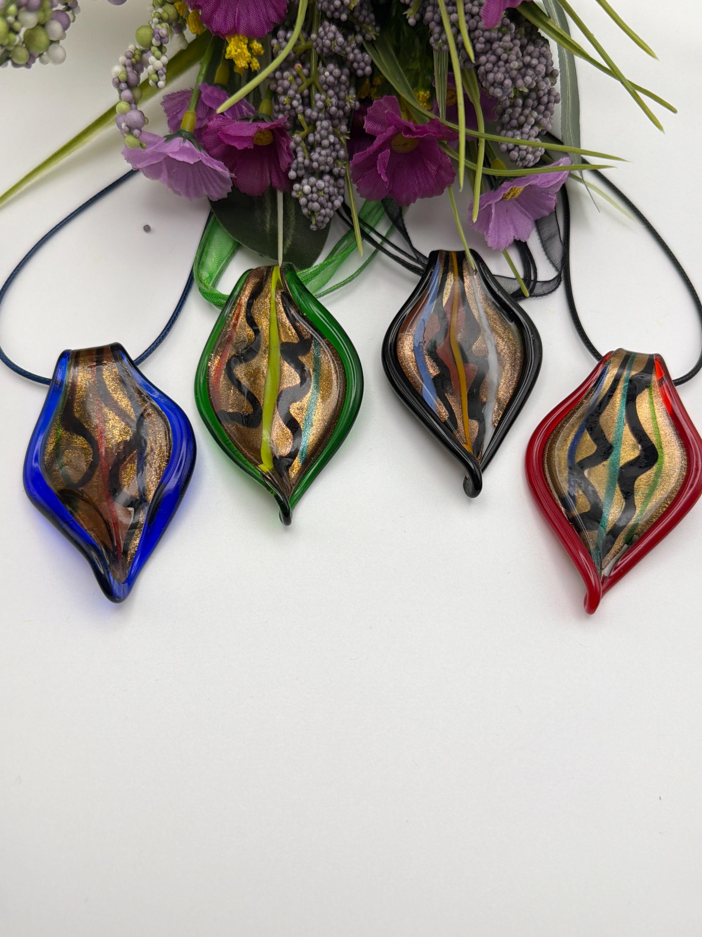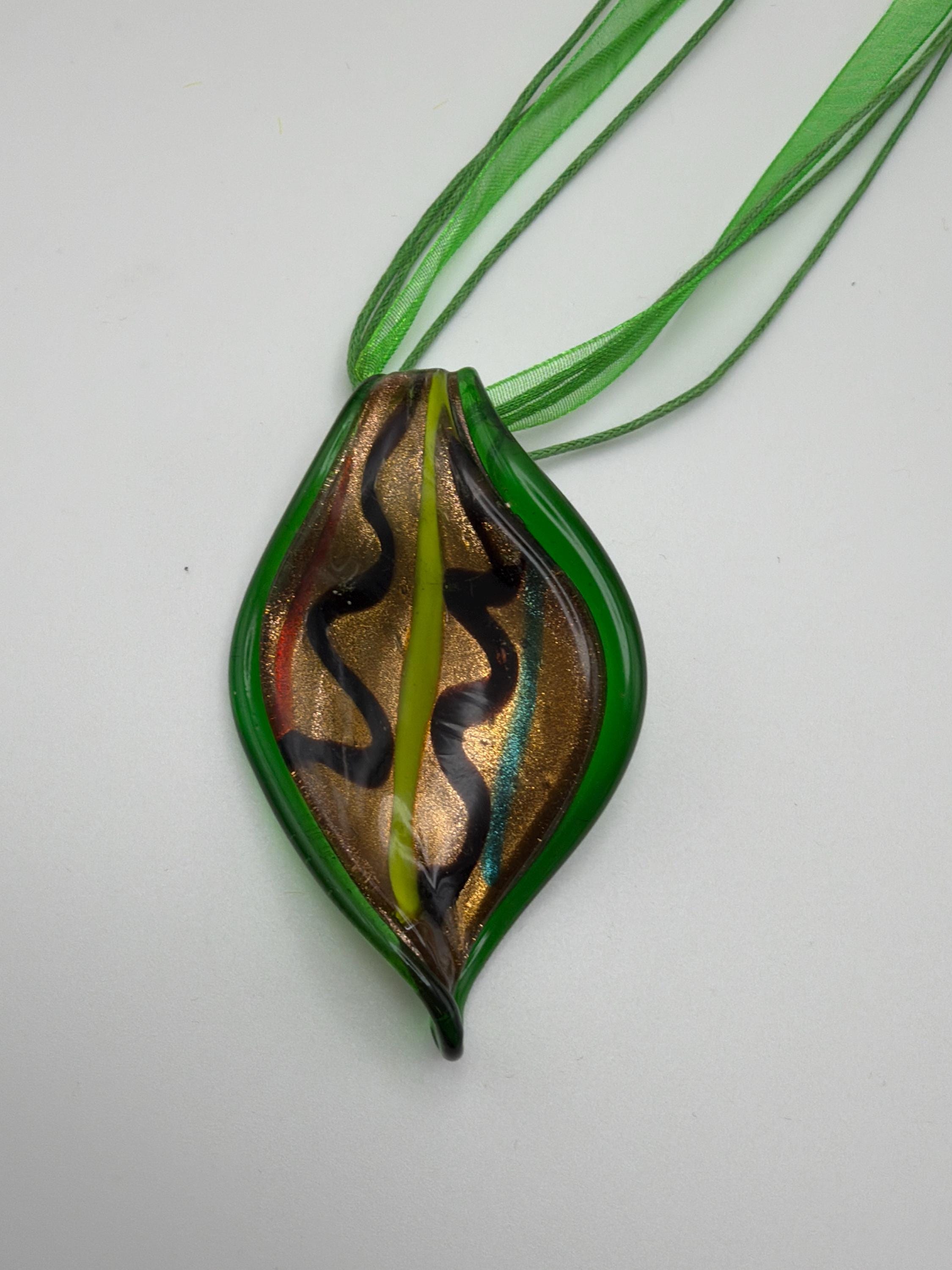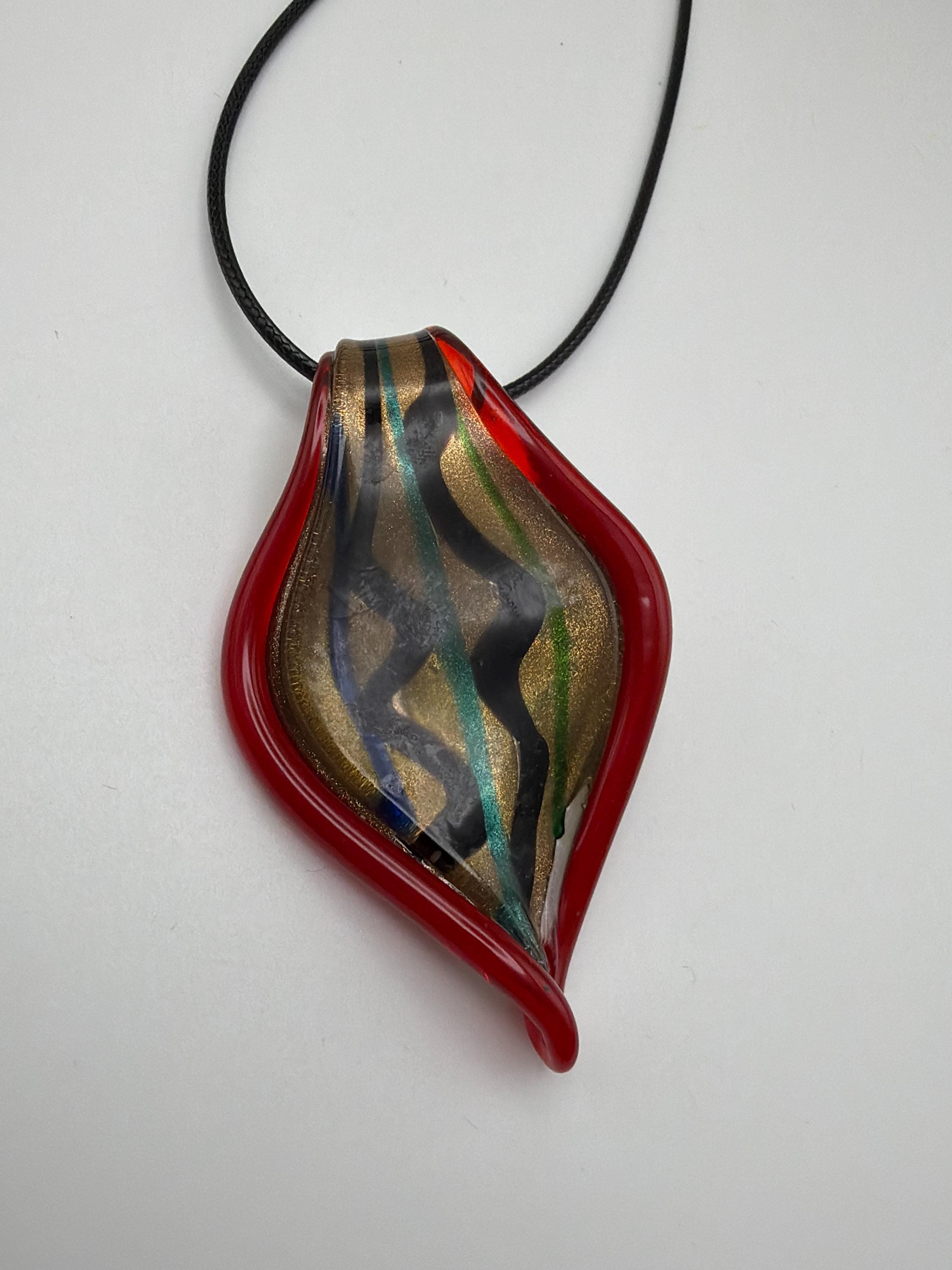 Murano Inspired Glass Leaf Pendant Necklace | Glass Leaf Pendant Necklace | Lampwork Glass Leaf Pendant
