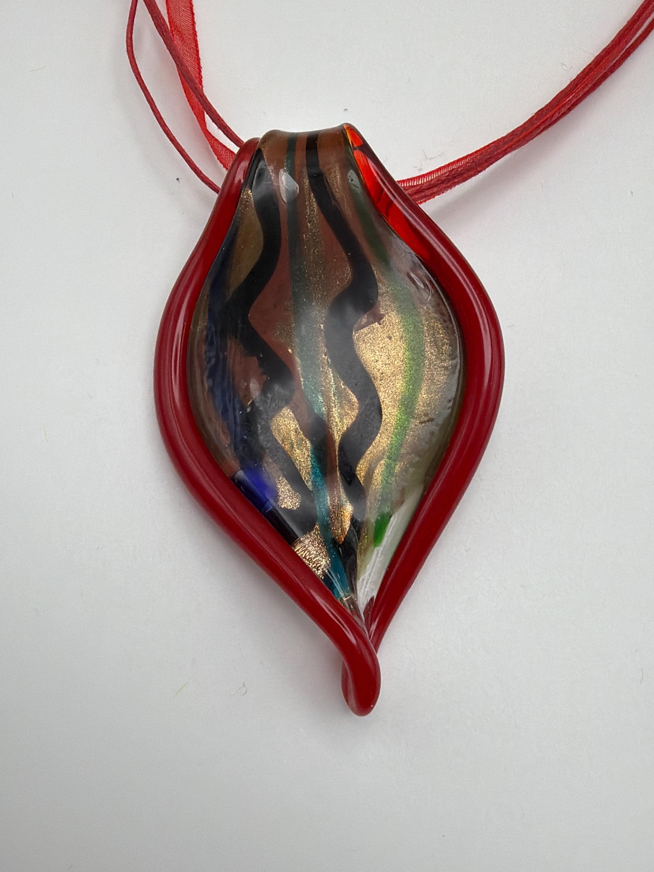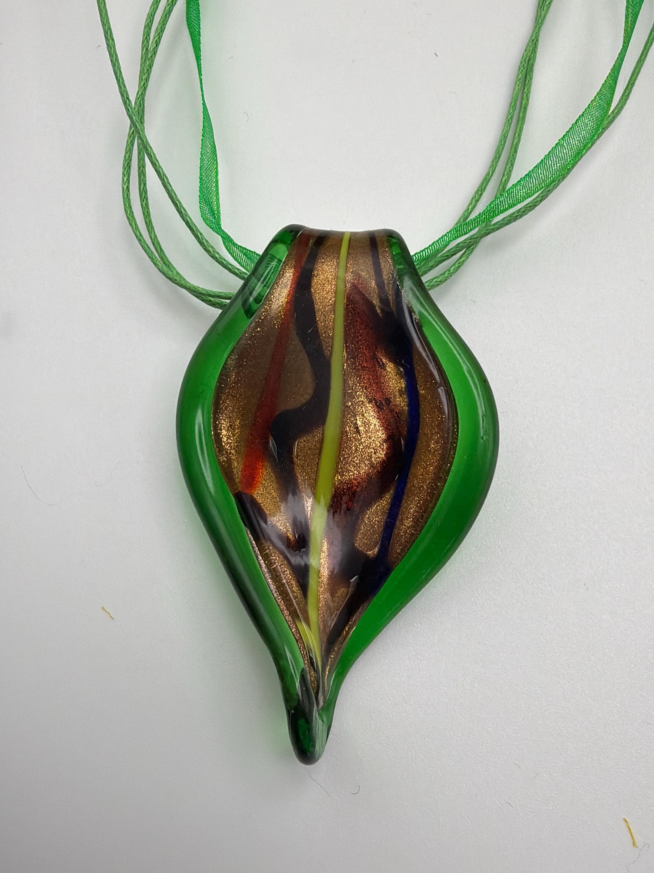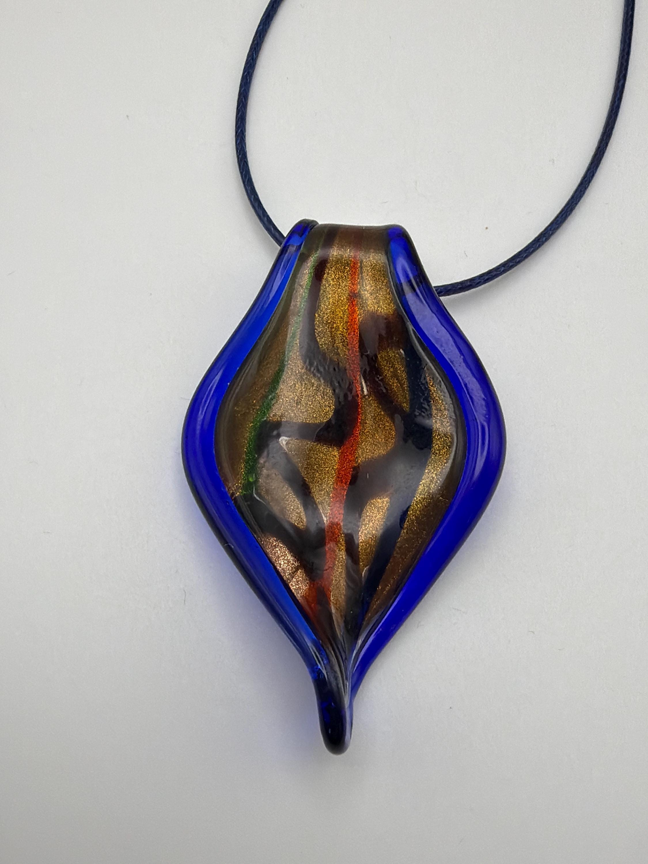 Murano Inspired Glass Leaf Pendant Necklace | Glass Leaf Pendant Necklace | Lampwork Glass Leaf Pendant