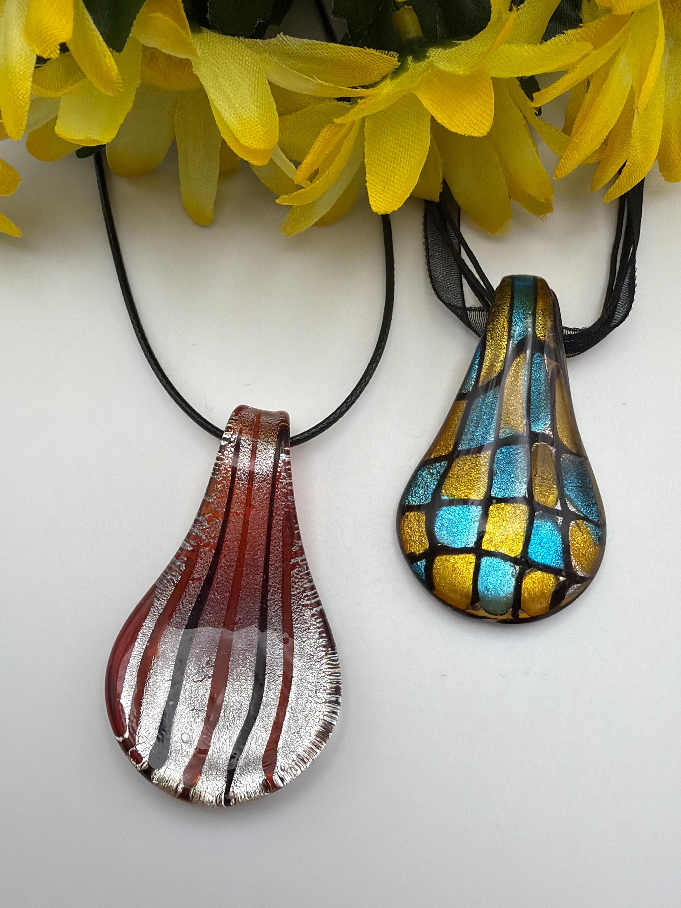 Drop Glass Pendant Necklace | Murano Glass Inspired Pendant | Lampwork Glass Drop Pendant Necklace