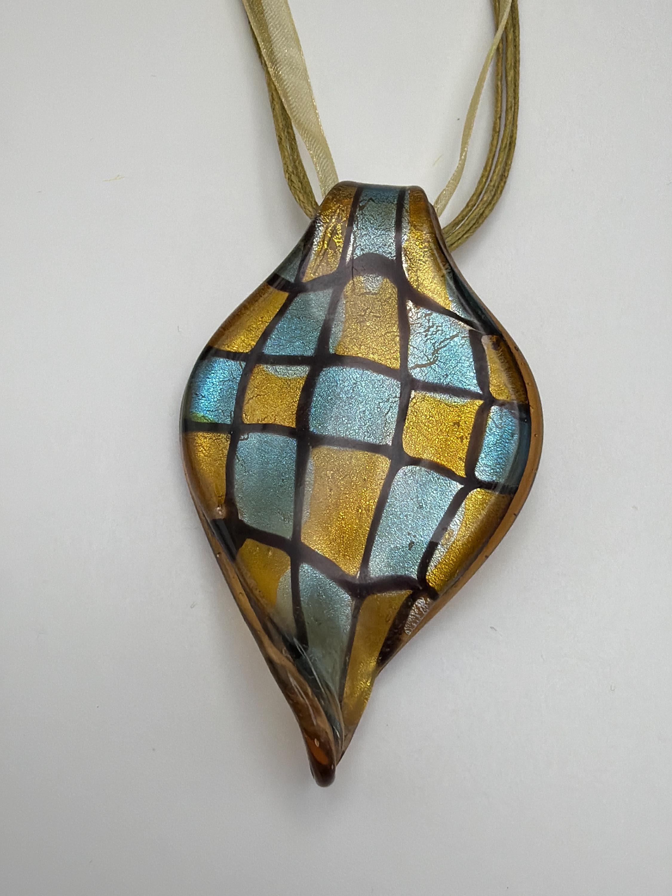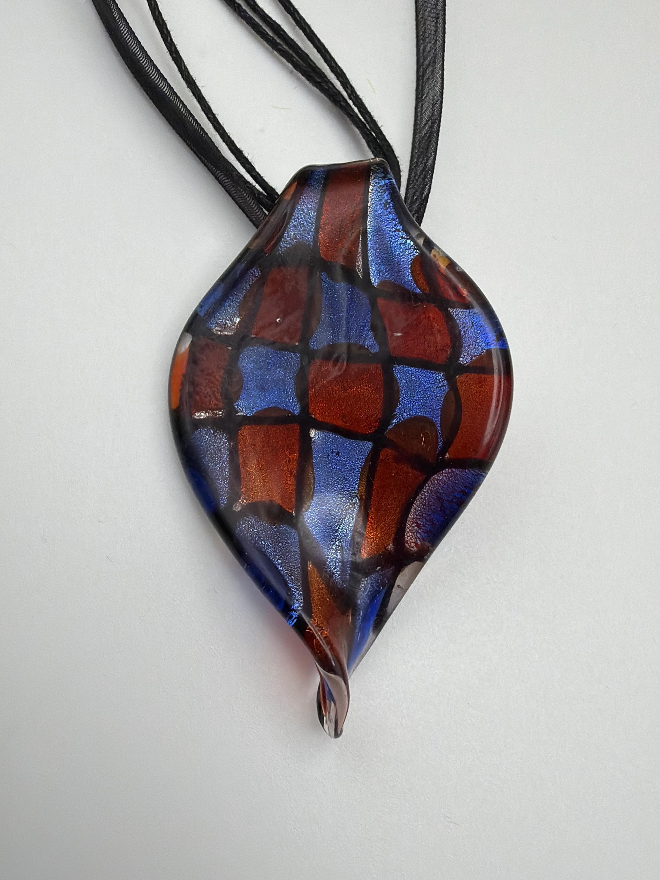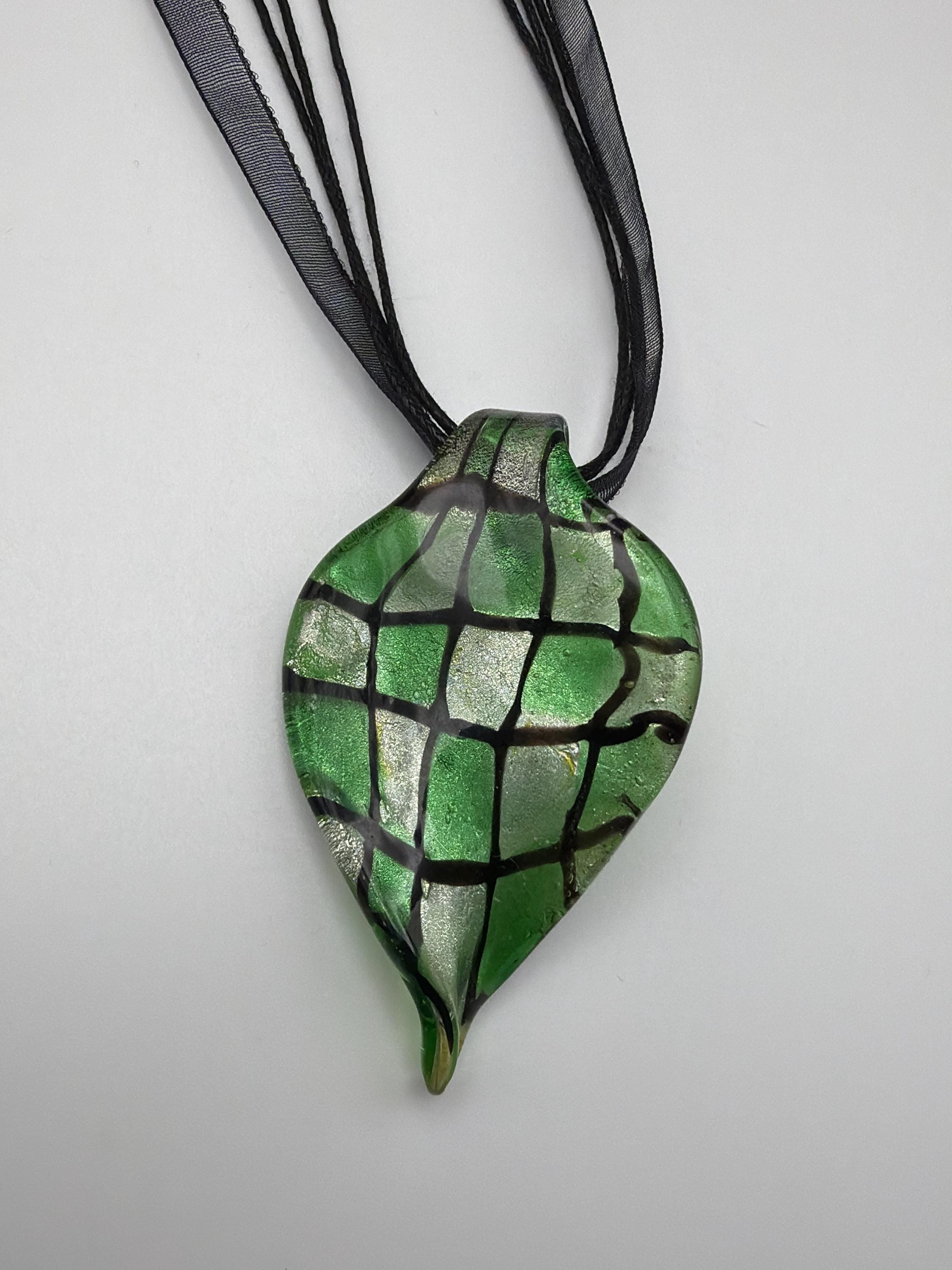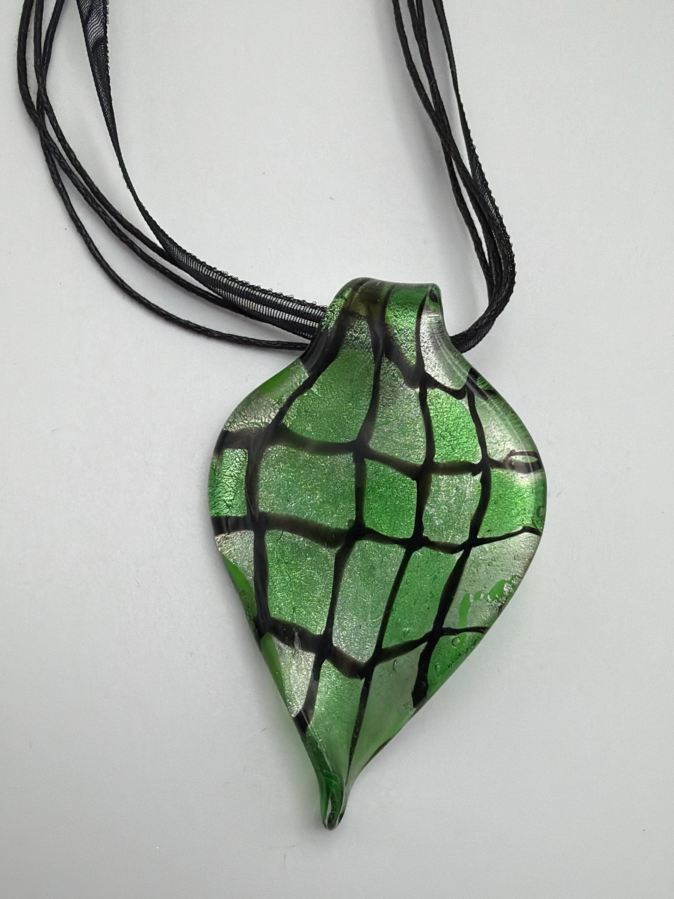 Checkered Leaf Pendant Necklace | Leaf Pendant Necklace | Lampwork Glass Leaf Pendant