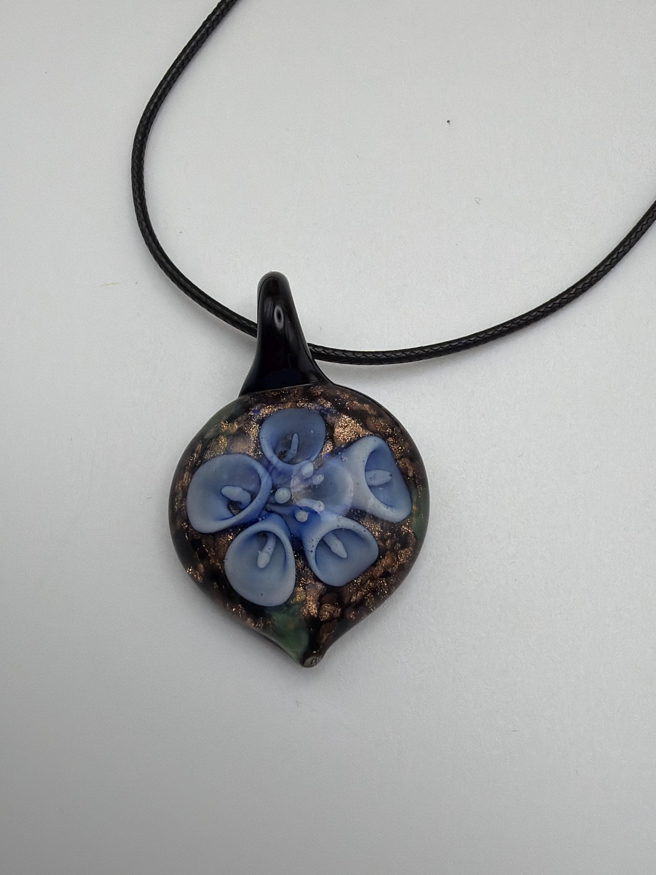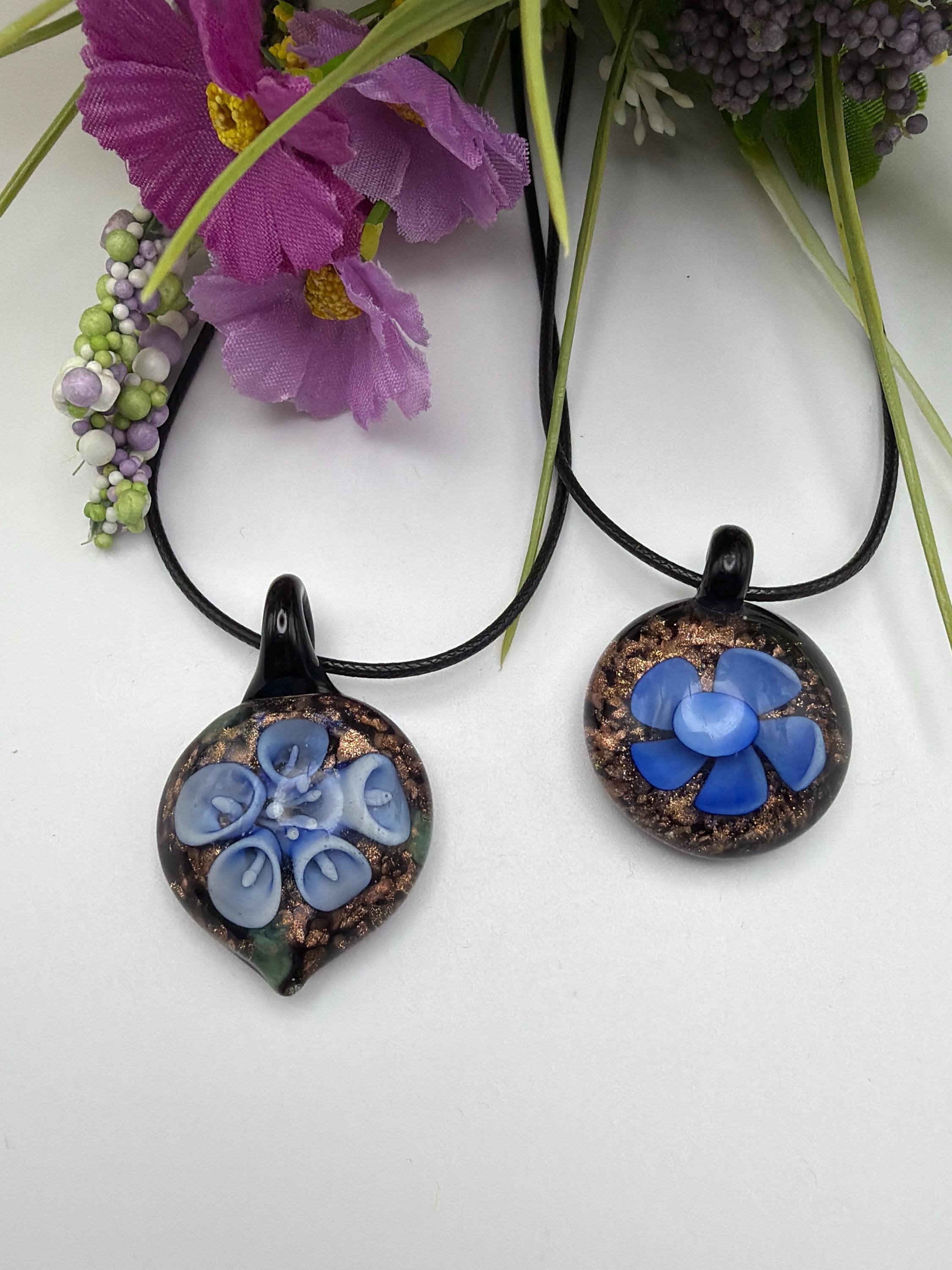 Blue Flower Pendant | Murano Inspired Glass Flower | Flower Pendant Necklace | Lampwork Glass Pendant Necklace