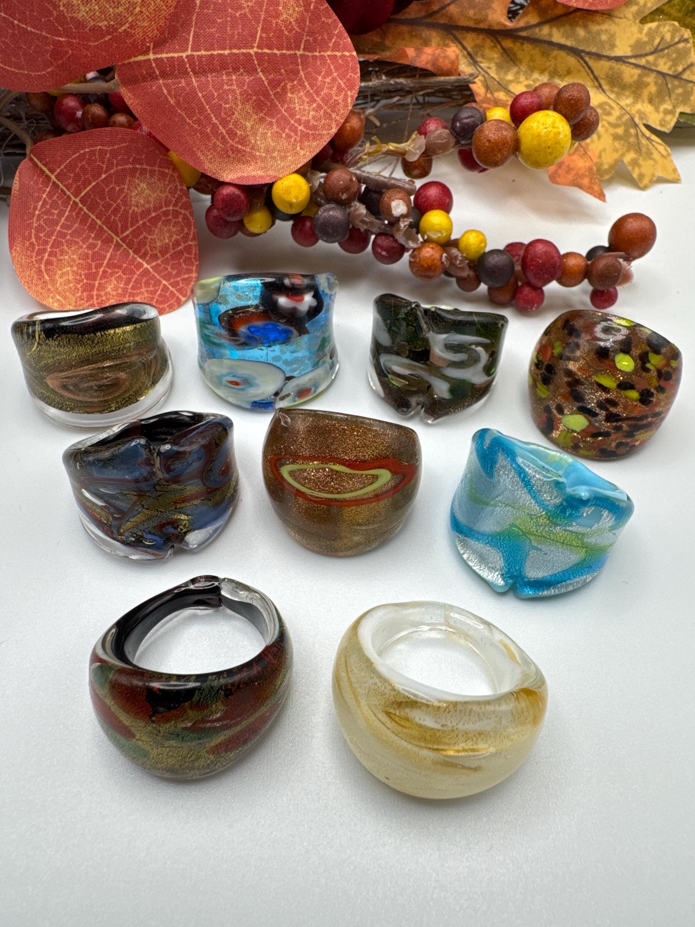 Size 8 - Assorted Glass Rings - Millefiori Glass Rings | Murano Glass Inspired Glass Rings