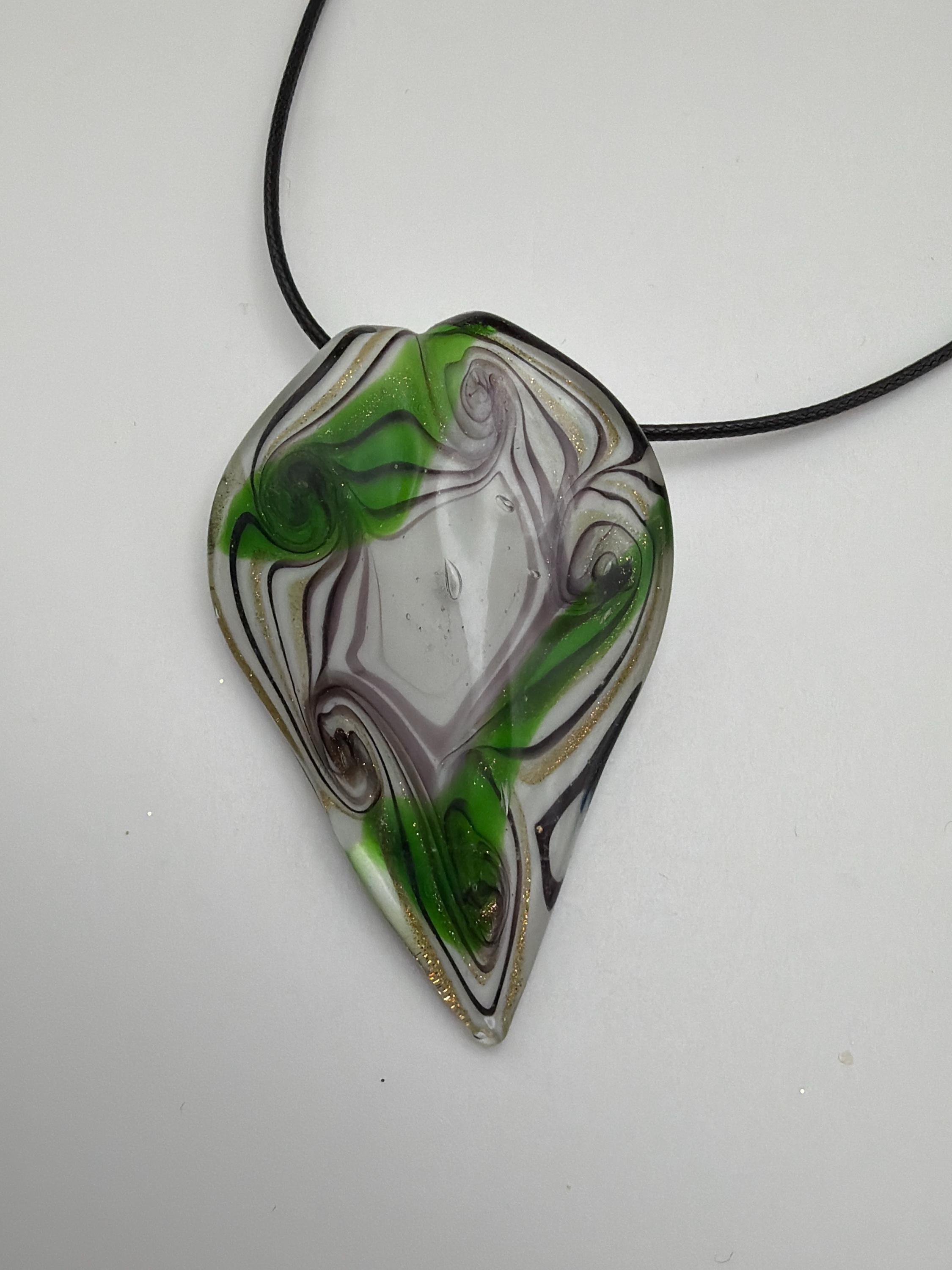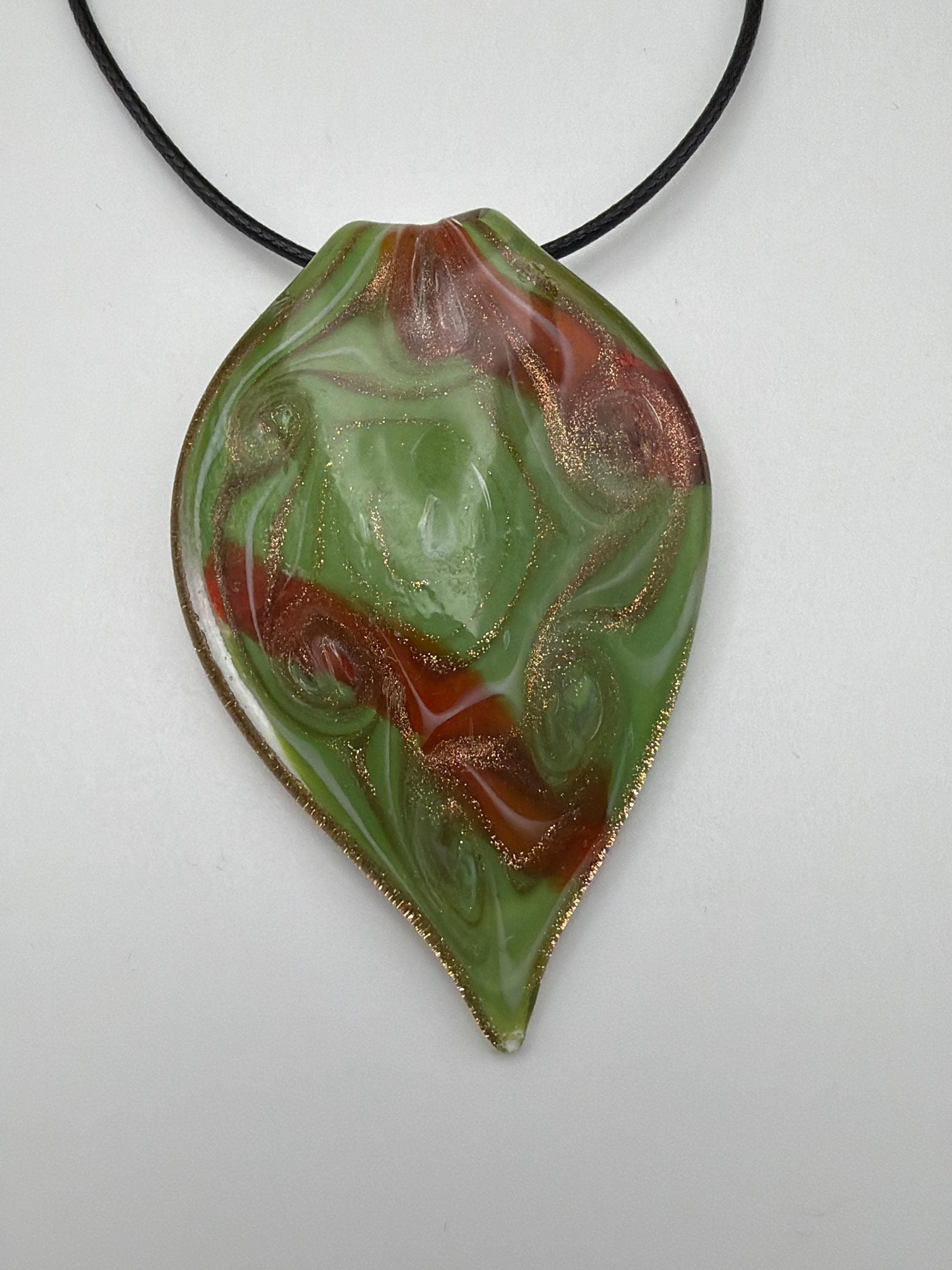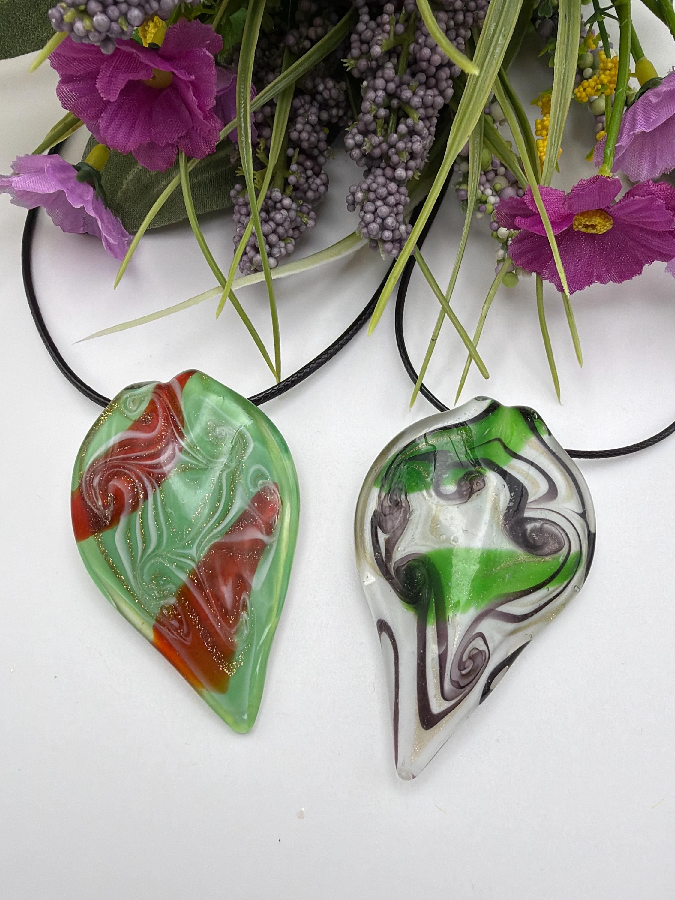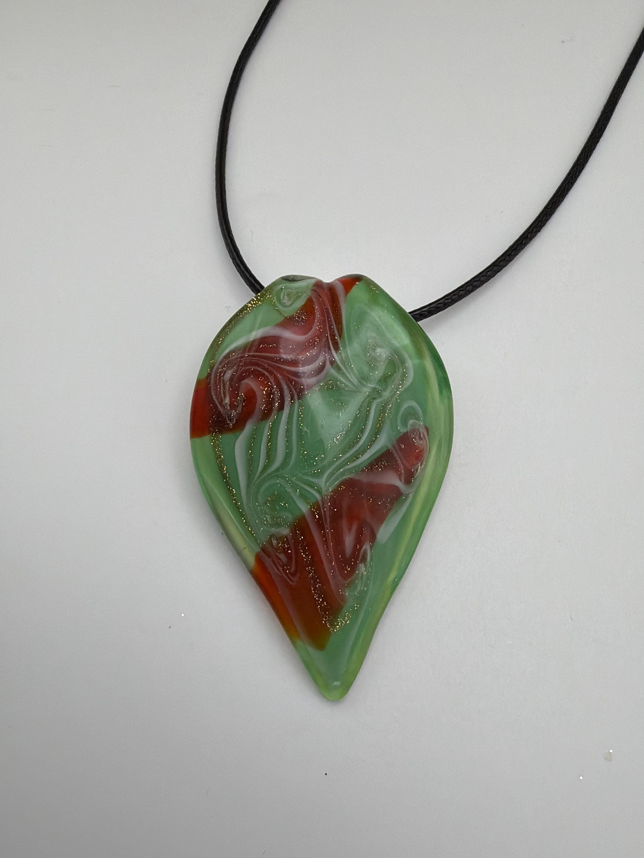 Green/Red/Gold Leaf Pendant | Murano Inspired Glass Leaf | Leaf Pendant Necklace