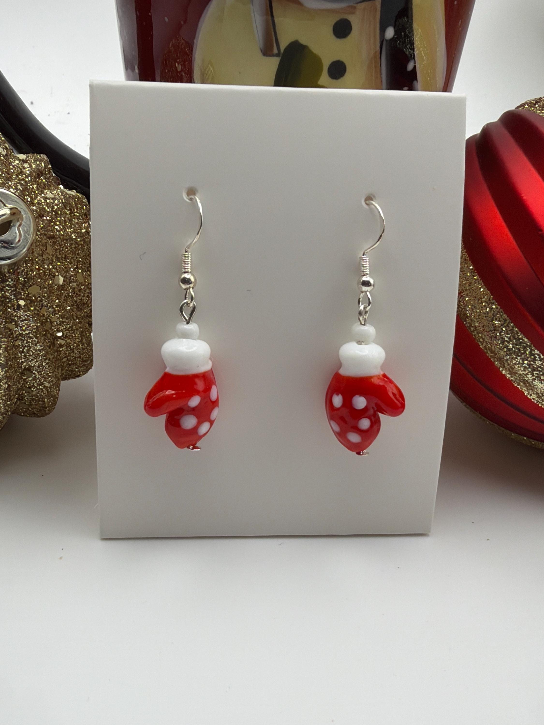 Red Mitten Glass Earrings | Lampwork Glass Mitten Earrings | Christmas Earrings | Mitten Earrings | Stocking Stuffers