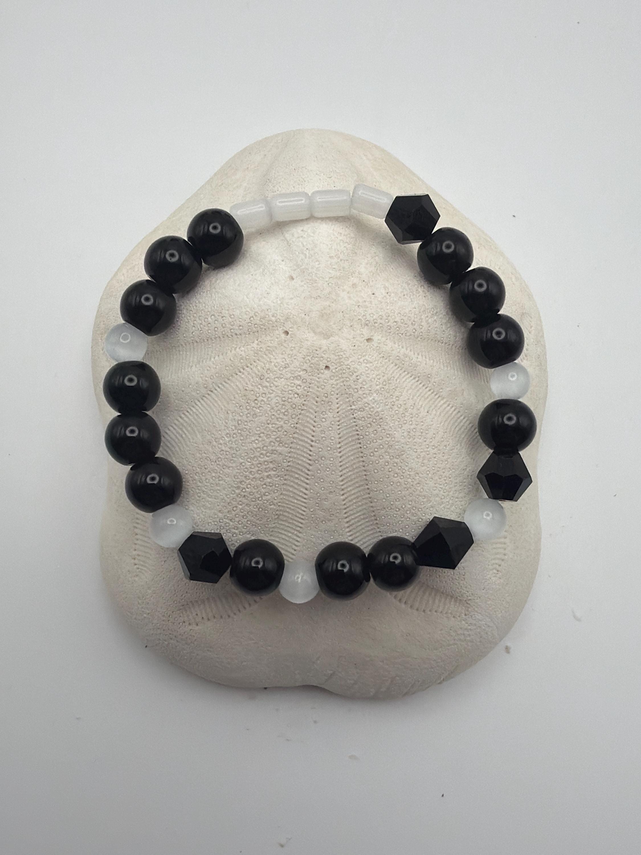Black agate and white cats eye | Stretch Bracelet | Beaded bracelet | Morse code - Badass | Message in a Bracelet | Quote Bracelet