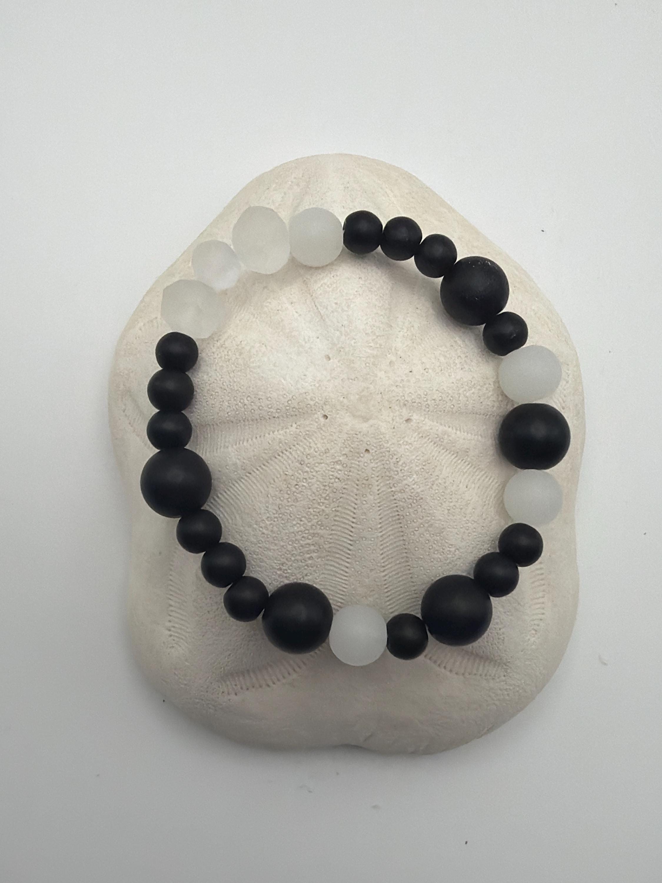 Black Agate gemstones | Stretch Bracelet | Beaded Bracelet | Morse code - Badass | Message in a Bracelet | Quote Bracelet |