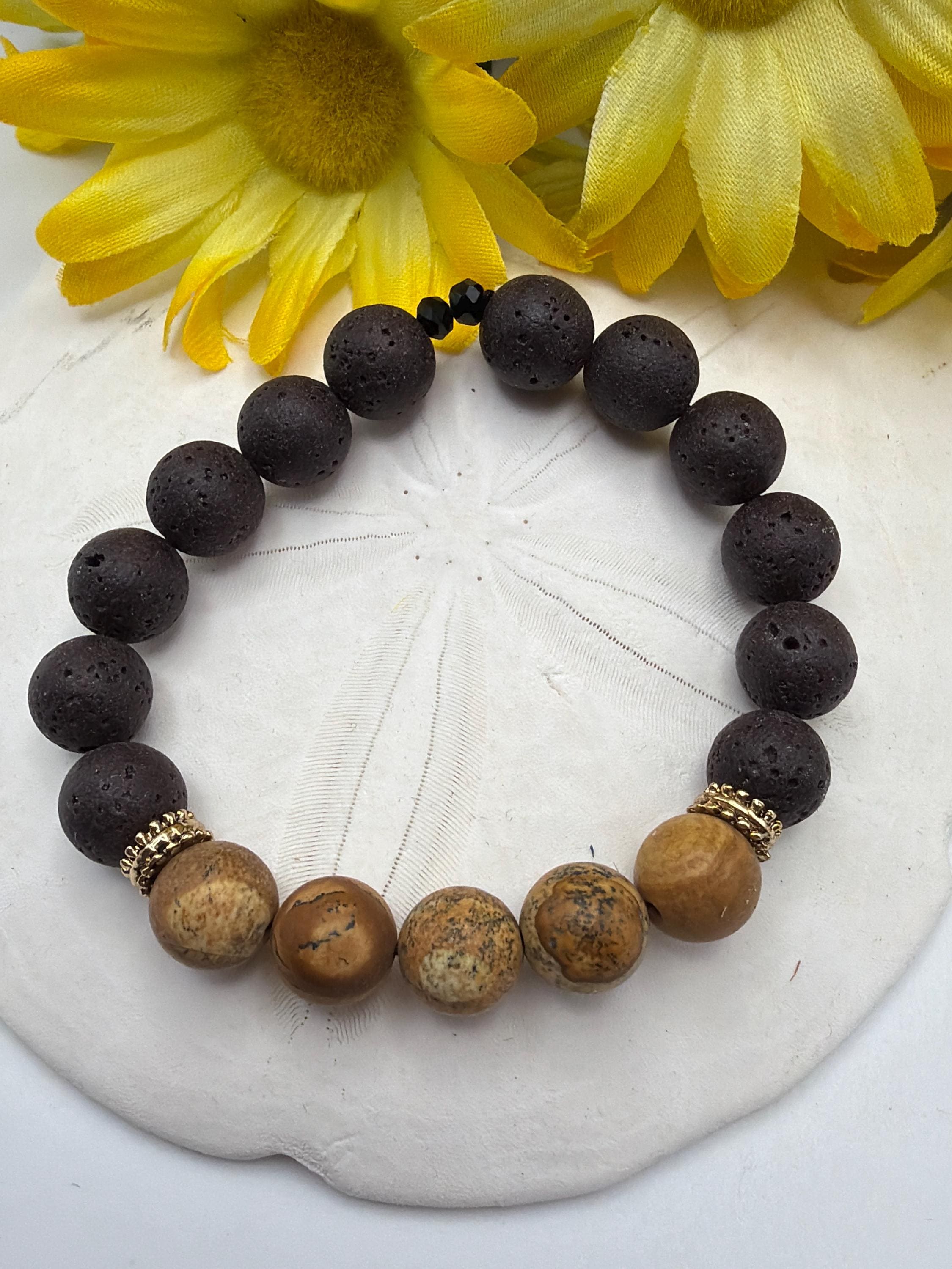 Brown Stone & Lava Bead Stretch Bracelet | Beaded Bracelet