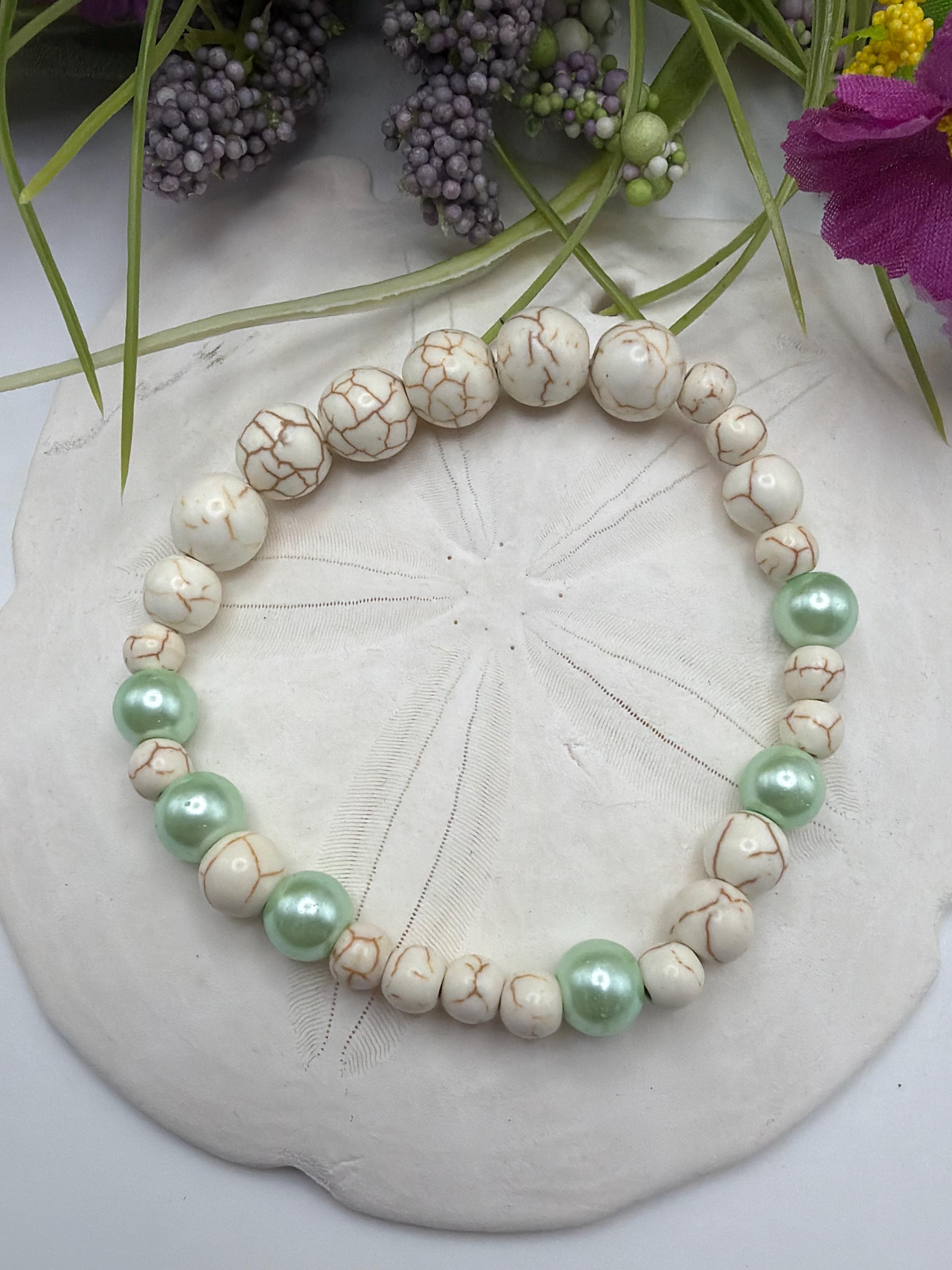 🌟 Introducing our Howlite & Mint Green Stretch Bracelet 💫 - a unique blend of style and meaning! This beaded bracelet is crafted with care, featuring hand-selected howlite and mint green beads that add a touch of tranquility and freshness to your everyday look.