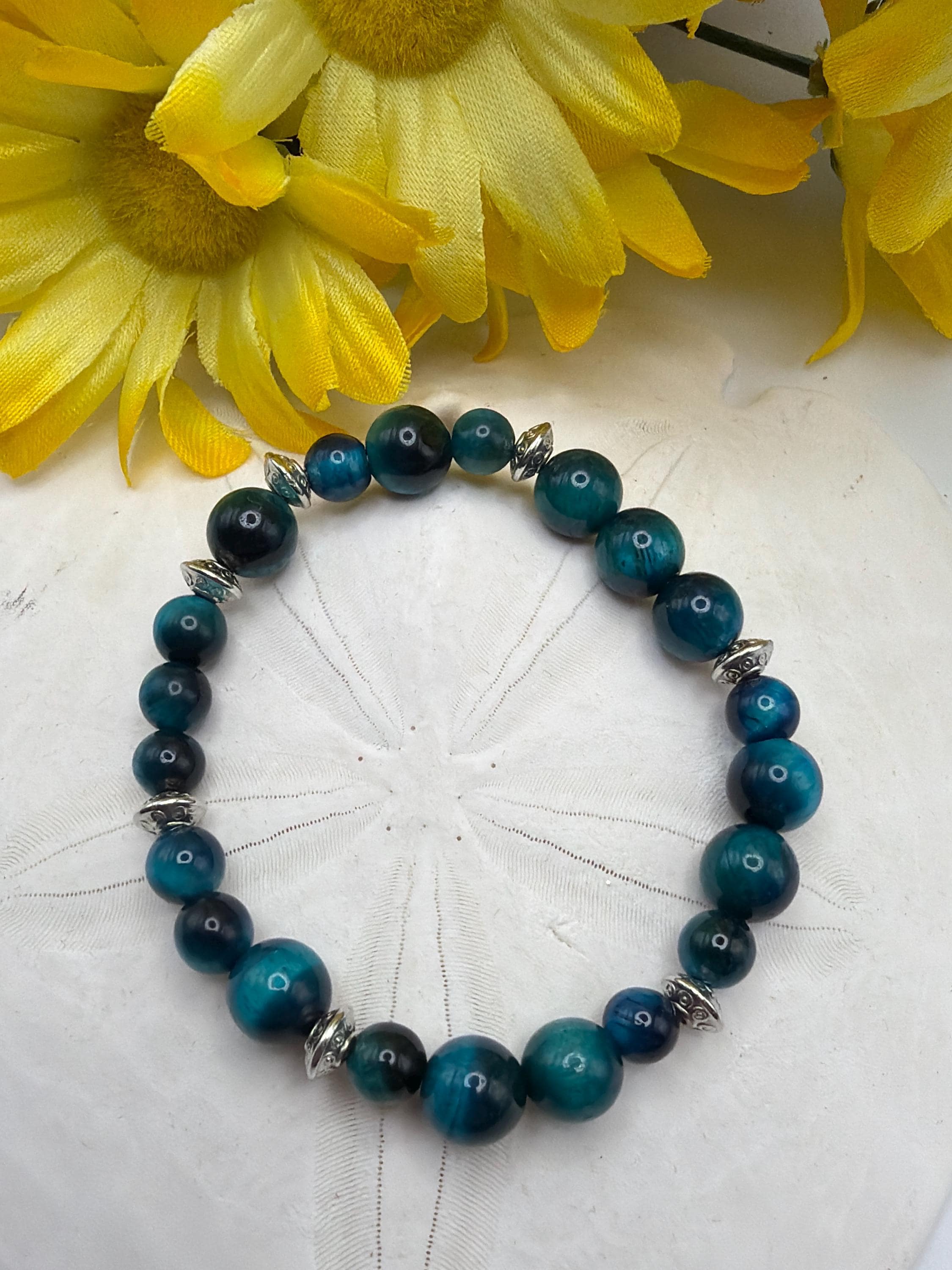 Blue Tiger Eye Stretch Bracelet | Beaded Bracelet | Morse code - Support | Message in a Bracelet | Quote Bracelet