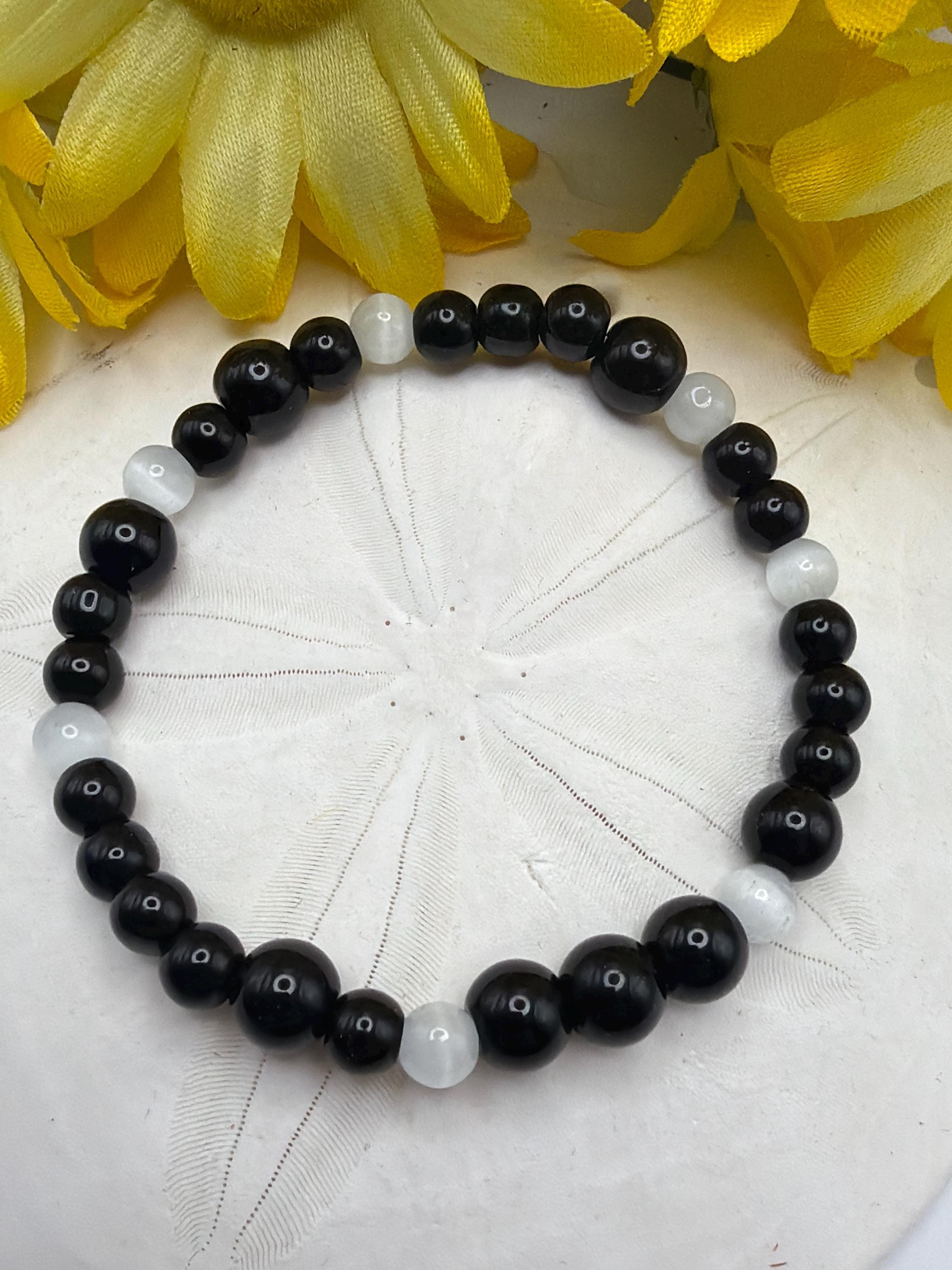 Black Agate and Moonstone Stretch Bracelet | Support - Morse Code | Message in a Bracelet | Beaded Bracelet | Quote Bracelet