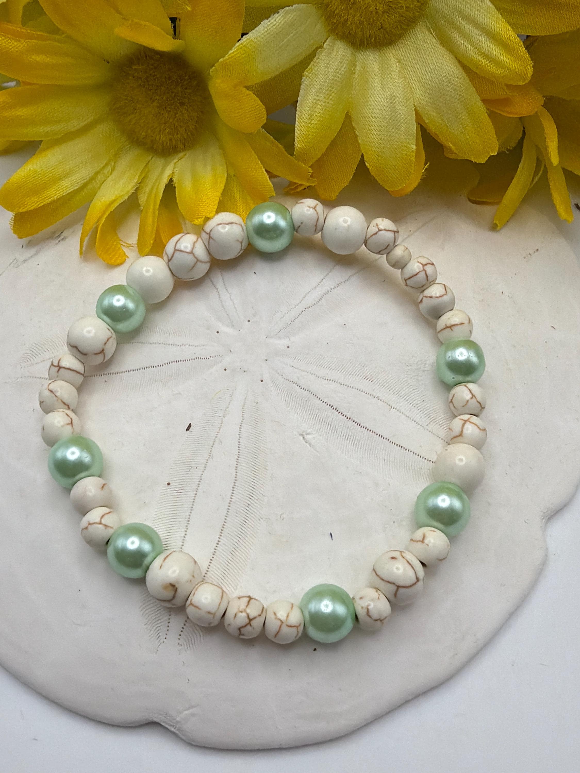 🌟 Handcrafted with White Howlite and Mint Green Pearls