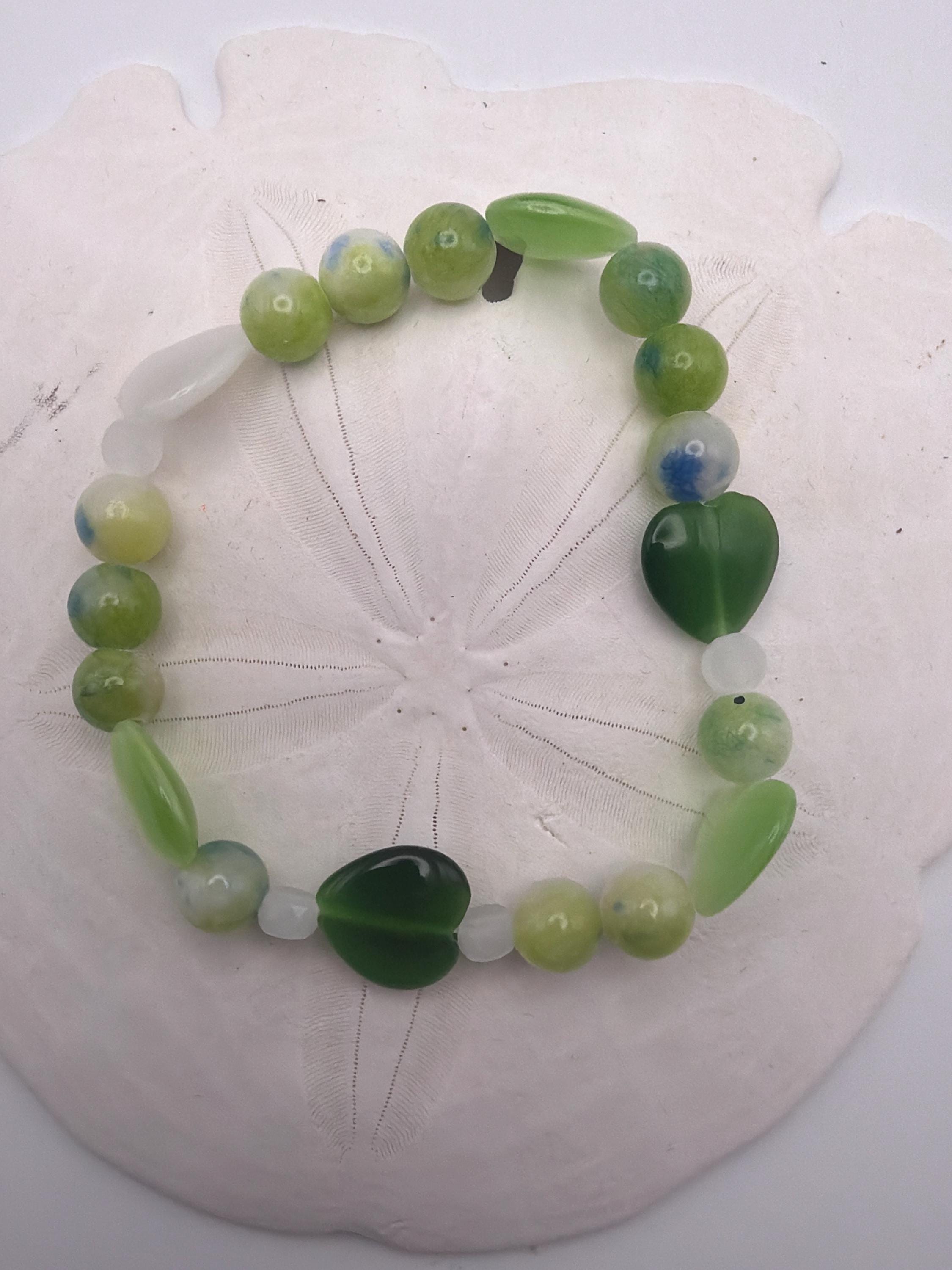 😻 Unleash your inner badass with our Green Jade and Cat's Eye hearts Stretch Bracelet 😼! This striking beaded bracelet showcases the mesmerizing beauty of cat's eye beads, capturing the enigmatic allure of feline grace and strength. Combined with the unique green Jade, it’s a stunning accessory.