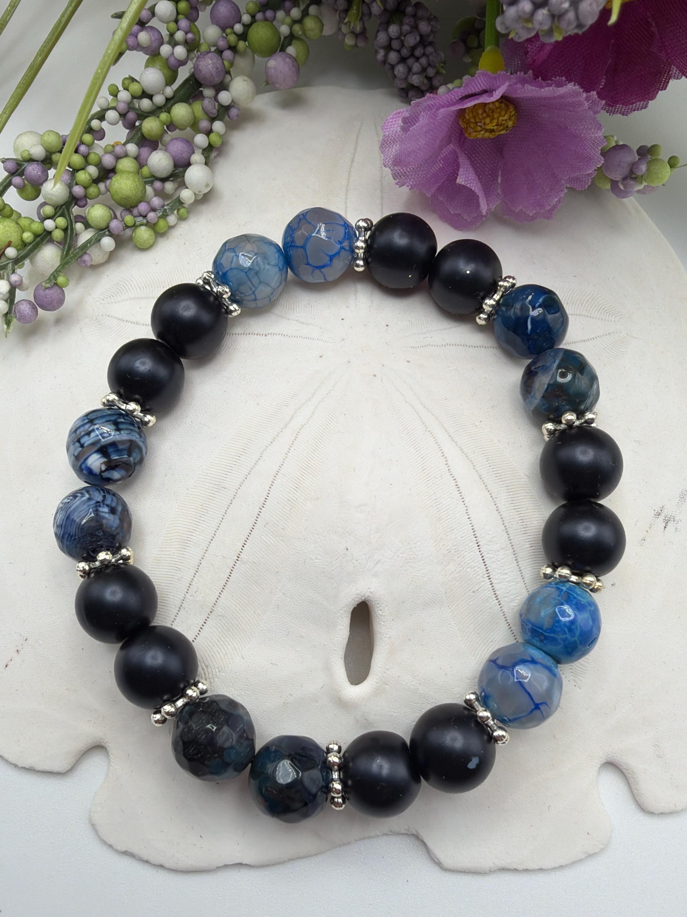 Dyed Agate Stretch Bracelet | Blue Agate Stretch Bracelet | Matte Black Pearl Bracelet