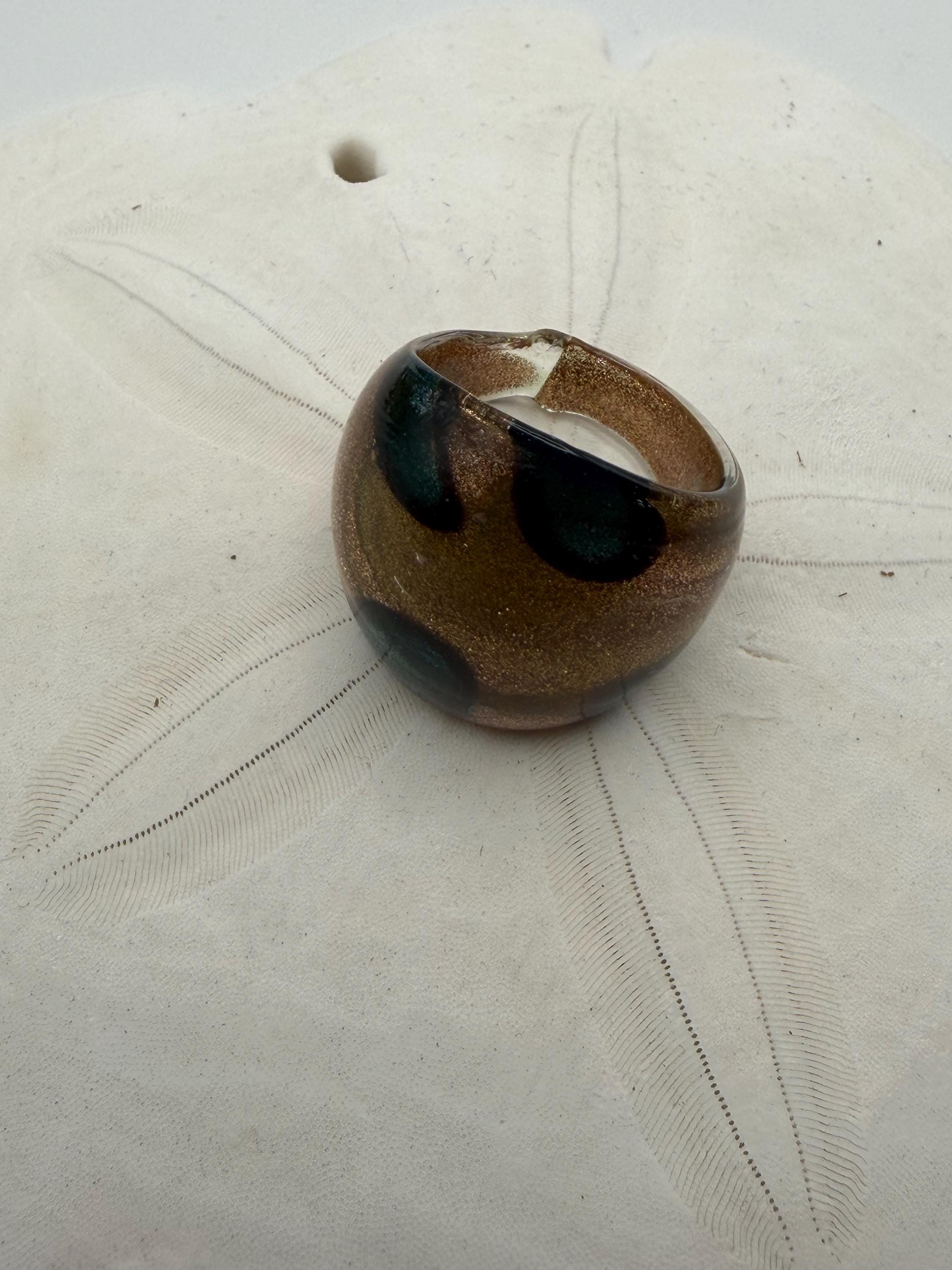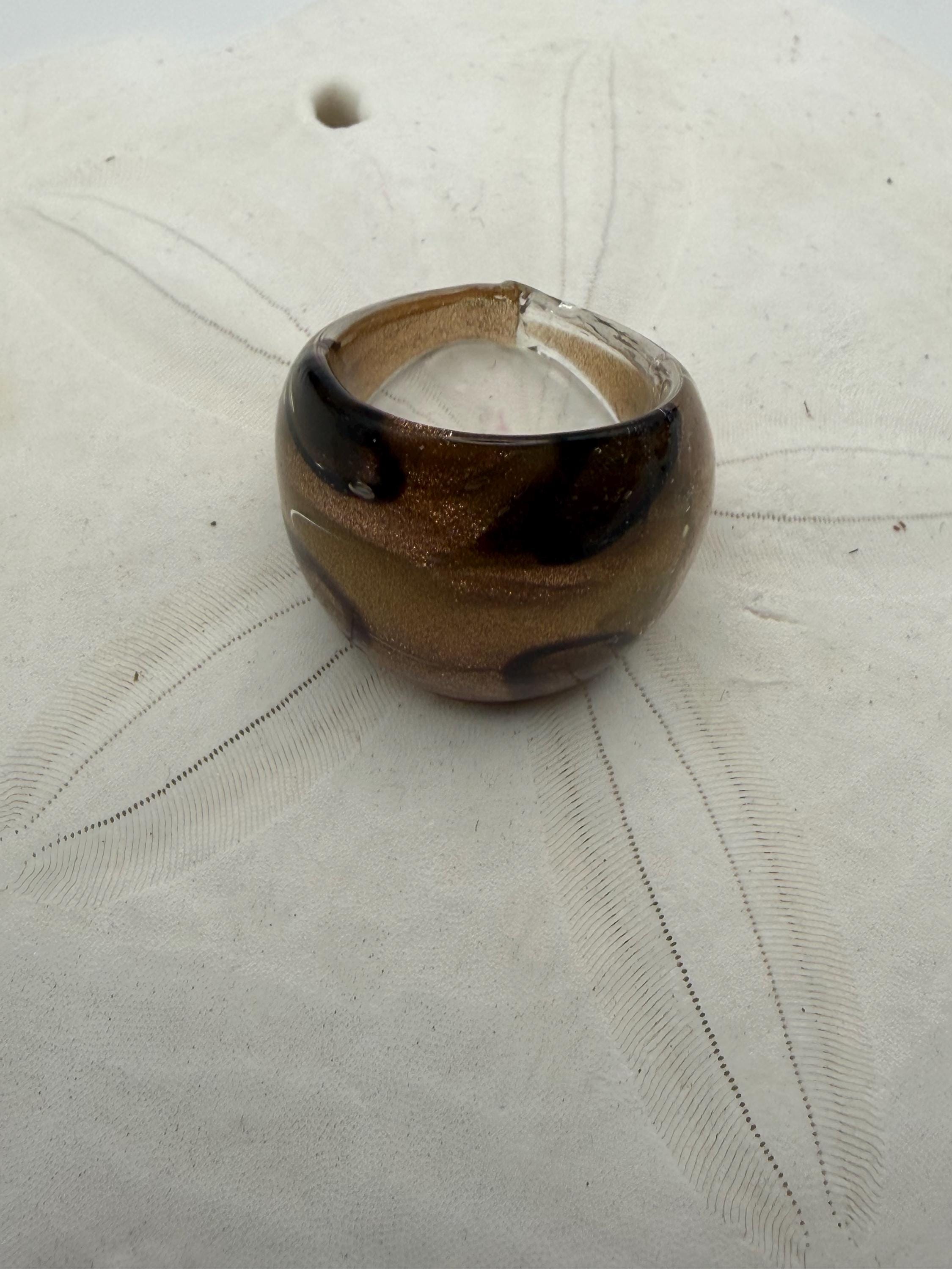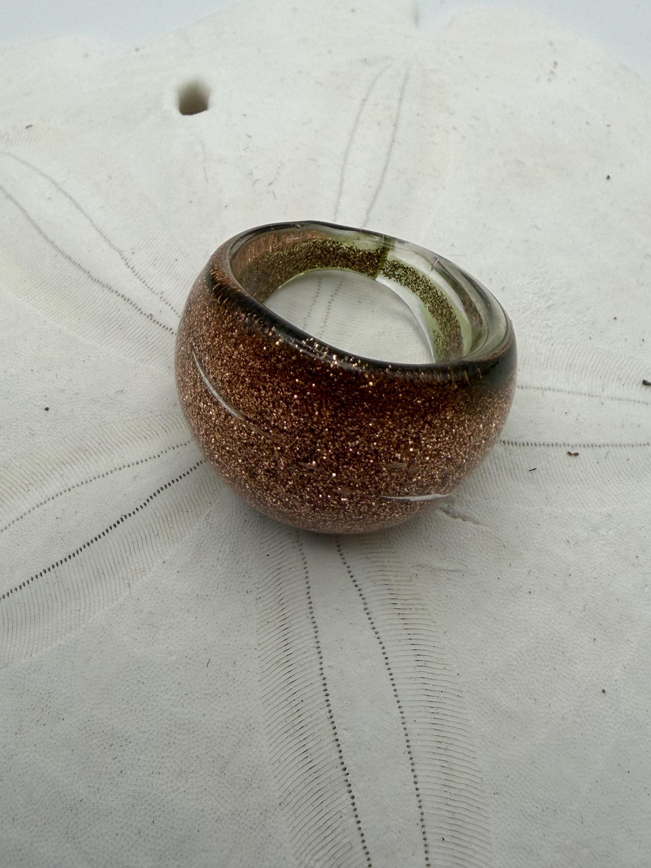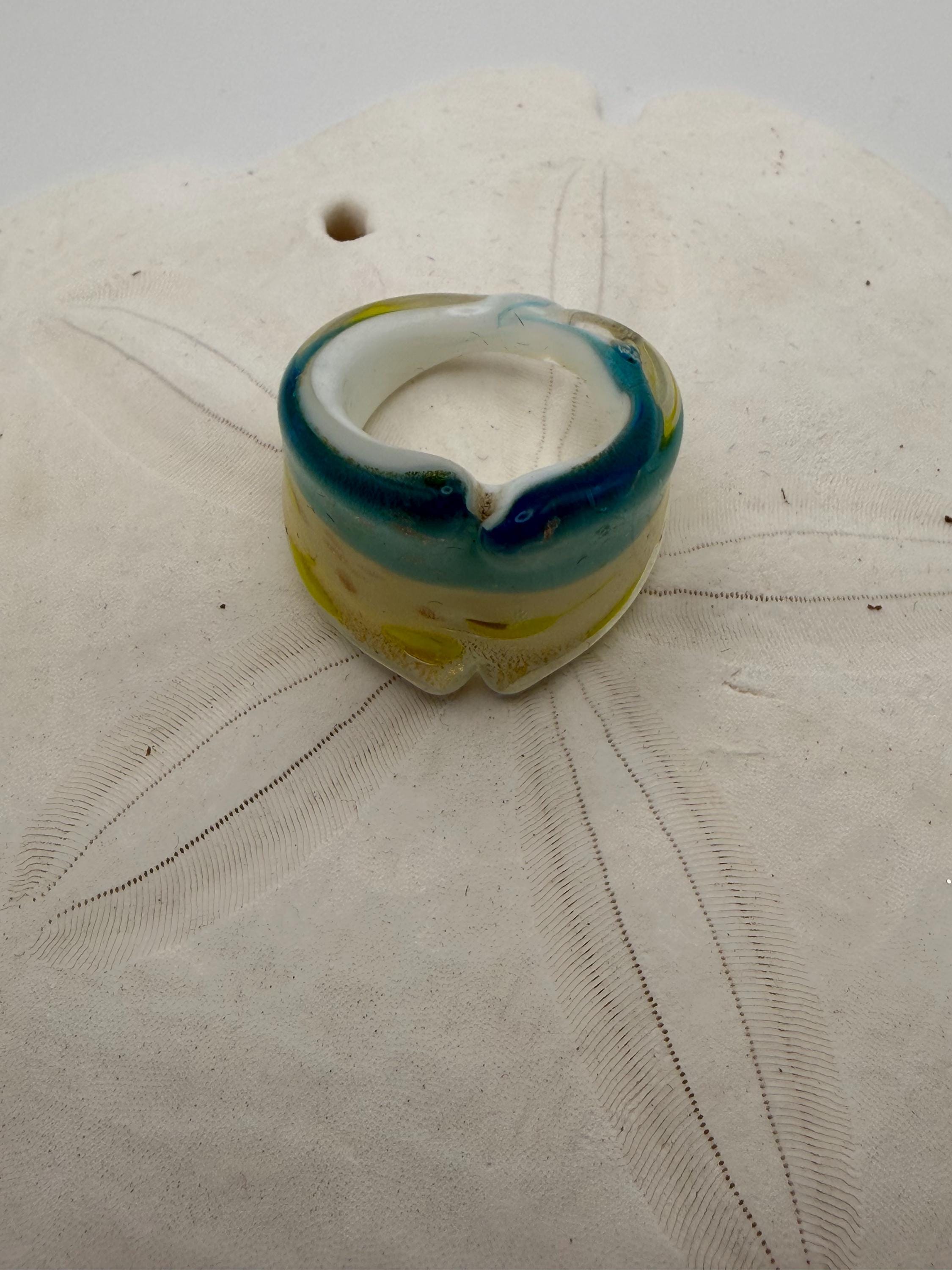 The glass ring is amazing! I absolutely love chunky rings and this ring is possibly the most beautiful and unique ring ever! I love it and I am so happy to own this perfect piece of jewelry! It was a pleasure doing business with you and I hope to do business with again in the future!