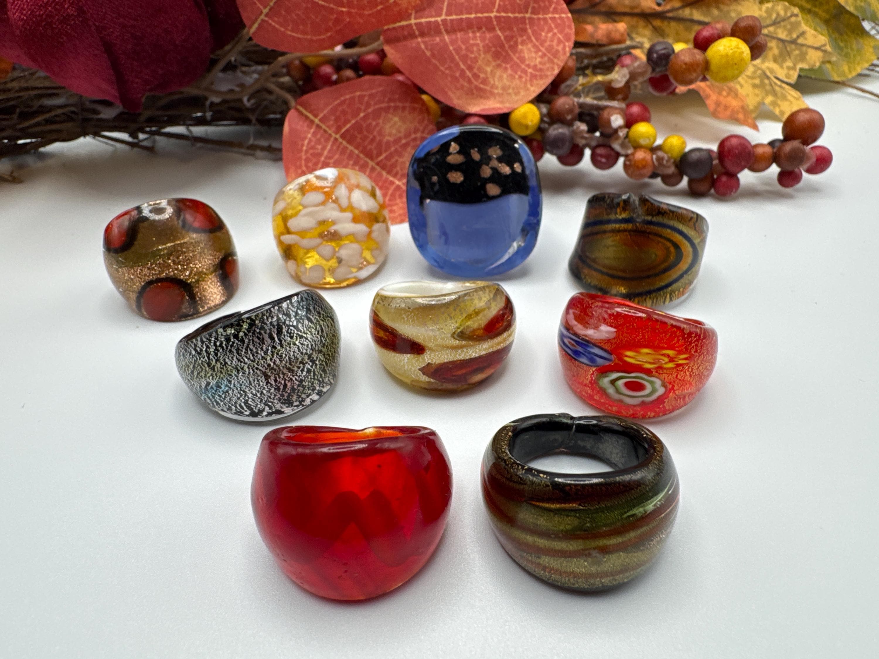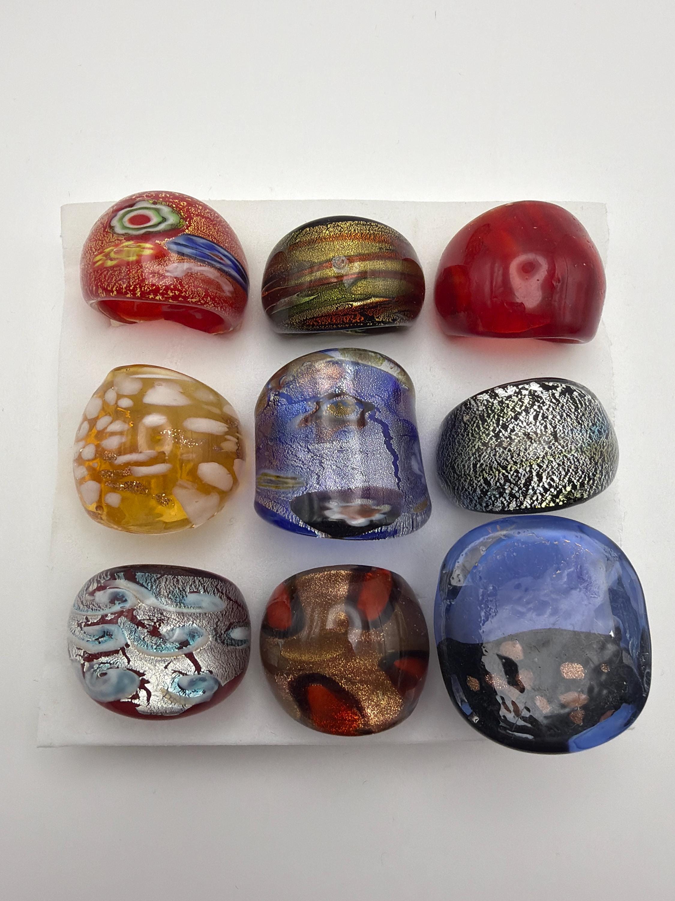 Size 7 1/2 - Assorted Glass Rings - Millefiori Glass Rings | Murano Glass Inspired Glass Rings
