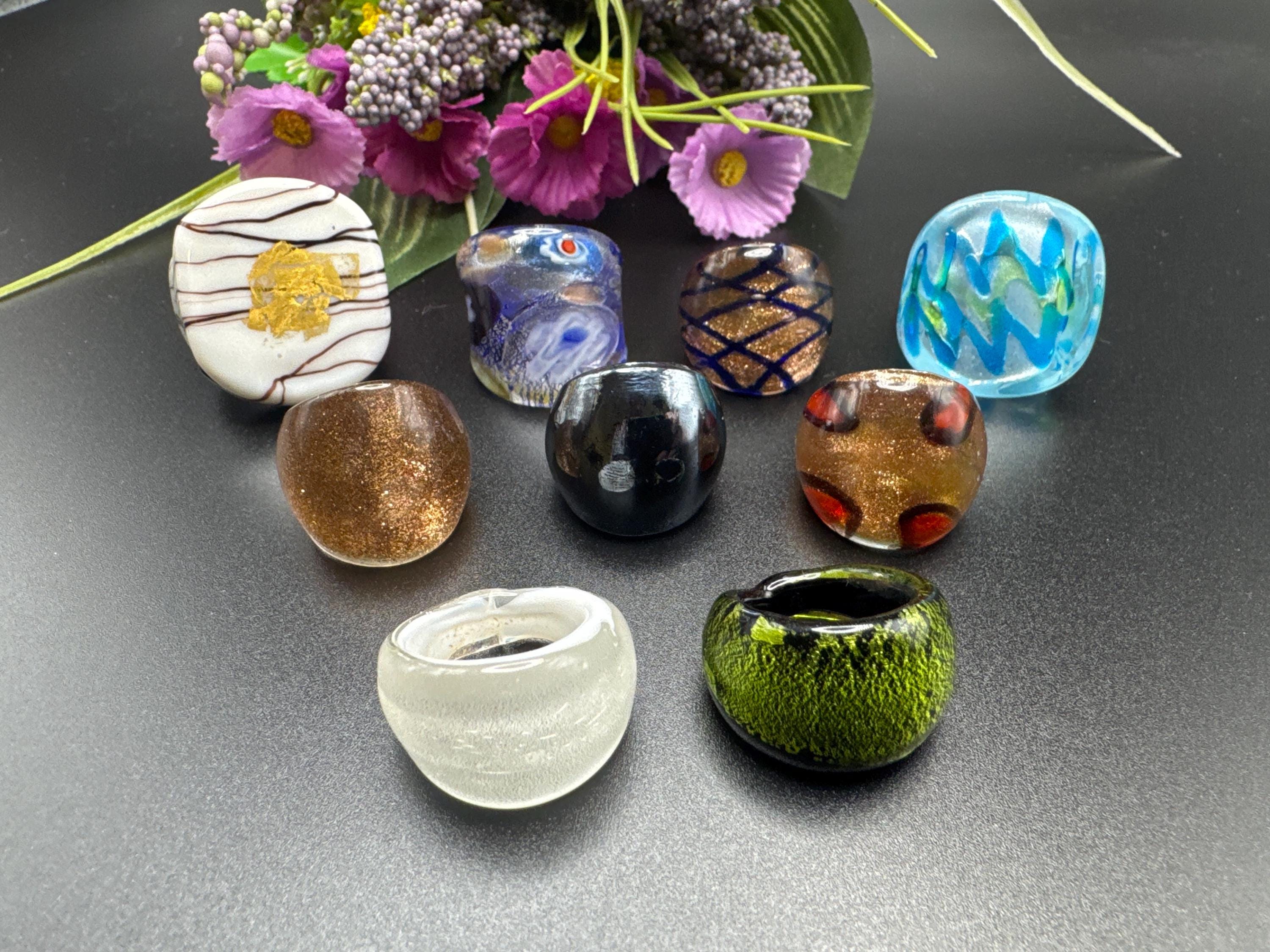 Size 8 - Assorted Glass Rings - Millefiori Glass Rings | Murano Glass Inspired Glass Rings
