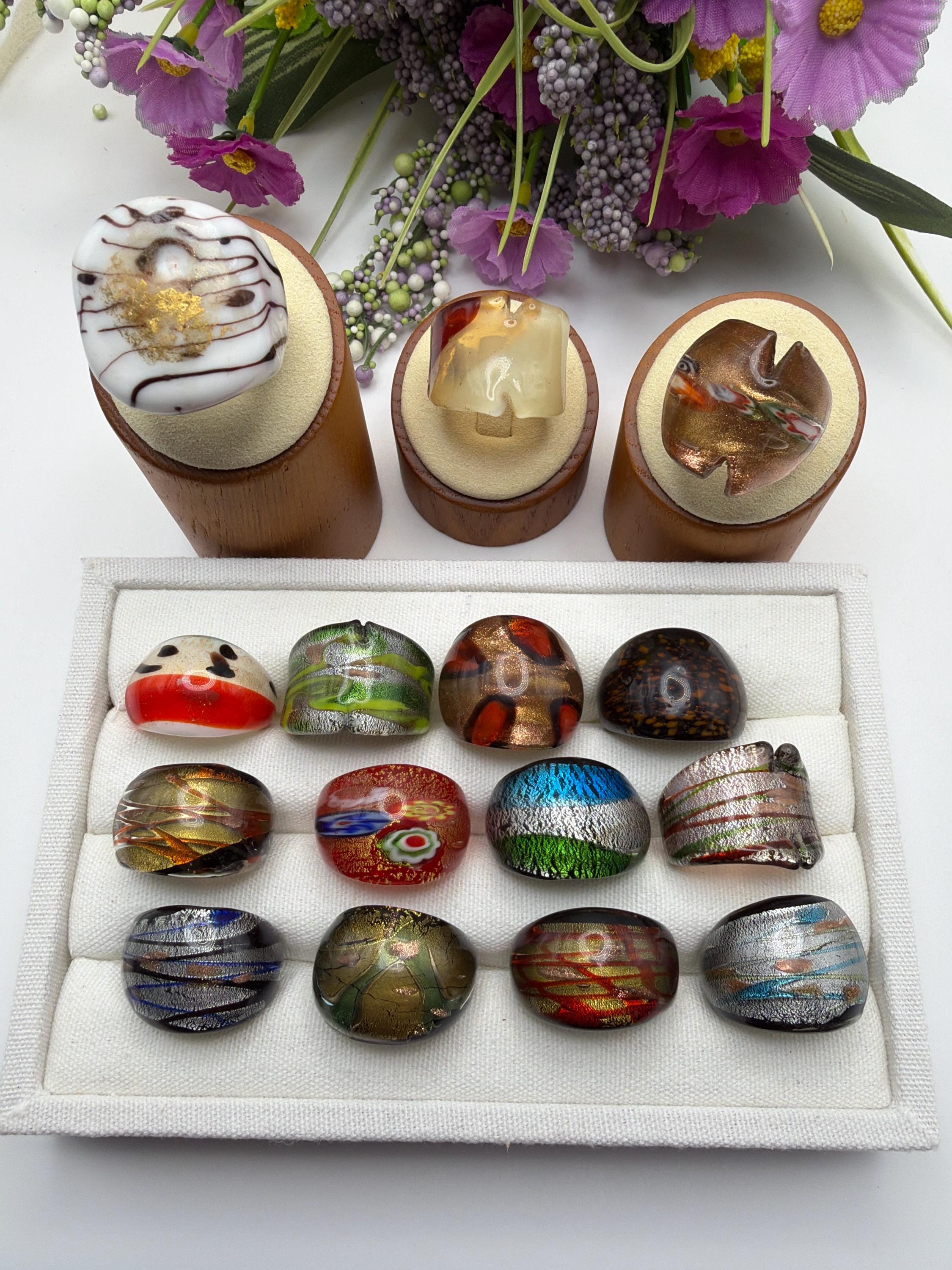 Size 7 1/2 - Lampwork Glass Rings | Assorted Glass Rings | Murano Glass Inspired Glass Rings
