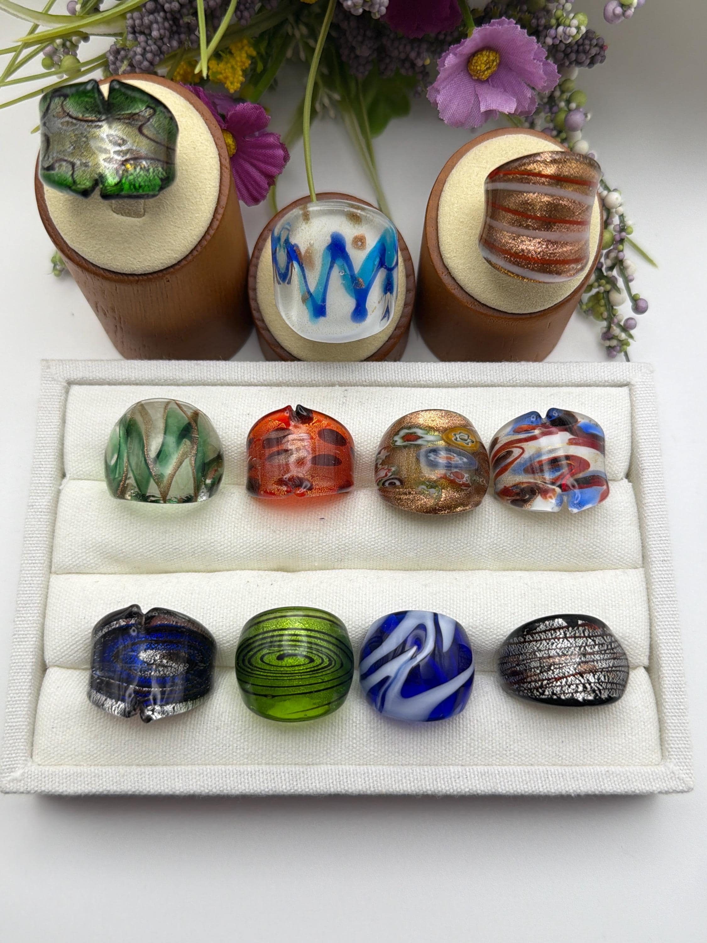 Size 8 1/2 - Lampwork Glass Rings | Assorted Glass Rings | Murano Glass Inspired Glass Rings