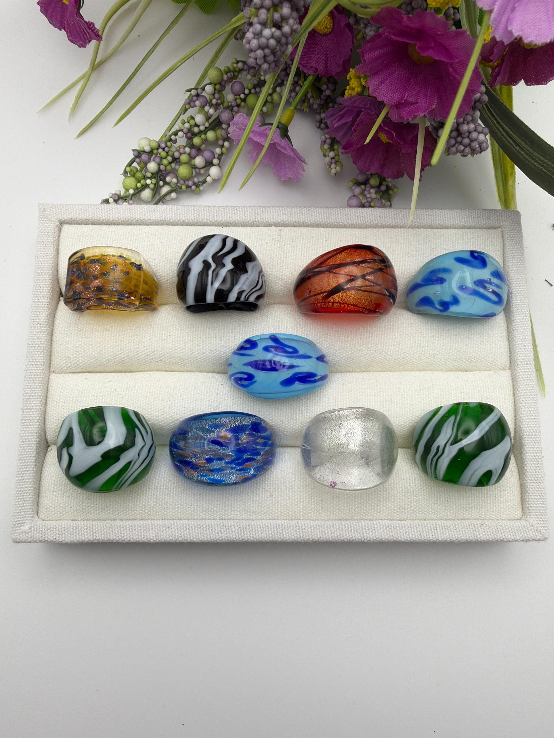 Size 9 3/4 - Lampwork Glass Rings | Murano Inspired Glass Rings | Assorted Glass Rings