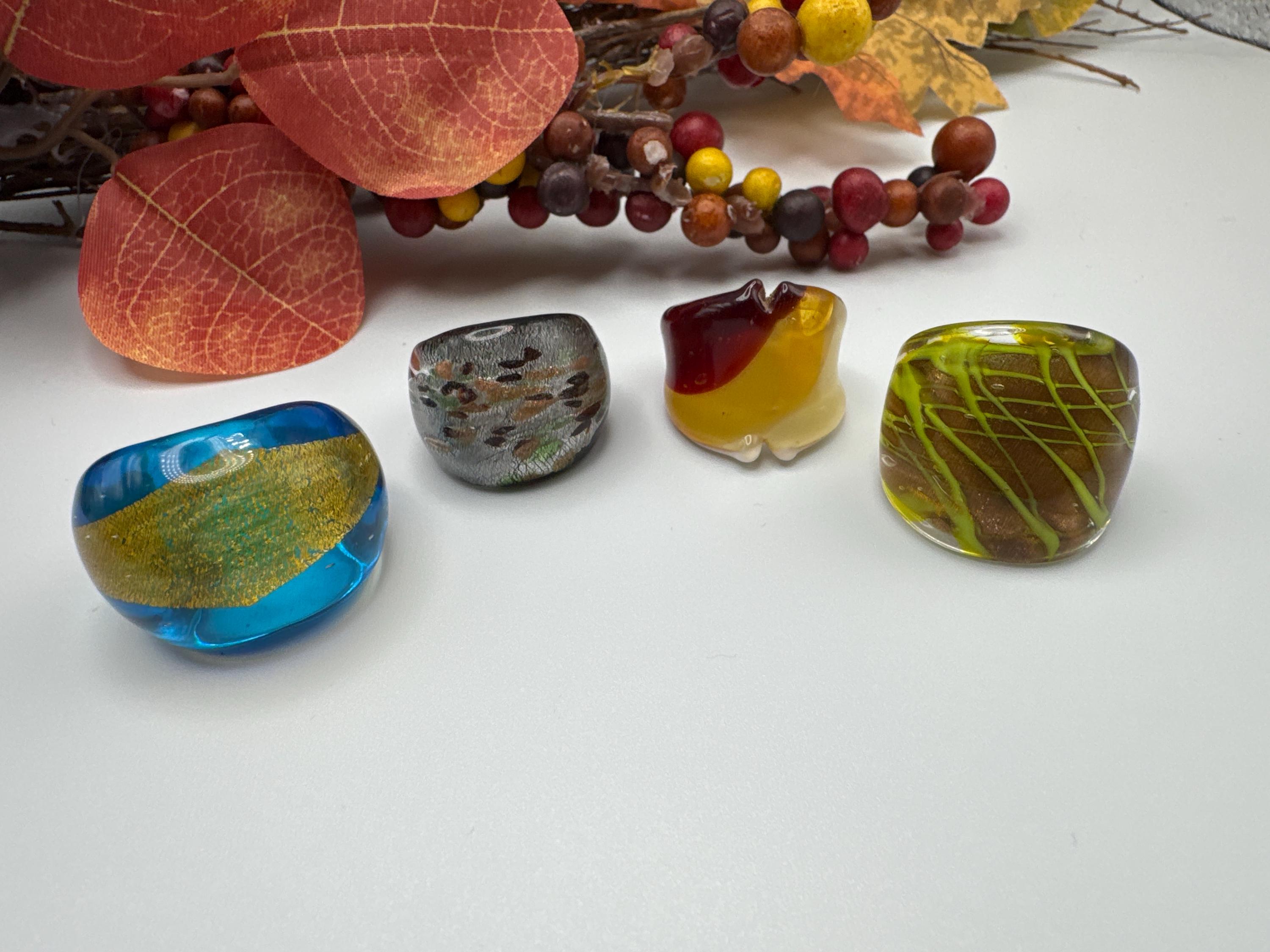 Size 8 - Assorted Glass Rings - Millefiori Glass Rings | Murano Glass Inspired Glass Rings