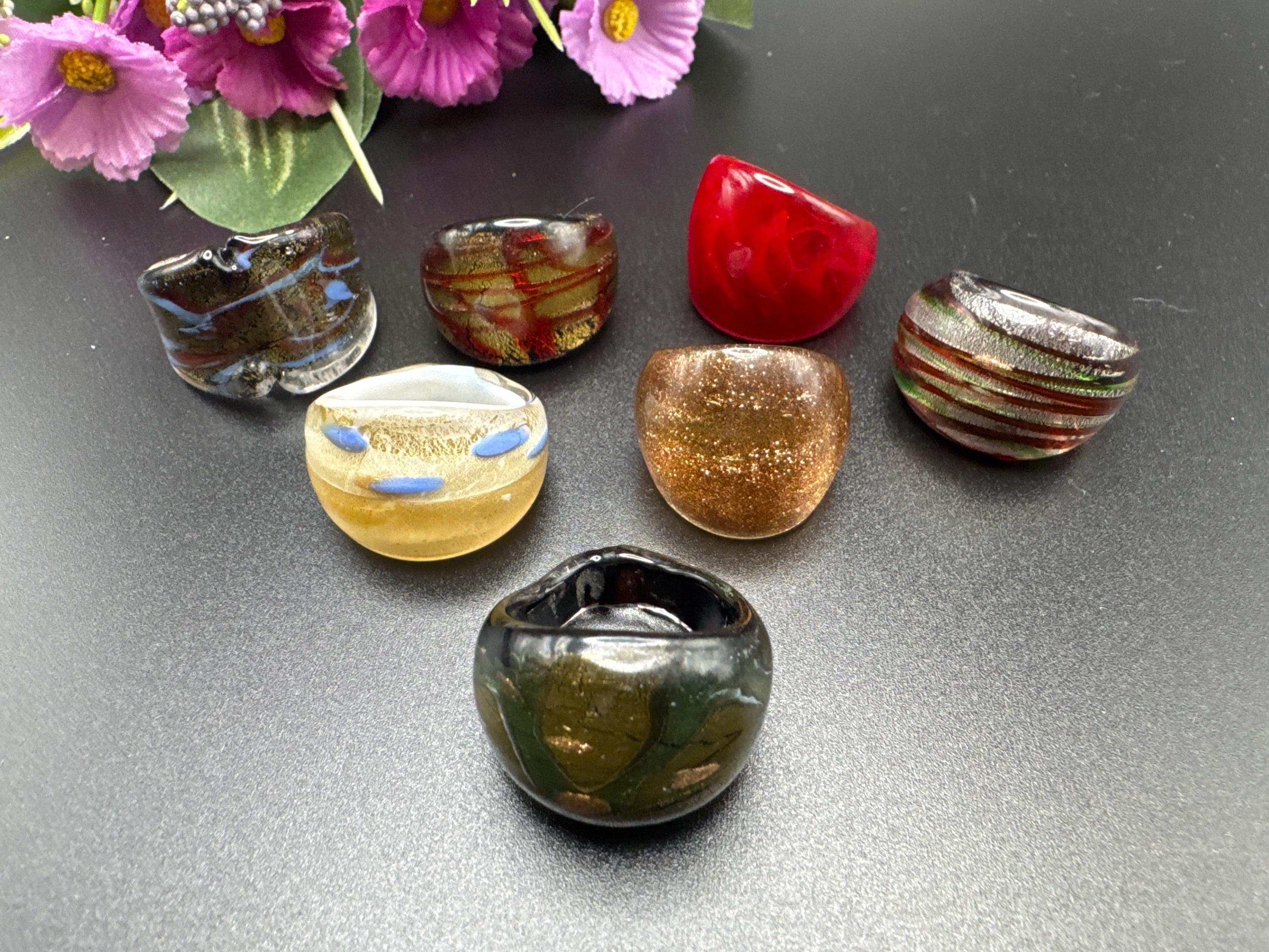 Size 8 - Assorted Glass Rings - Millefiori Glass Rings | Murano Glass Inspired Glass Rings