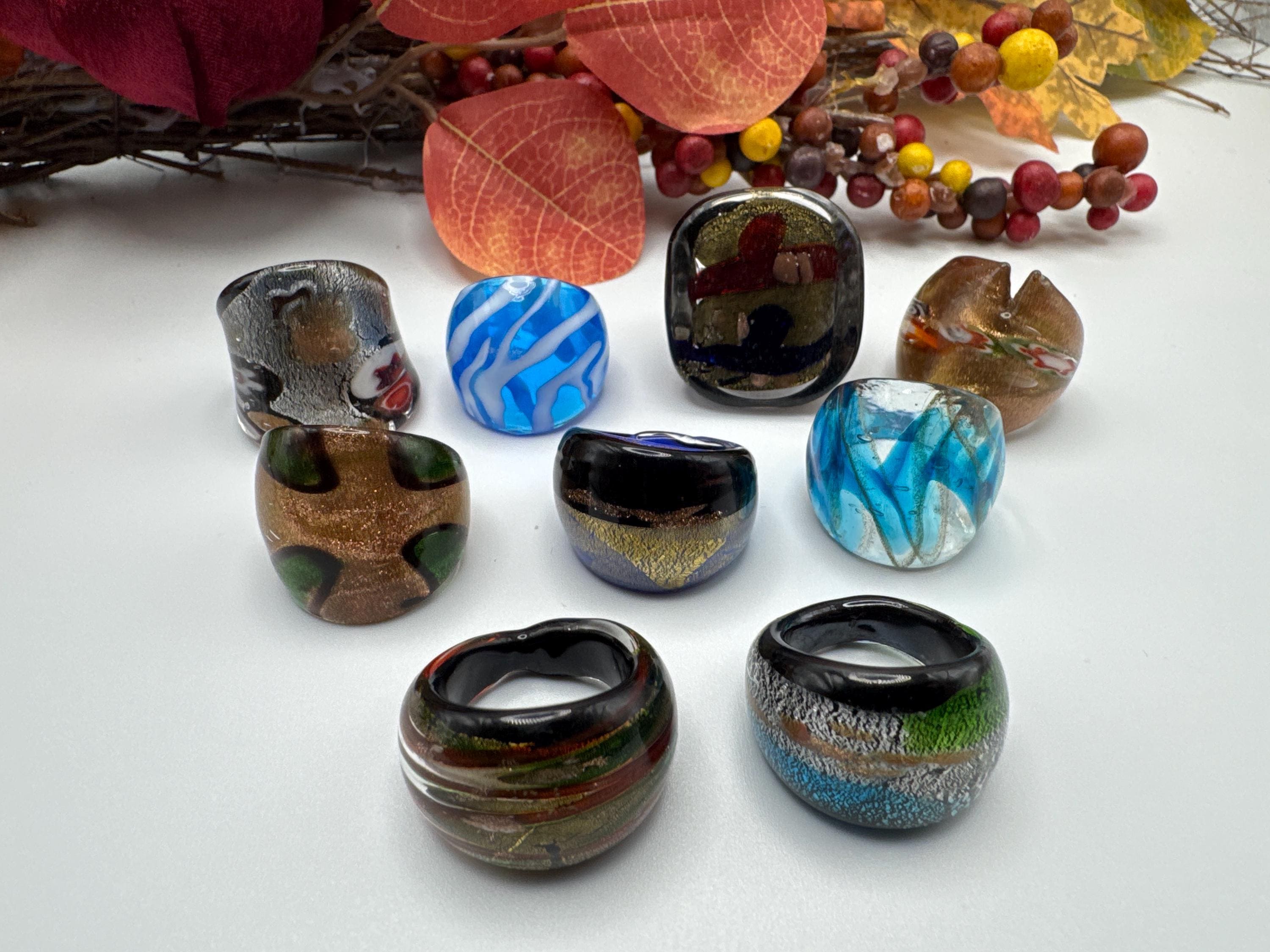 Size 7 1/2 - Assorted Glass Rings | Murano Glass Inspired Glass Rings