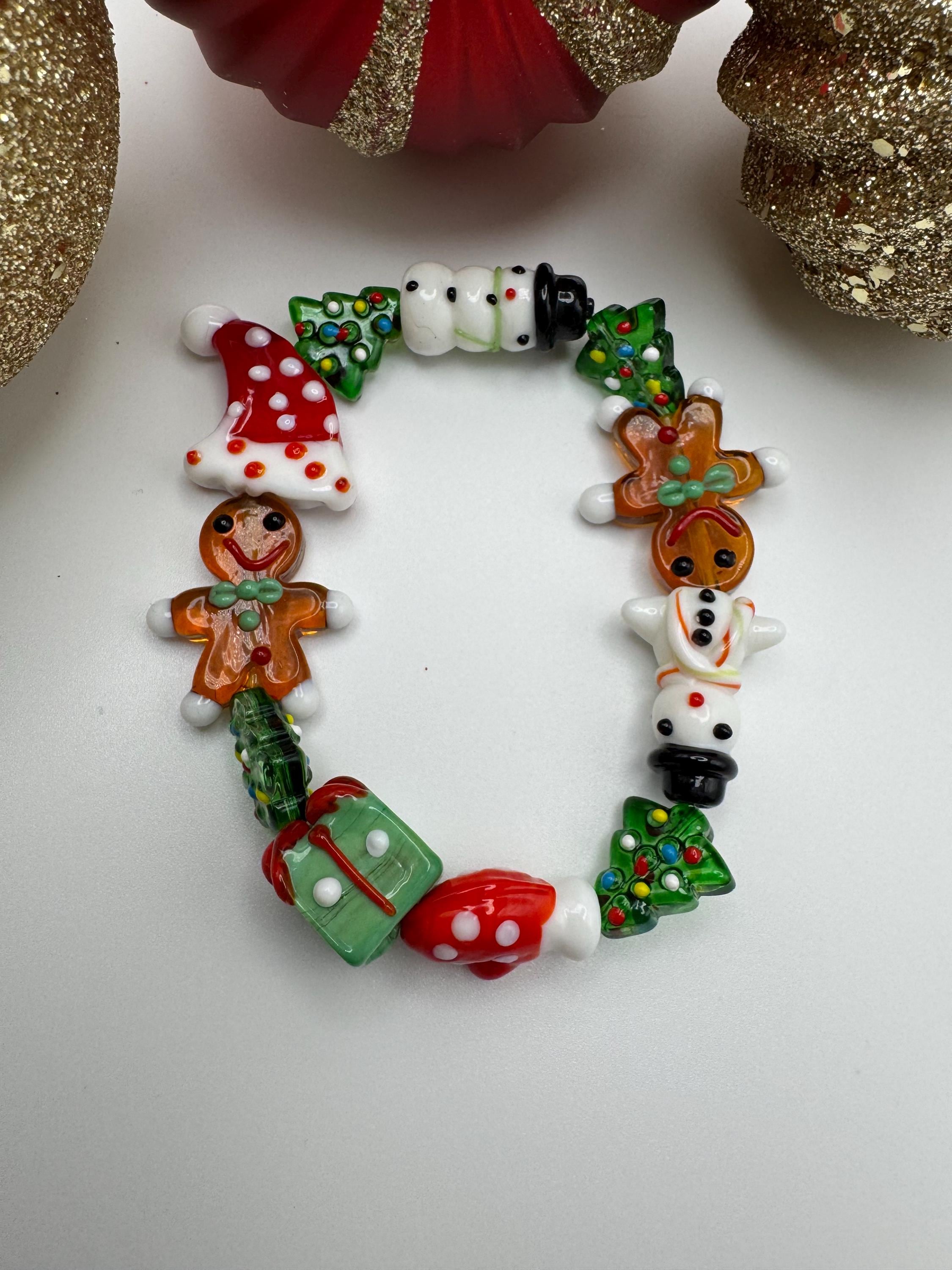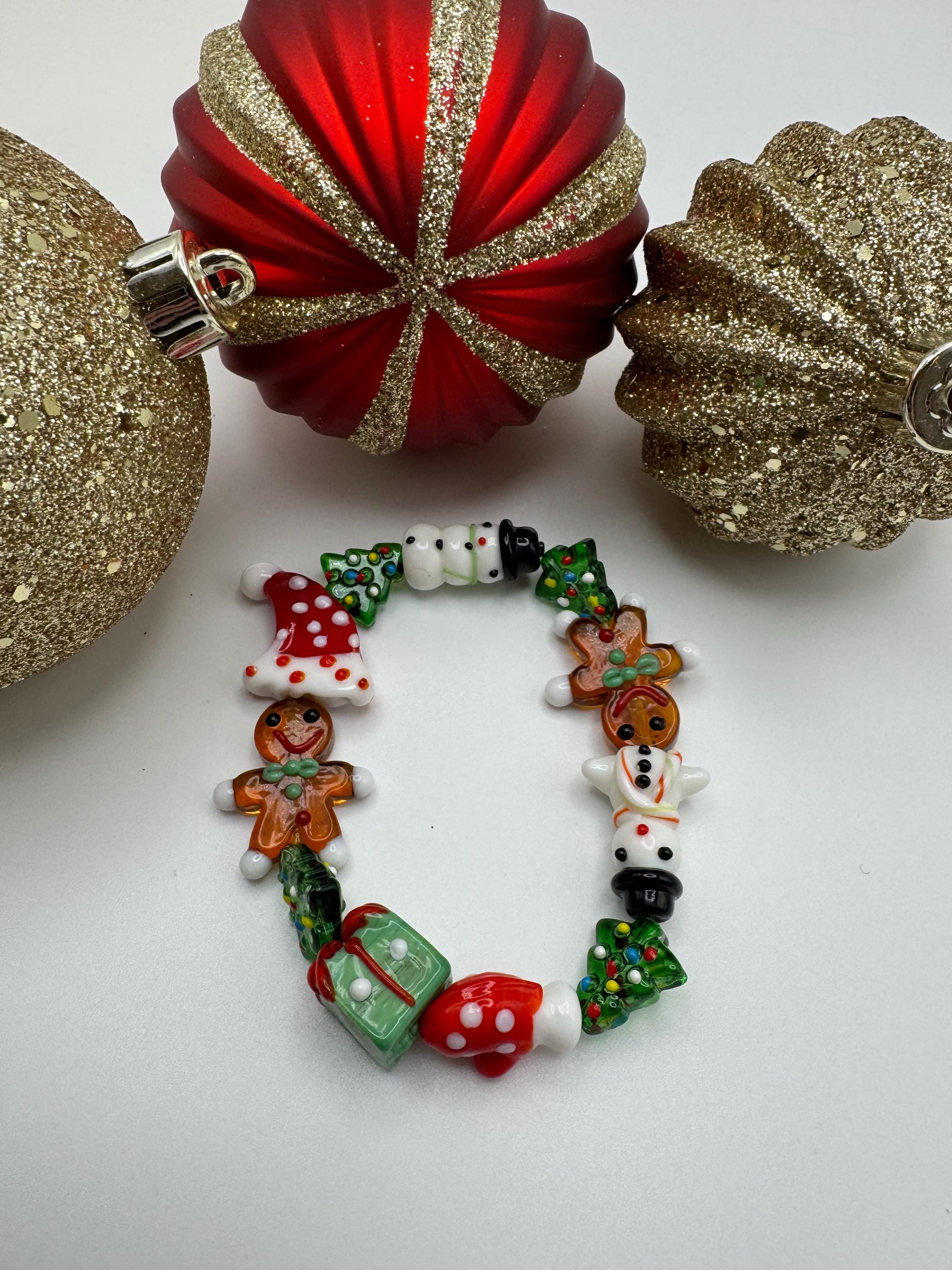 Christmas Lampwork Bead Bracelet: Holiday Jewelry