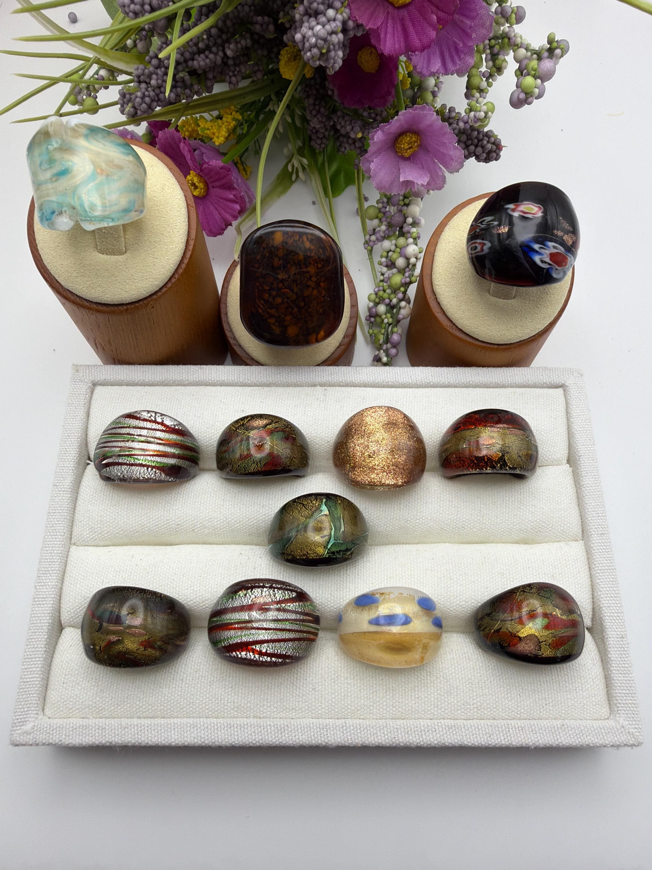 Size 7 - Lampwork Glass Rings | Assorted Glass Rings | Murano Glass Inspired Glass Rings | Millefiori Glass Rings