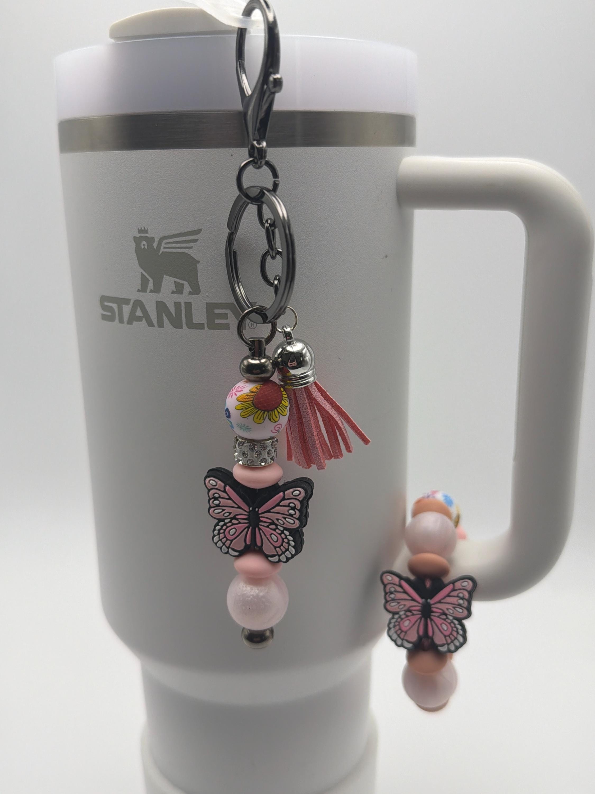 Pink Butterfly Tumbler Set | Stanley Cup Accessories | Buttterfly Cup Handle Bracelet | Pink Butterfly Straw Charm